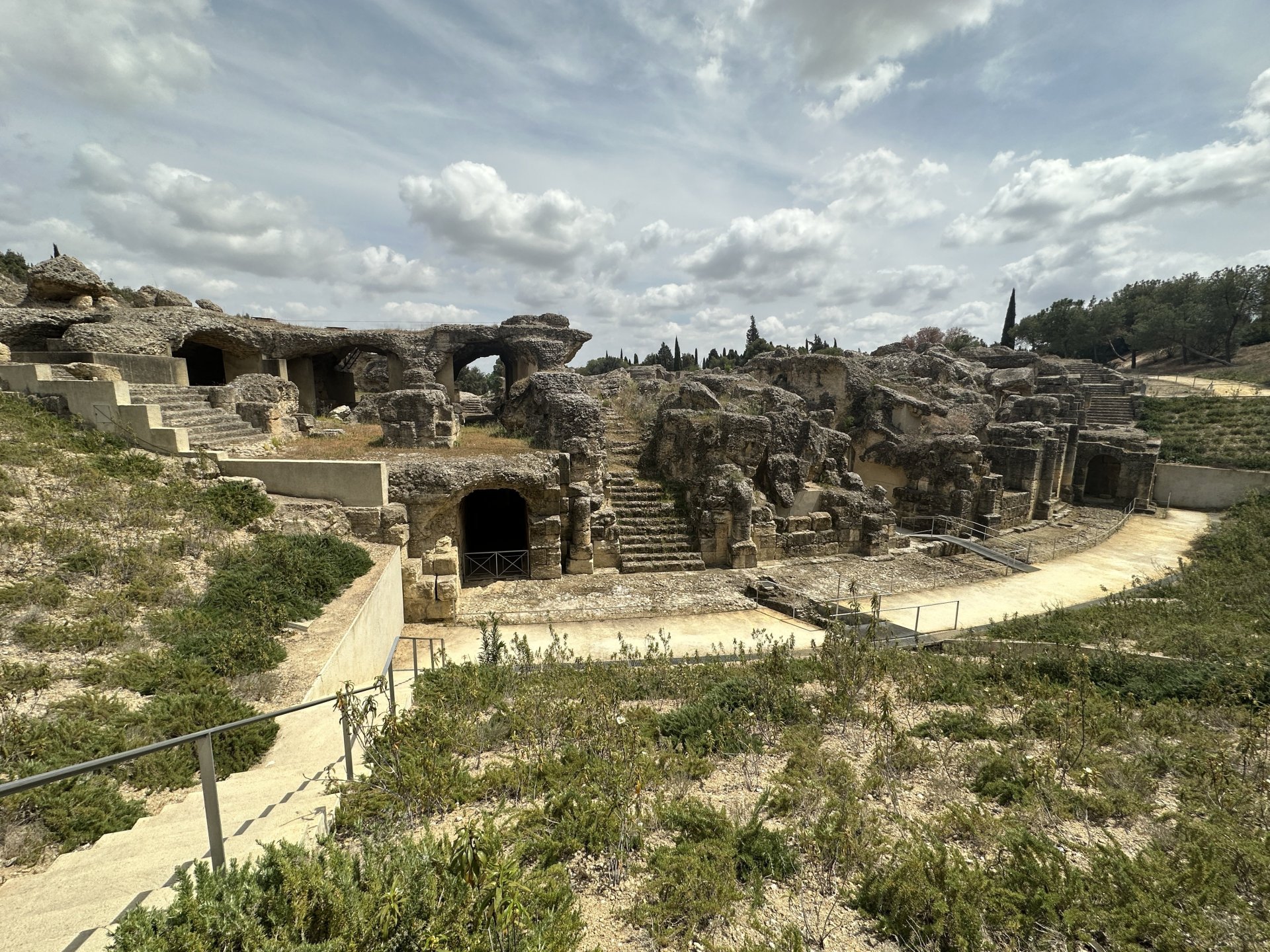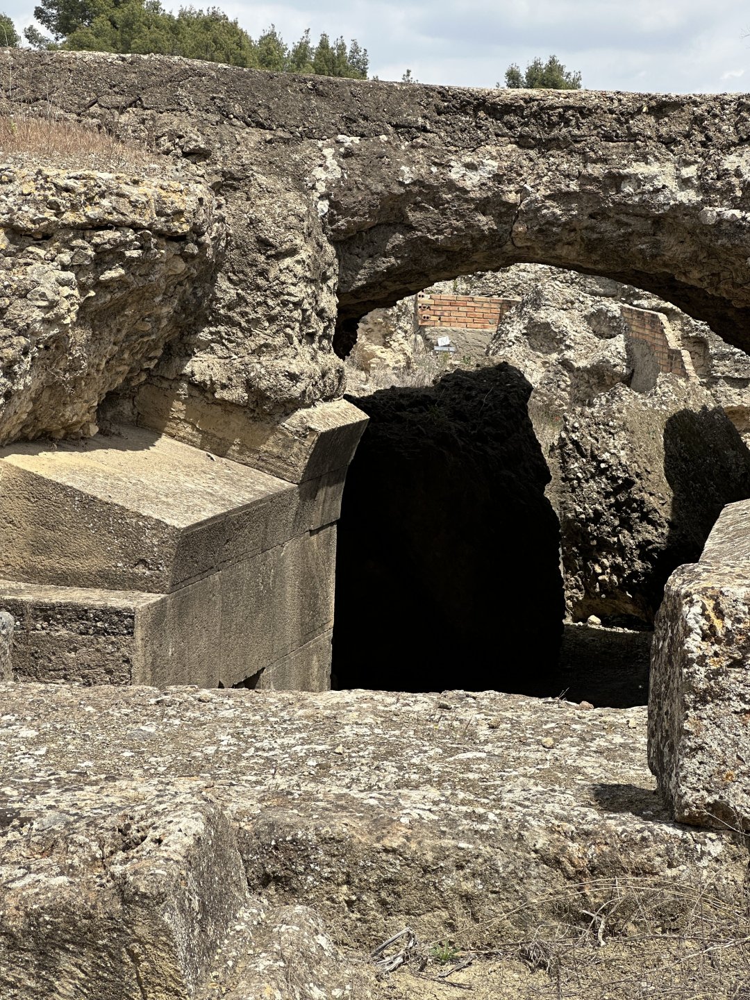 The next day I realised why I'd heard a few sirens during the night. Hotel was opposite the fire station. Then it was south again, on the motorways. We stopped for coffee and fuel, and for Titus to look for insects. Another bit of motorway to Plasencia where I had read of an aqueduct that was supposed to be worth seeing. By the time that we got there my brain was nicely cooked so after grabbing some photos and slurping water it was back onto the motorway heading for Caceres where we were to camp for the night. We arrived, with my brain cooked a bit more, at the campsite and before even going to the pitch it was beer time. Back on the bikes and up to the pitch. All a bit strange having out own toilet and shower! A guy rocked up, barney who was a few pitches down from us. He was in the queue in Millay behind us. Small world. Anyway it was time for more beer and tapas so that was it for the night. A very pleasant evening after all the motorway riding.2 points