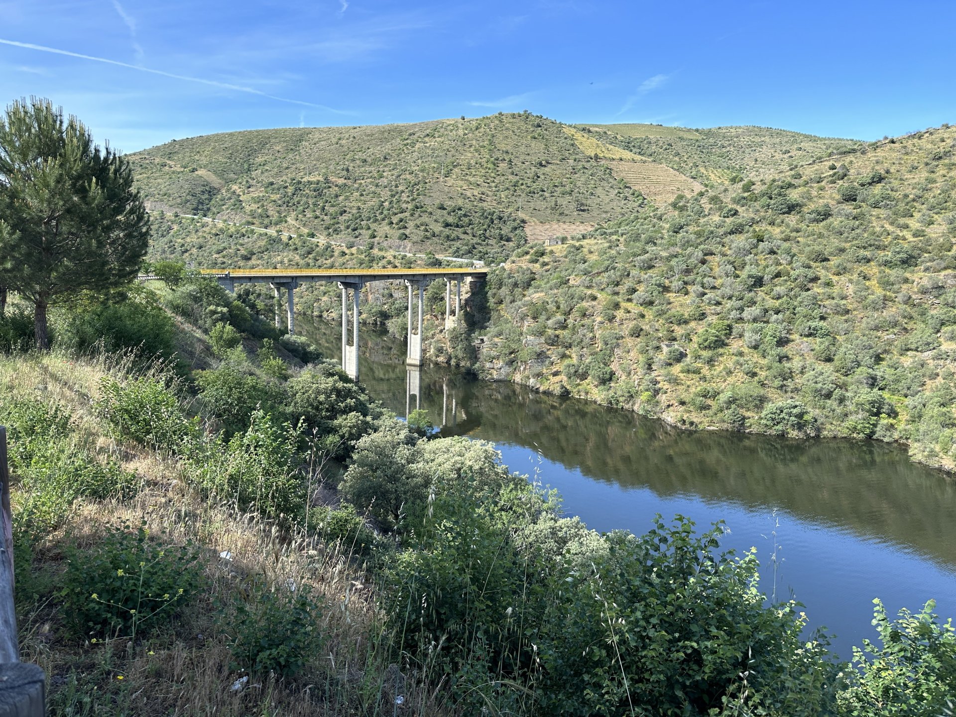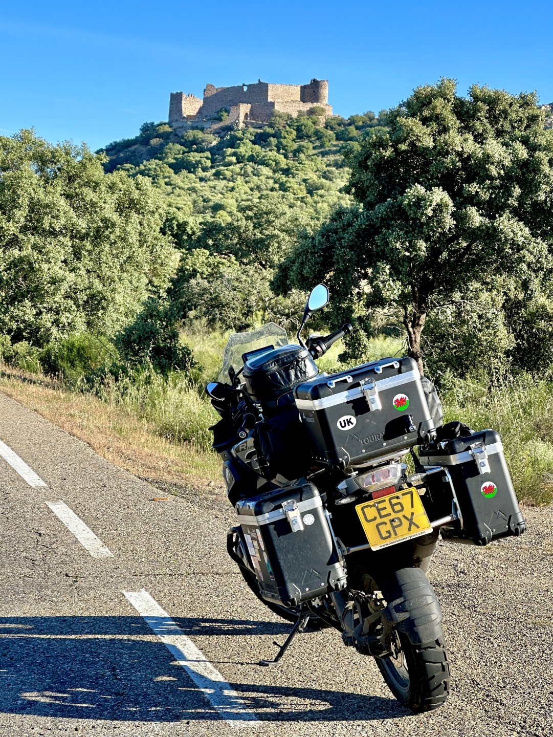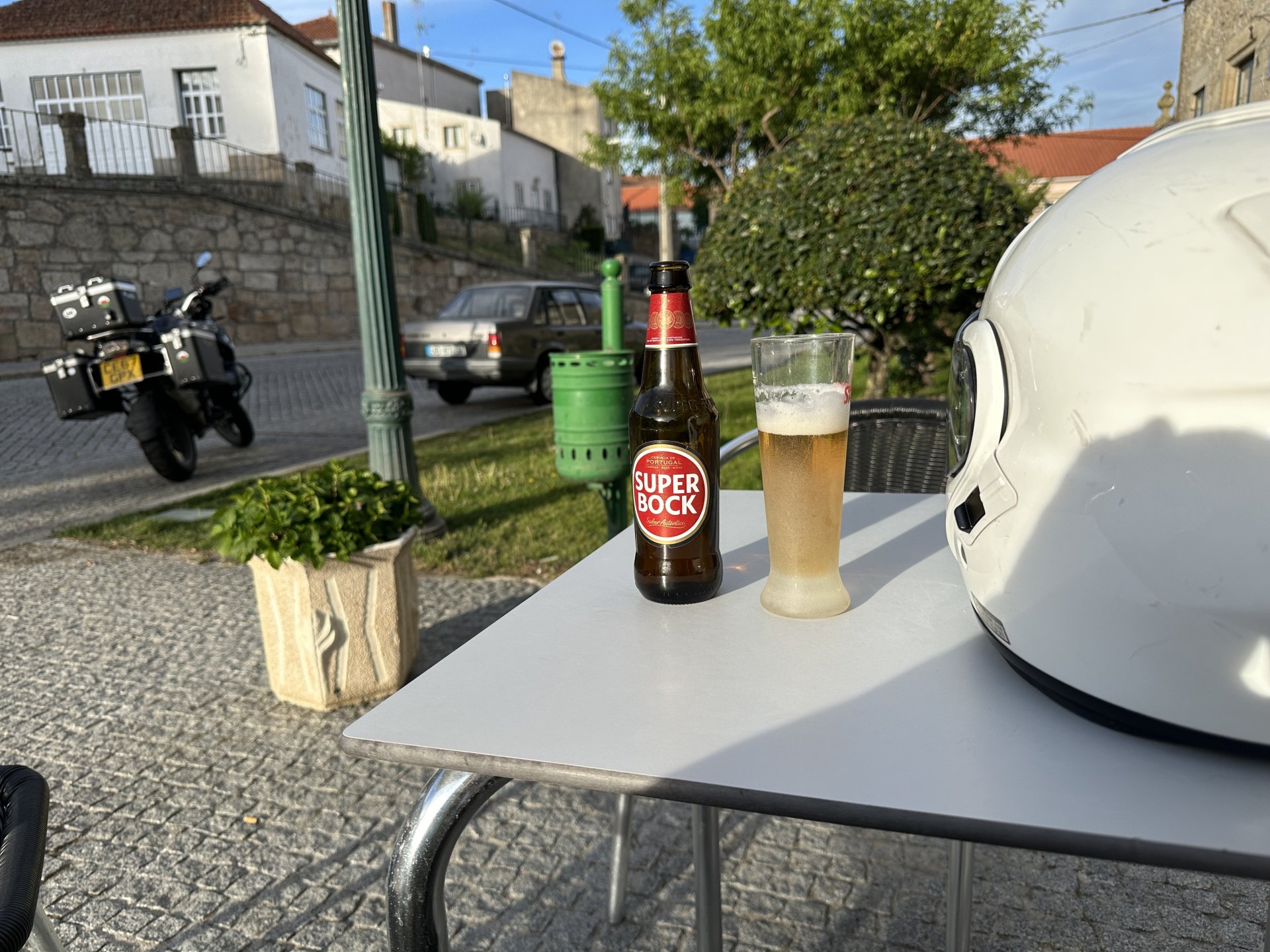 Here goes, my third try on getting this post done. I seem to be suffering finger trouble and keep losing it! This was the day to take me across the border into Portugal. I'd found a place to stay in Pinhel, Beira Alta, that wasn't too expensive and used the "Adventurous Routing" option on the Garmin to give me an interesting route. It had been pretty good so far, once I'd found out how to use it! A great route with quiet roads, small towns and villages, and amazing scenery. Water levels seemed to be well down as can been see here. The bridge remains looked pretty old but I couldn't find any information. Had to stop for a castle photo. Near here I think. Snack break. People were stopping at the graffitied water spout across the road to fill up bottles. Haven't experienced fly splatter like this for years. Stopped at this bridge for a quick break and some water as it was getting a bit warm! Just had a look and it was in Portugal. I hadn't taken my lid off and could hear some bird calling with a weird call that I didn't recognise. Lid off to find that it was in the opposite direction to what I'd though and that it was frogs! I arrived at the hotel but no-one there as I was a bit early but I found a comfy chair and chilled until some staff turned up. Handy room on the ground floor so easy enough to carry stuff from the bike. I forgot to take any photos but took a few snaps of the village. There wasn't anywhere to eat or get a beer so I had to ride into the nearest town, Pinhel I think, for something. Lovely sitting outside waiting for the restaurant to open having a beer. I managed to work round the language problem by finding the restaurant on GoogleMaps and pointing to the food I fancied on the menu pictures. Result! Struggled to eat it all. All very tasty. Was fascinated by the painting on the wall showing how road construction used to take place, with all the different stages depicted.3 points