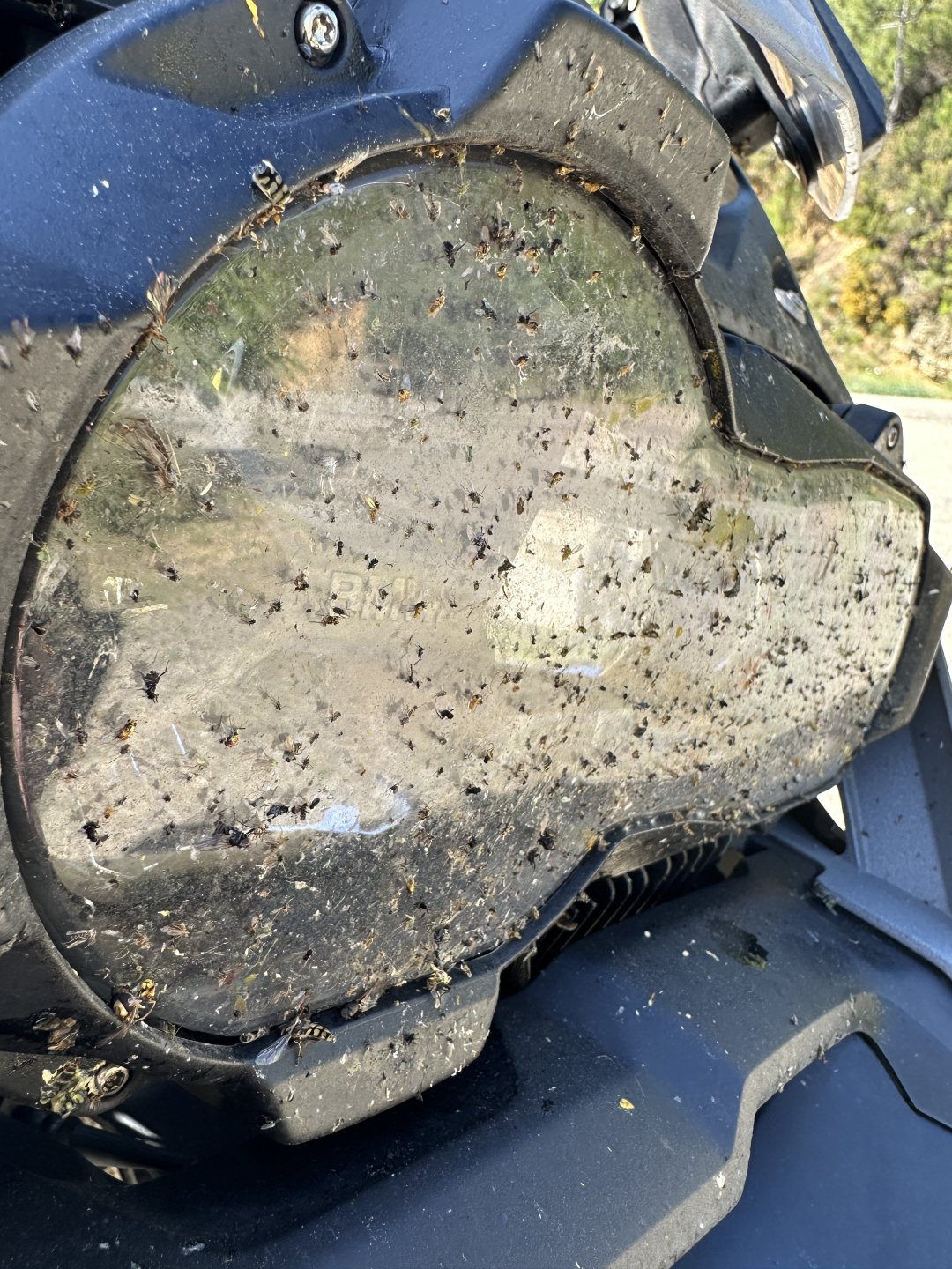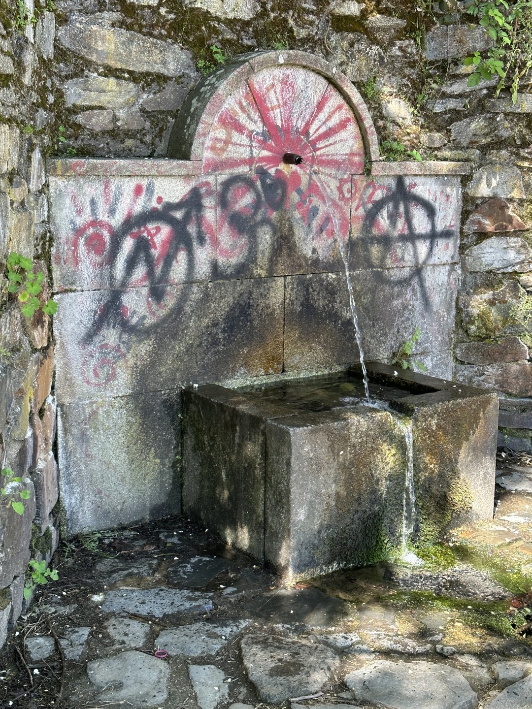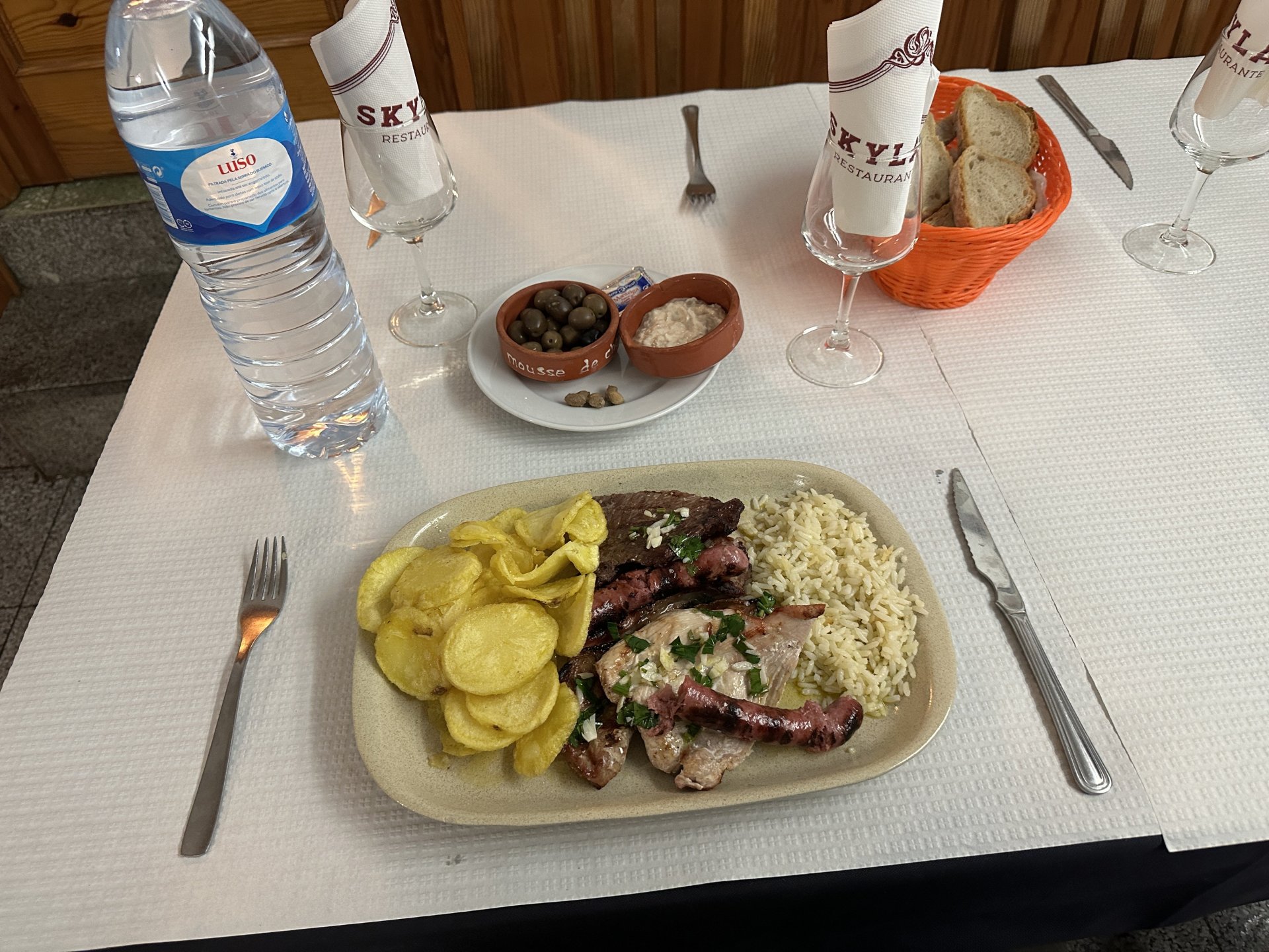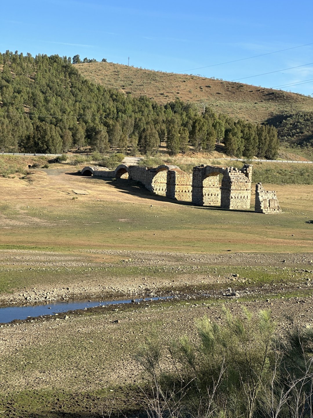Here goes, my third try on getting this post done. I seem to be suffering finger trouble and keep losing it! This was the day to take me across the border into Portugal. I'd found a place to stay in Pinhel, Beira Alta, that wasn't too expensive and used the "Adventurous Routing" option on the Garmin to give me an interesting route. It had been pretty good so far, once I'd found out how to use it! A great route with quiet roads, small towns and villages, and amazing scenery. Water levels seemed to be well down as can been see here. The bridge remains looked pretty old but I couldn't find any information. Had to stop for a castle photo. Near here I think. Snack break. People were stopping at the graffitied water spout across the road to fill up bottles. Haven't experienced fly splatter like this for years. Stopped at this bridge for a quick break and some water as it was getting a bit warm! Just had a look and it was in Portugal. I hadn't taken my lid off and could hear some bird calling with a weird call that I didn't recognise. Lid off to find that it was in the opposite direction to what I'd though and that it was frogs! I arrived at the hotel but no-one there as I was a bit early but I found a comfy chair and chilled until some staff turned up. Handy room on the ground floor so easy enough to carry stuff from the bike. I forgot to take any photos but took a few snaps of the village. There wasn't anywhere to eat or get a beer so I had to ride into the nearest town, Pinhel I think, for something. Lovely sitting outside waiting for the restaurant to open having a beer. I managed to work round the language problem by finding the restaurant on GoogleMaps and pointing to the food I fancied on the menu pictures. Result! Struggled to eat it all. All very tasty. Was fascinated by the painting on the wall showing how road construction used to take place, with all the different stages depicted.3 points