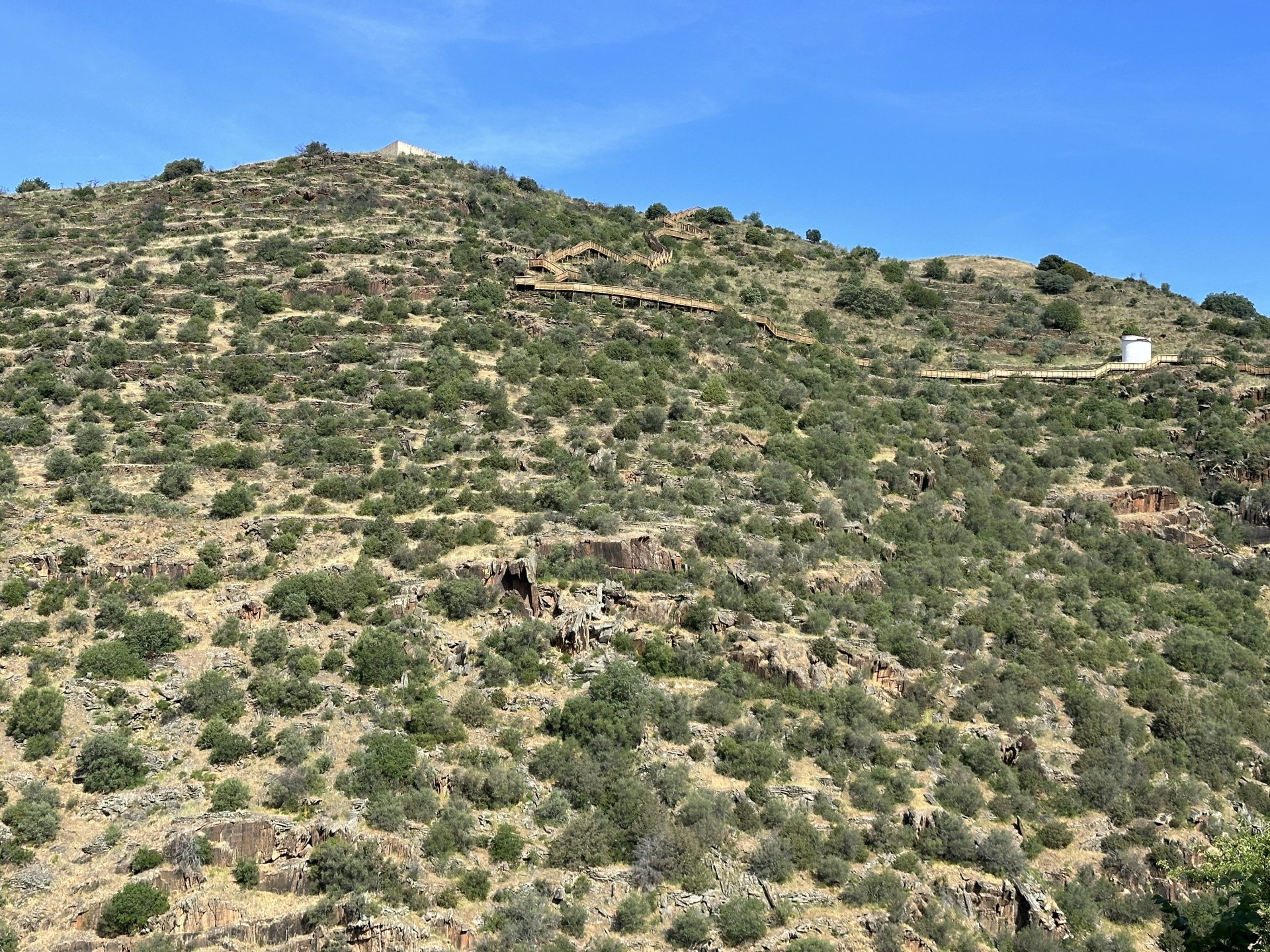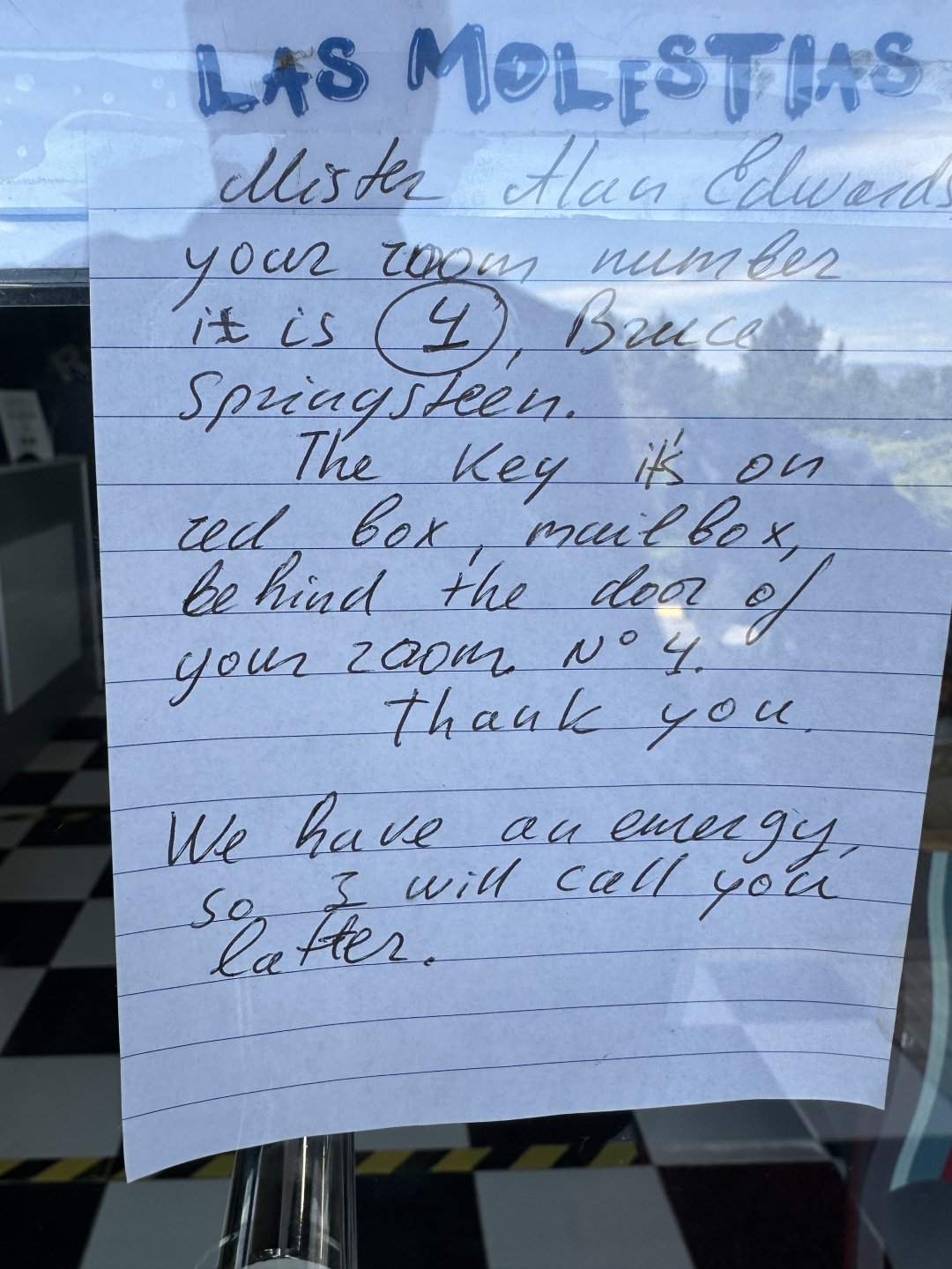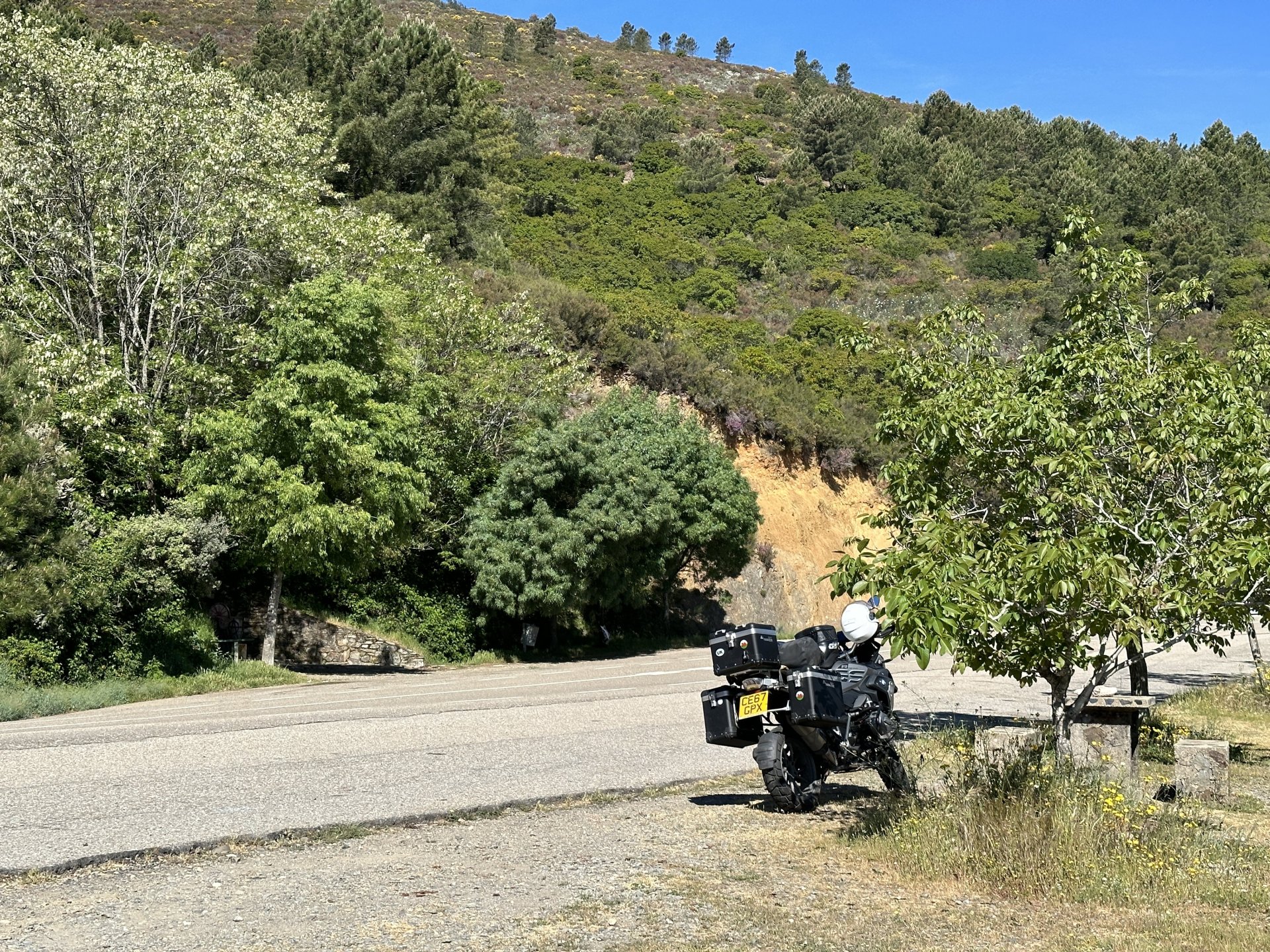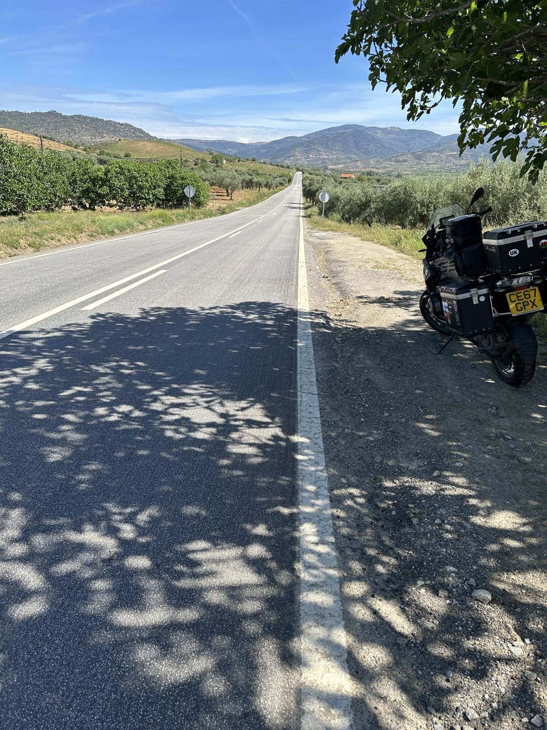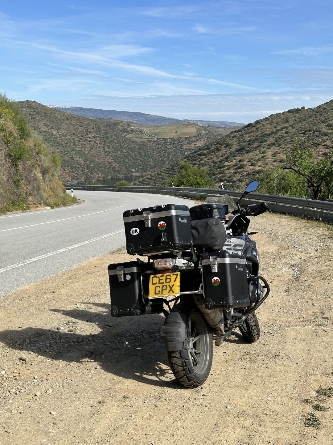I think it was round about this day or the next that Pedro contacted me and very kindly offered accommodation and a meal, but I was going in the wrong direction but it would have been good to meet up. He suggested some roads and it transpired that I was just off the one and would be going on another as the "Adventurous Routing" seemed to suggest the same route. Result. The roads in this part of the world are amazing. Surfaces generally excellent, low traffic density and splendid scenery. I will definitely be returning. Just had to stop and take in the scenery. Once again beginning to overheat, it must have been 25degC + as this seemed to be my comfort point. Water and shade. I think that the town was Mirandella. I missed most of it. It was getting hotter so I stopped for a break next to this place. Church? I'd just passed the local baker's van so took a walk back to get some bread, but it drove past. Too late to the party. Anyway could hear hooting so assumed it had stopped up the road and it had. I got some lovely fresh bread to go with my water. Really pushing the boat out! Some of the stonework here looked really old. Clouding over. Mackerel sky. A change of weather coming. Having crossed the border to Spain it wasn't getting any cooler. Another water and bread stop. The river here was typical of most that I'd seen, heavily overgrown due to drought conditions. Arrived at the hotel to be greeted with this note. I have a video that I took of the room but I'll have to figure out how to load it! Chance of showers for the next day and a bit cooler.3 points