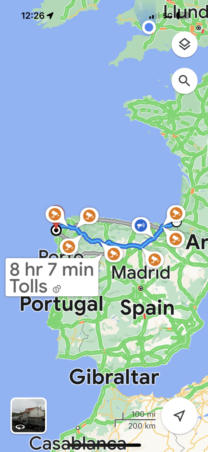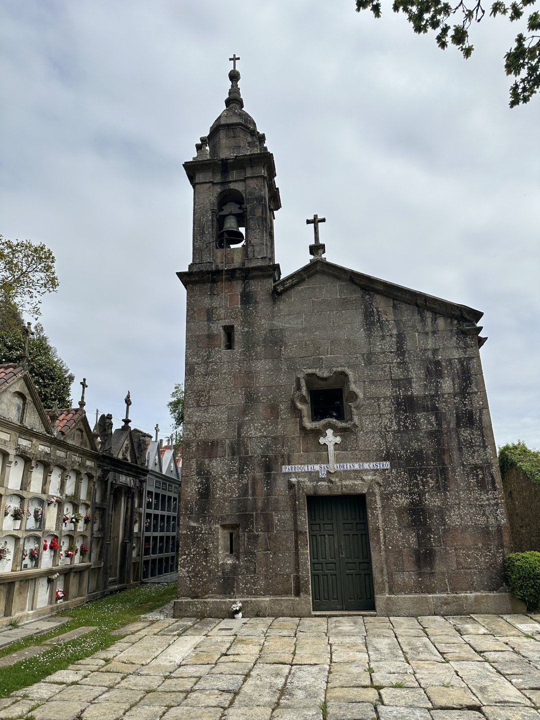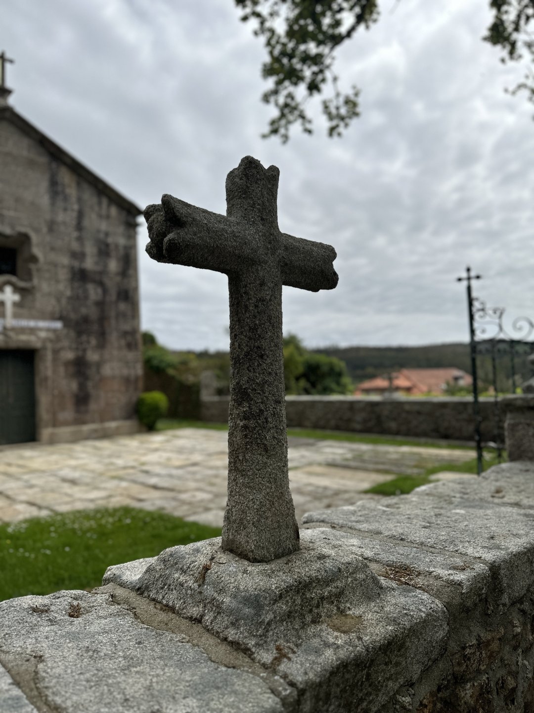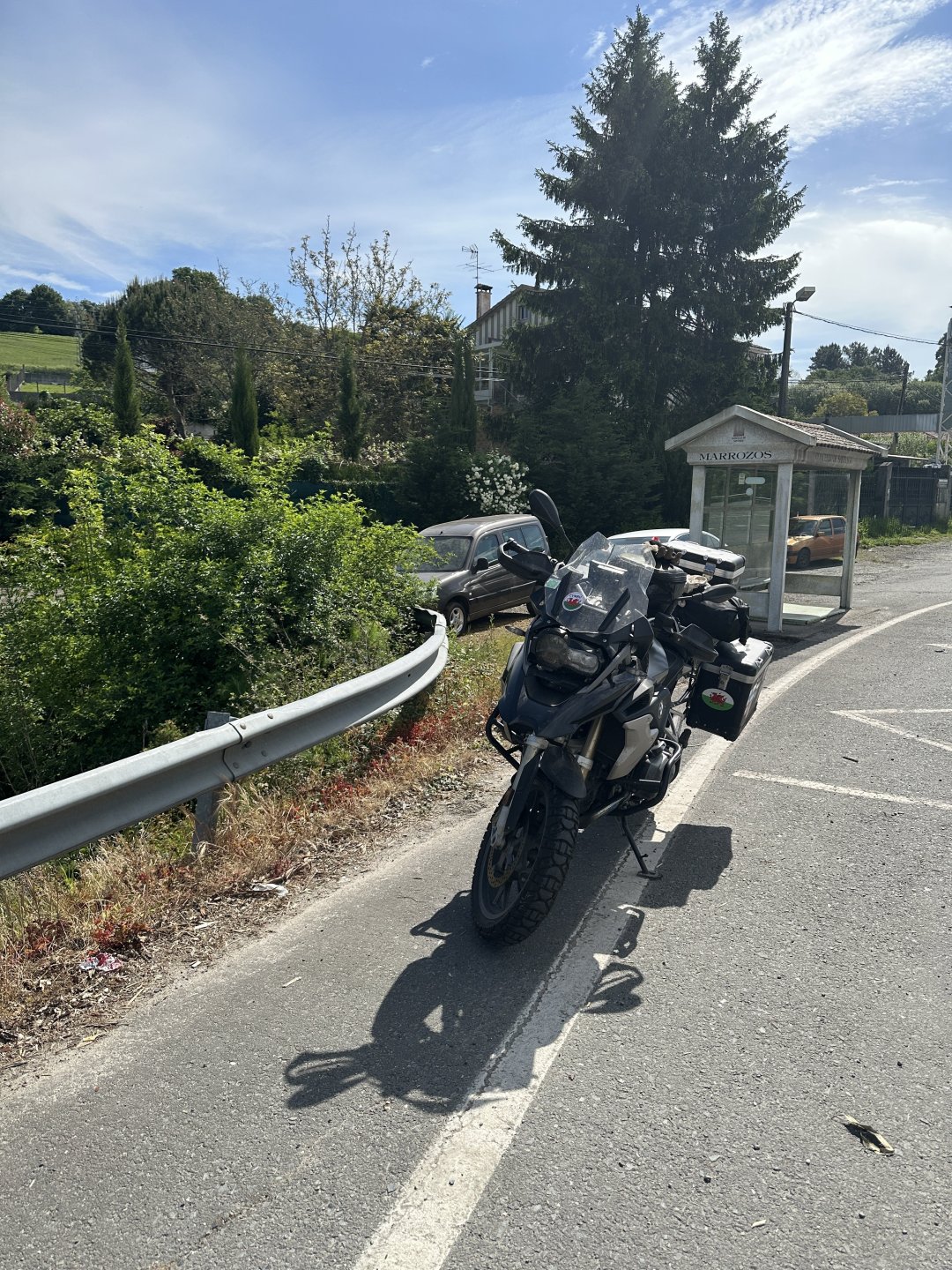 The ride to the next place somewhere between Santiago de Compostela and Fisterra wasn't as pleasant as the roads I'd ridden in the last few days. Traffic was pretty heavy and the scenery was more urban in nature. I only stopped briefly for coffee and doughnut and to check my phone. The room I'd found was only €40 for two nights! Cheapest stop of the whole trip. Downstairs there was a small supermarket with a bar- restaurant attached, and all run by the same family. The following day I'd planned to ride over to Fisterra to see the sea but it rained! I had a wander around the village or hamlet more like, and pent the rest of the time enjoying being cool, reading and dozing. My mate who has a house in Brittany contacted me and asked if I was popping over. This set me to thinking. I had no plan so rather than wander Europe aimlessly I decided to head up to his place. Stop for setting the Garmin Some photos of the village The bar Must have rained recently Trees breaking up the rocks Someone must have a wood burner There were several of these traditional grain stores about, some in use, and others seemed to be more of an ornamental thing. Horreo Local church and graveyard I've no idea what this is, but it looked interesting. Some sort of dead plant maybe. A modern take on the idea4 points