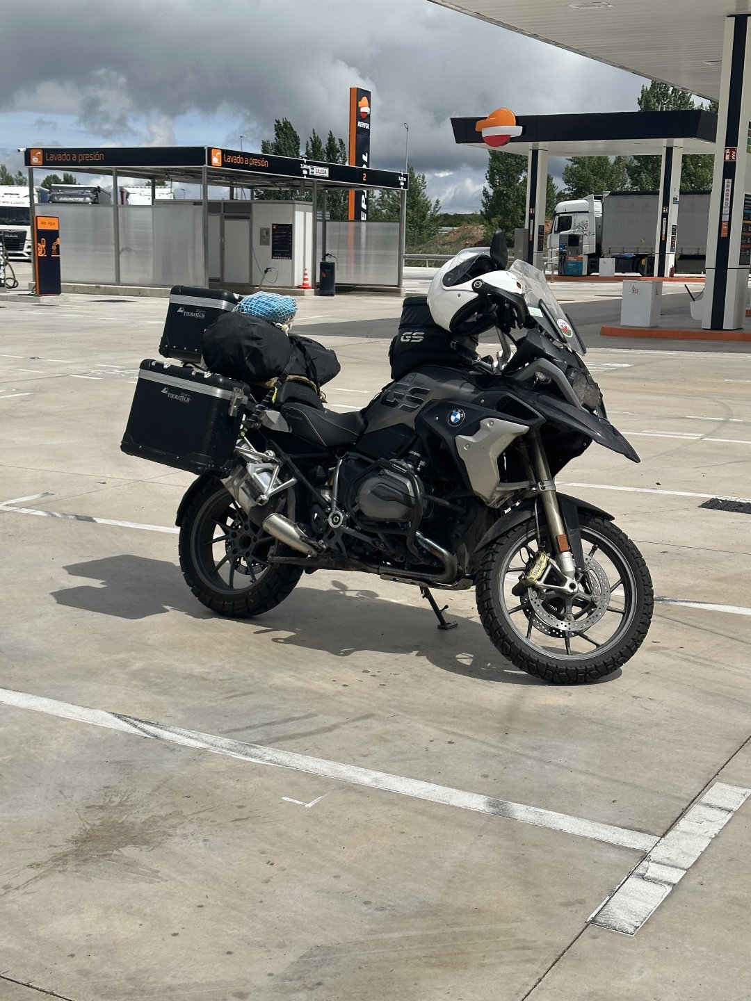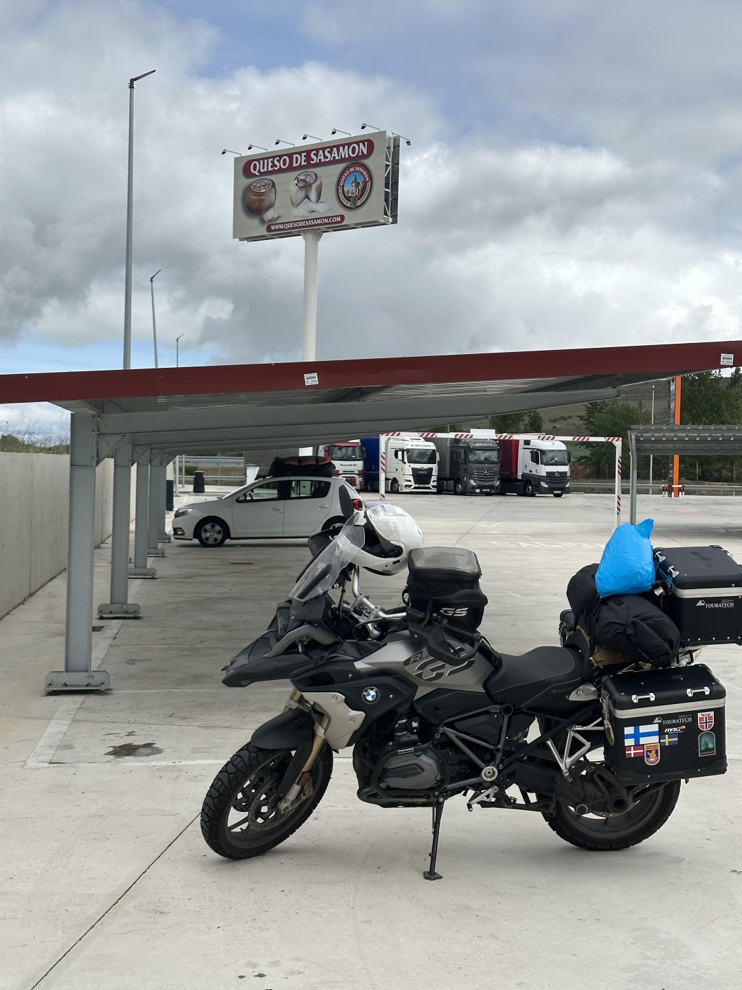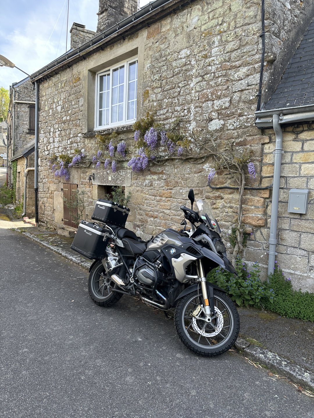 I left the following morning in cold fog. Bliss! Just a motorway run to Bayonne only stopping for fuel. Wasn't impressed with the hotel as the bar and restaurant were closed and I ended up walking a few miles to a McDonald, but enjoyed the walk. The following day it was raining off and on all day so head down, pay the tolls and get to Brittany as quickly as possible. Fuel and snack stops Rain forecast along the coast road so headed inland I was dragged kicking and screaming to a bar by a lake run by Brits. Ended up being a late one. Made a friend.4 points