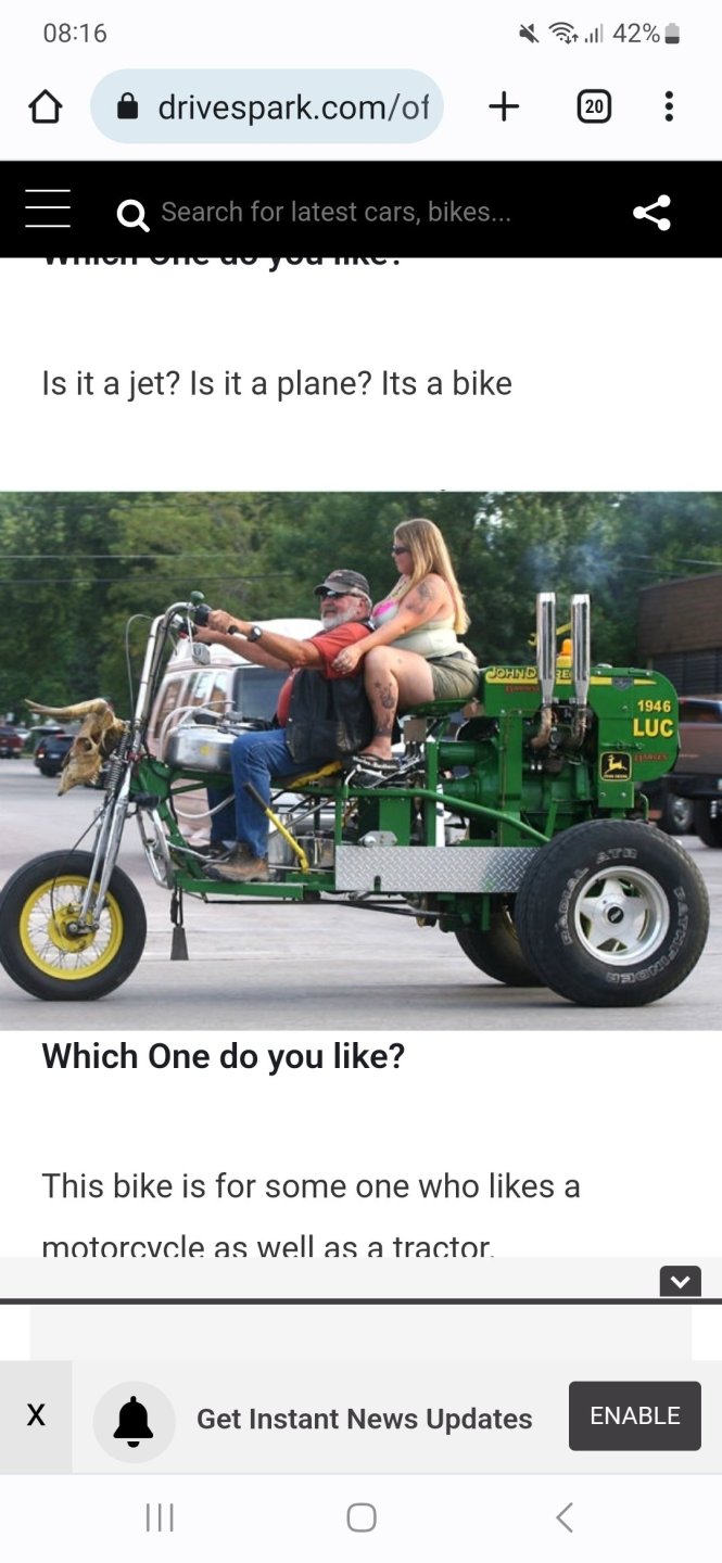 Car wouldn't start......like it did about 6 weeks ago. Then after a few hours it started fine, but Jesus the mechanic needs to check it in it's "not starting" state. That won't happen today cos they don't work Saturday. So I had to take the wife to the horses on the bike..... I'm sure you'll be interested to know that the bike is obviously so boring that she fell asleep on the way home! Which has never happened on any other bike over the last 40 years! There we go......something else for you sad losers to troll with. The things I do to keep this board moving!4 points