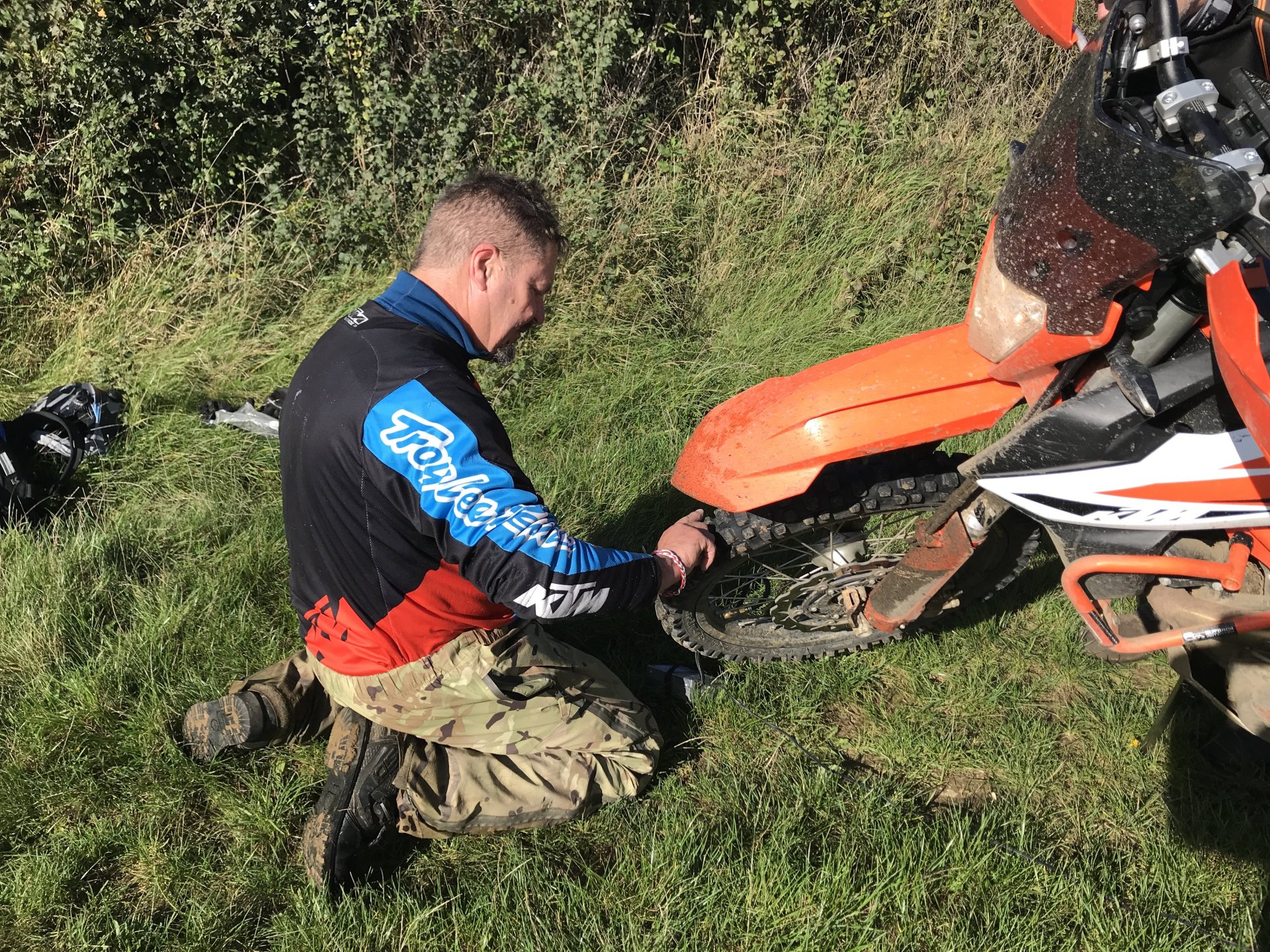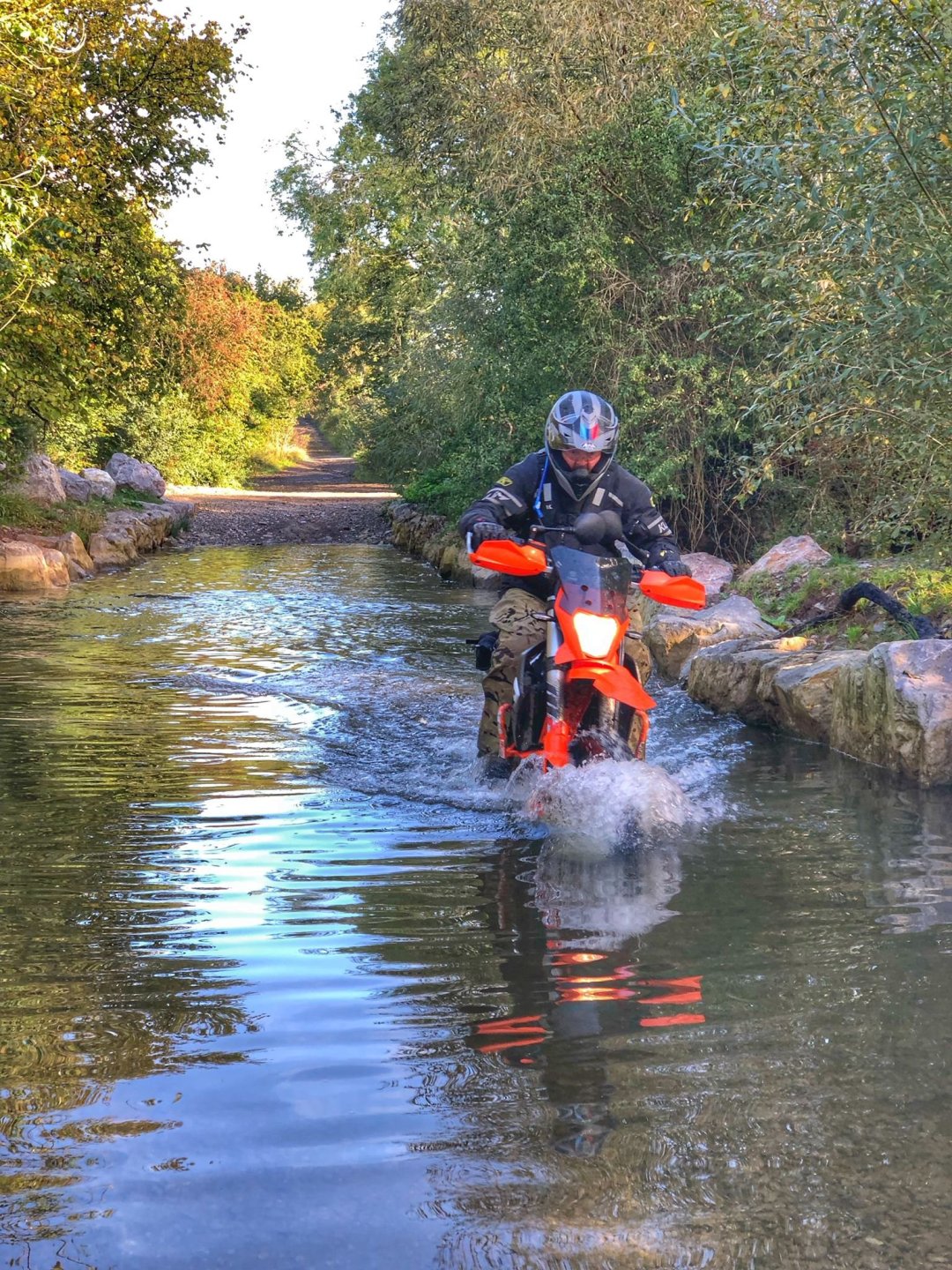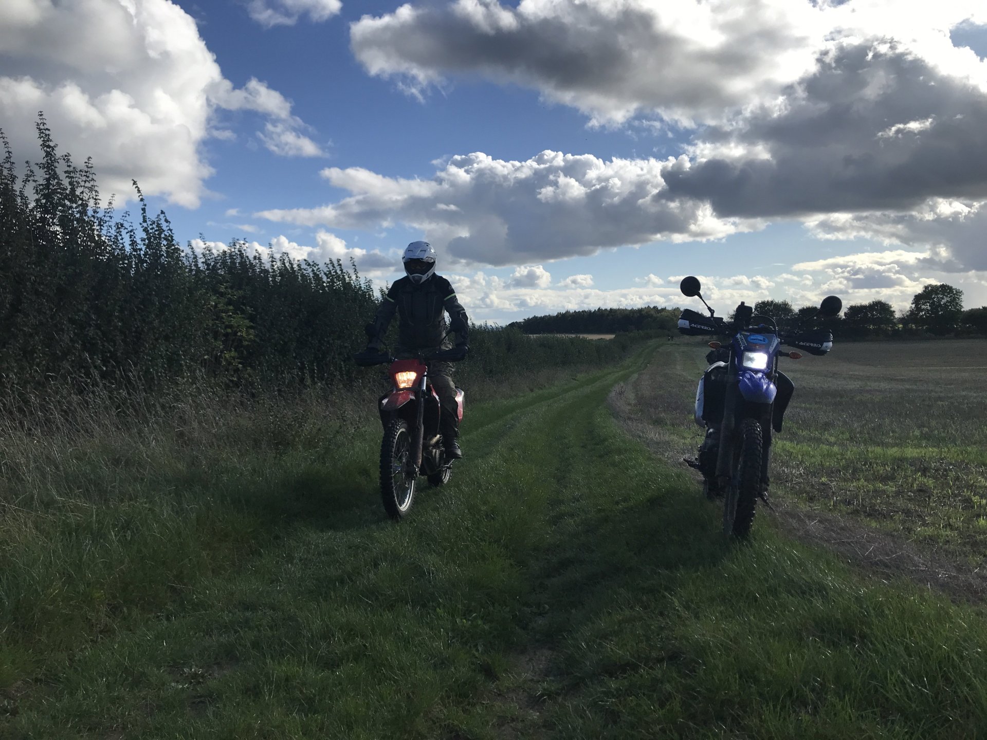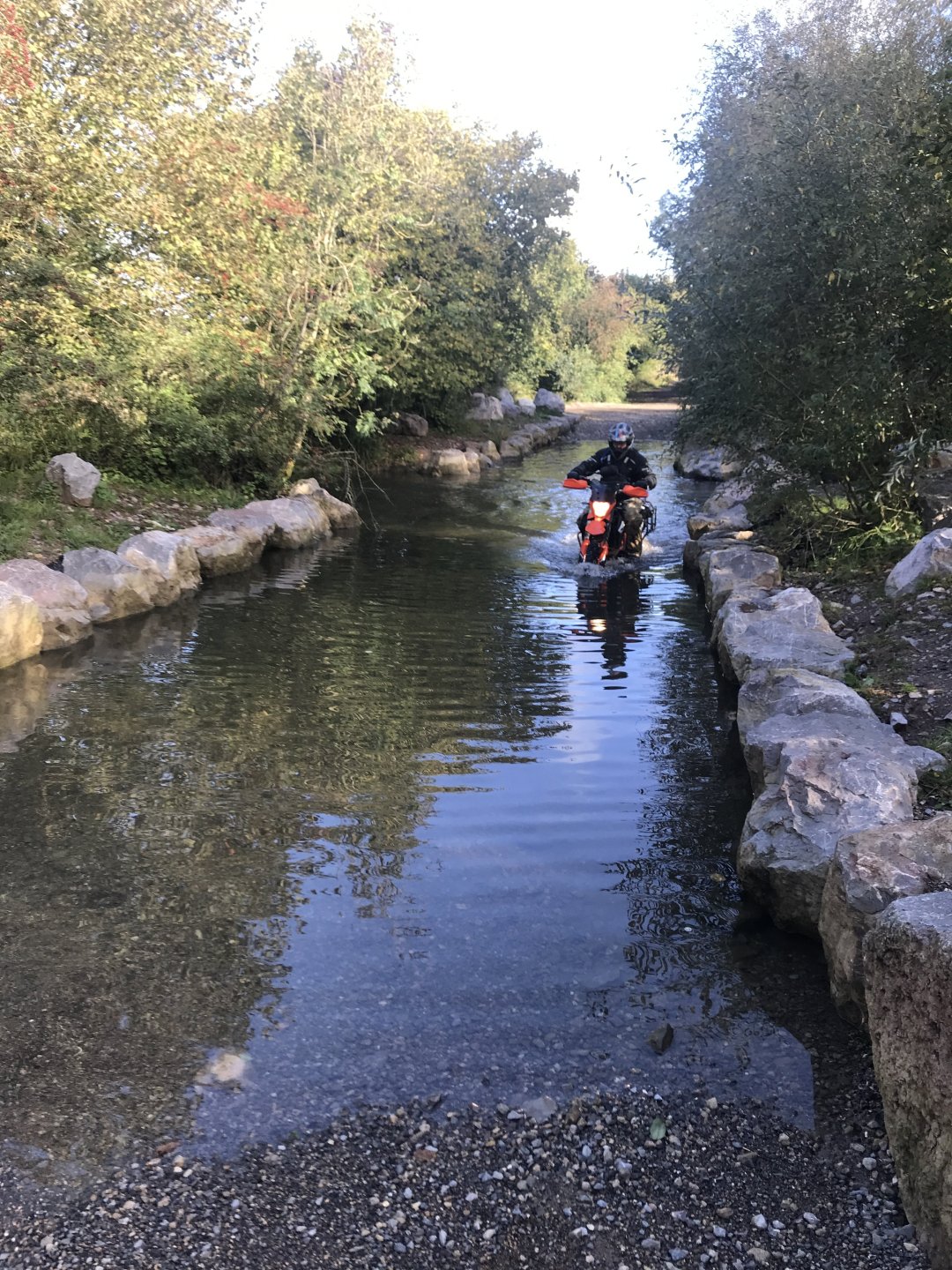 So today was the day to get the little Yamaha out on the lanes so I planned a route for me and my mate Gaz (who lives in Redditch) to meet near Cirencester and do a loop of about 80 miles . The then anti was upped as Big Tone decided to join us on his brand new Gas Gas 700ES. I set off about 08.30 and made my way up to Badminton via the A46 and then some back roads.............. We were meeting at the AV8 cafe at Kemble airfield, it was definitely open this time as @Sir Fallsalot wasn't coming ............ and after a coffee and a sausage baguette we were off. We rode down the Fosseway and Gaz braved the ford while we watched .......... and on we went down as far south as Castle Coombe race circuit where we than turned east but with a stop for coffee from our flasks ........... Once we got to Startley we stopped pay our respects at the RAF memorial .............. Onwards through more lanes coverd in shit and puddles until we got to Fairford. We stopped in athe fuel station there for a lunch a la @Earache (where the hell is he ?) ............ After lunch we went North but Gaz got a puncture on the first lane of the afternoon................... Once it was sorted we carried on but spent most of the afternoon dodging showers . There were still some nice lanes though despite the soggy conditions.............. Once we got to the A429 Gaz headed off north to get back home while me and Tone dodged showers going south. The little Yamaha peformed faultlessly, I'm very happy with it. I just need to see if there is any adjustment on the rear shock but everything else was fine5 points