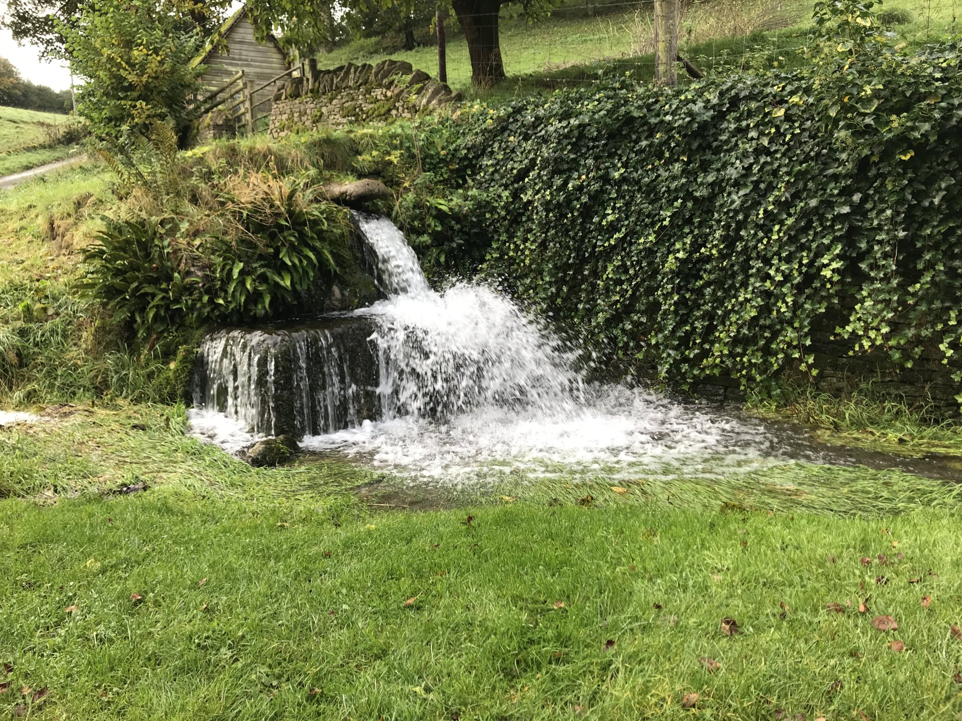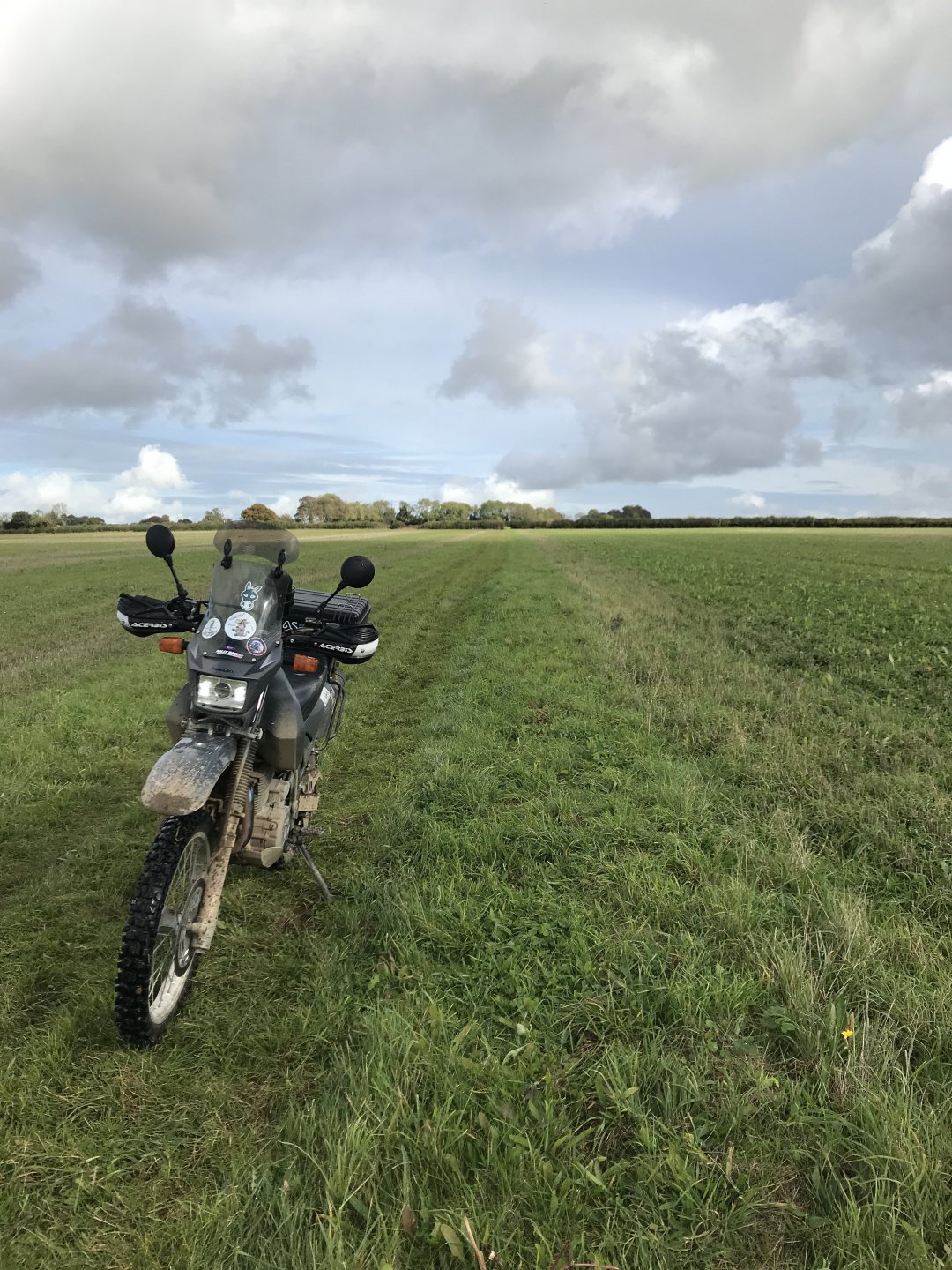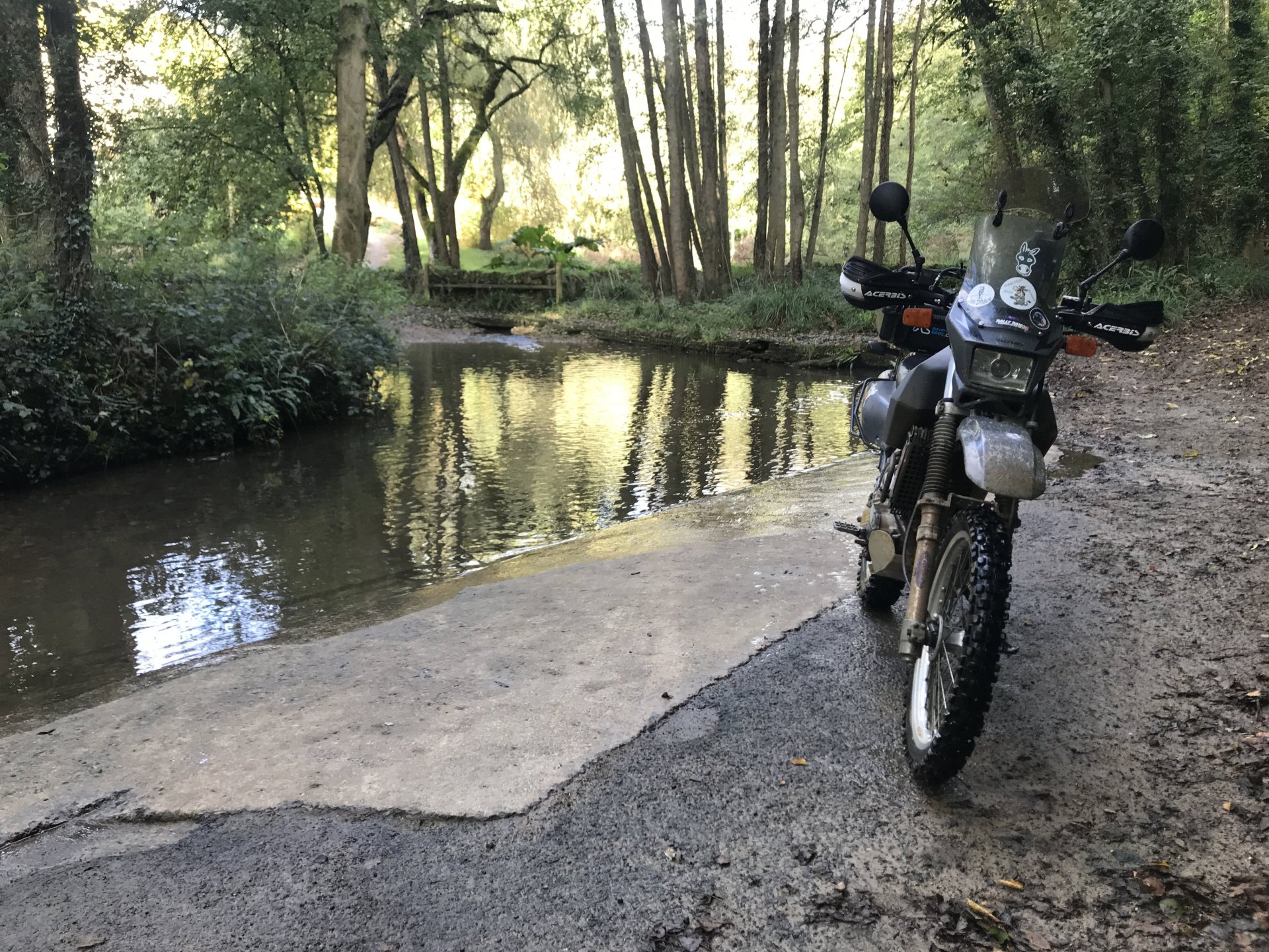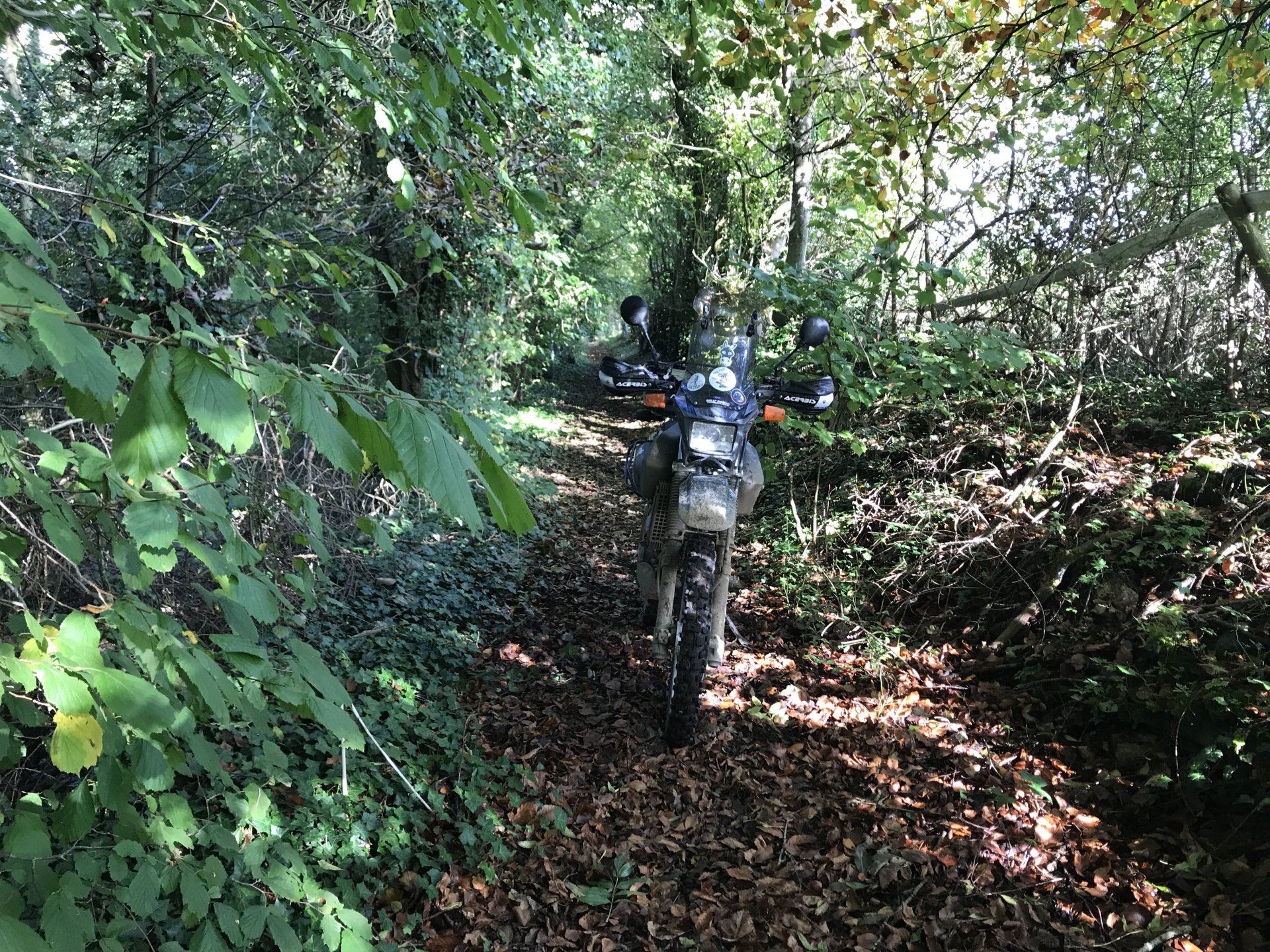 So having seen the sad passing of James Higgs I thought I'd look at his you tube channel and see where his last videos were. He had put up a video of a lane at Naunton on the Cotswolds so today I decided to go and ride it and a few others in his memory. The weather was decent when I left Bristol at 9.00 but by time I got onto the Cotswolds it was quite foggy.......... By time I got up to the old WW2 airfield near Chedworth I was dying for a piss so into the woods I went, while I was there I stumbled upon an old building . @XTreme would have been proud of me but there were no dead dogs inside so I left a bit sharpish ........... I got down to Compton Abdale and there was evidence of how wet it has been ............... I rode through Salperton and onto the first lane which ends at the Notgrove long barrow .................. There was evidence of me bashing through the undergrowth on my top box.............4 points