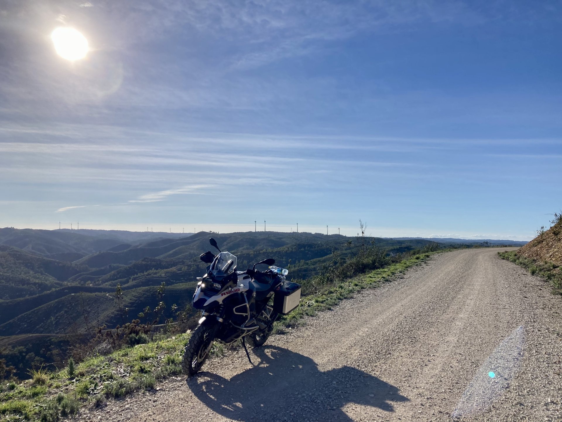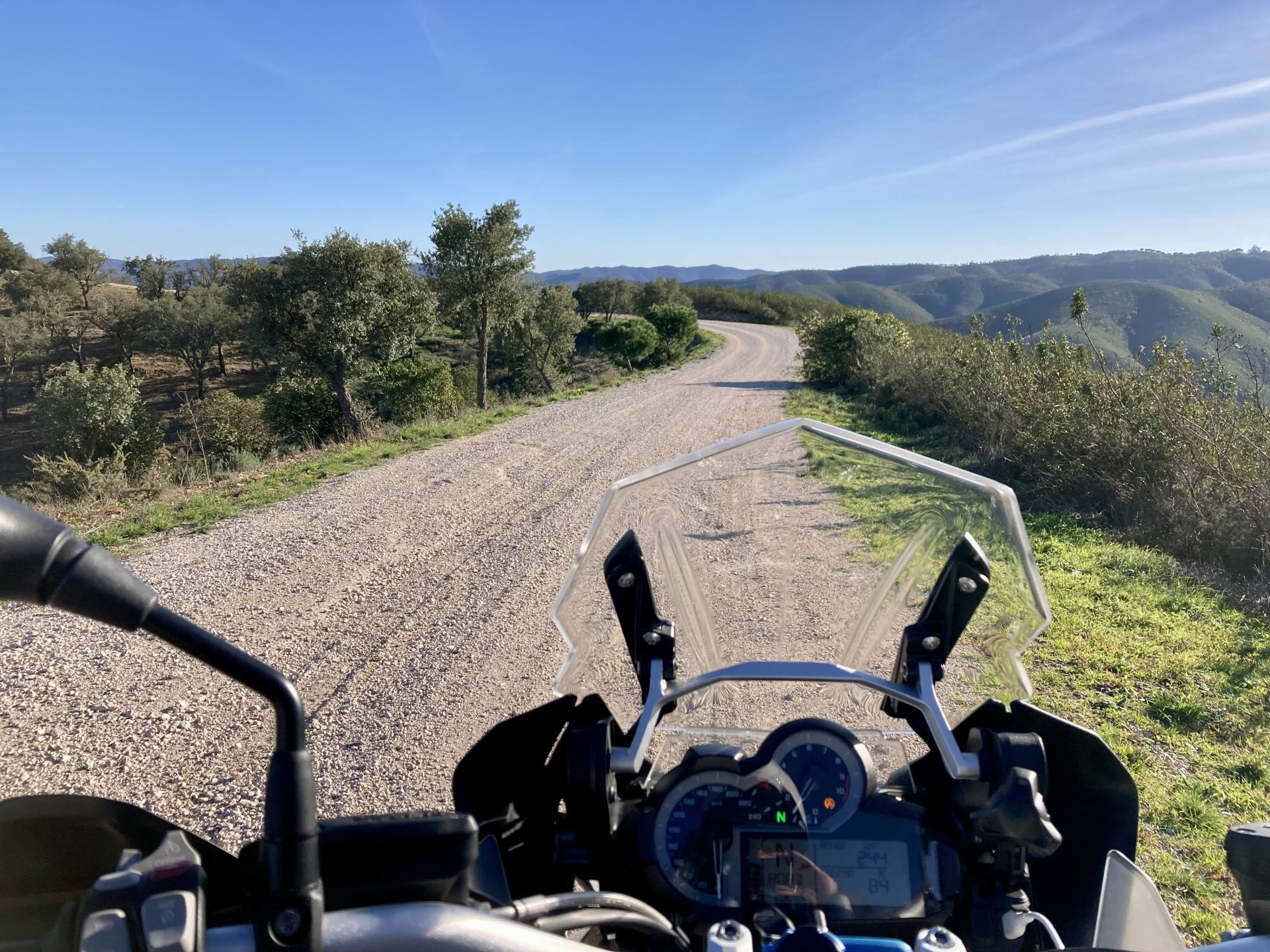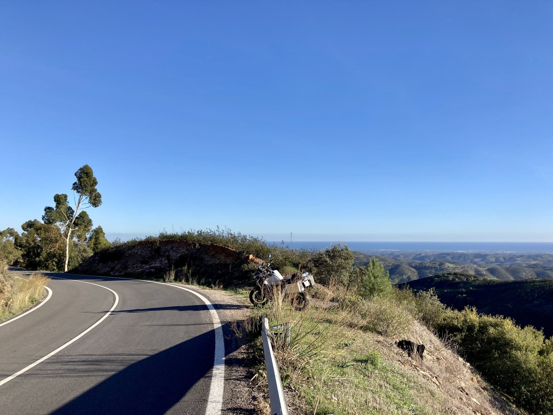 Thank you, but turns out I won't need much luck. A lot of stuff came up today and I will have to dedicate some time to work next week, so Morocco is out. Not much of a bummer because my heart wasn't really in it either, felt like I was going to do it for the sake of it. Regardless, did have a nice ride today leaving home and heading to the Algarve all the way on back roads. Left later than usual, at around 10. Everything was really pretty now that we had some rain, 2 or 3 hours later stopped for lunch by the side of the road next to a pretty field, and had my sandwich. It felt a lot colder than the thermometer showed, so it was a treat to stand under the sunshine. There was absolutely no traffic, three vehicles passed during the entire time, so I had fun taking pictures standing in the middle of the road. 20 minutes later, and I stopped for a post lunch espresso, like you do. Heading South on the N2, this used to be Portugal's main road if you were to drive through this part of the country. Getting to the Algarve, I took to some smaller roads. weather, the twisties and the tarmac were perfect, but I took a detour via some dirt roads with some nice views. The destination would be the same were you to stick to nice tarmac roads, and only a 10 or 15 minute delay by taking these. Below the tarmac bit that will take me the last 10 or 15km to the seaside, which you already see in the distance in the previous pictures. I love this part of the Algarve, riding in hills and mountains but not more than 10 or 15km from the beach and with a clear view to it from above. After a warm shower, I went for a walk. This is the same place I stayed in last year before leaving Portugal, watched the end of the sunset by the water, and started being attacked by mosquitoes, so went for a walk.4 points