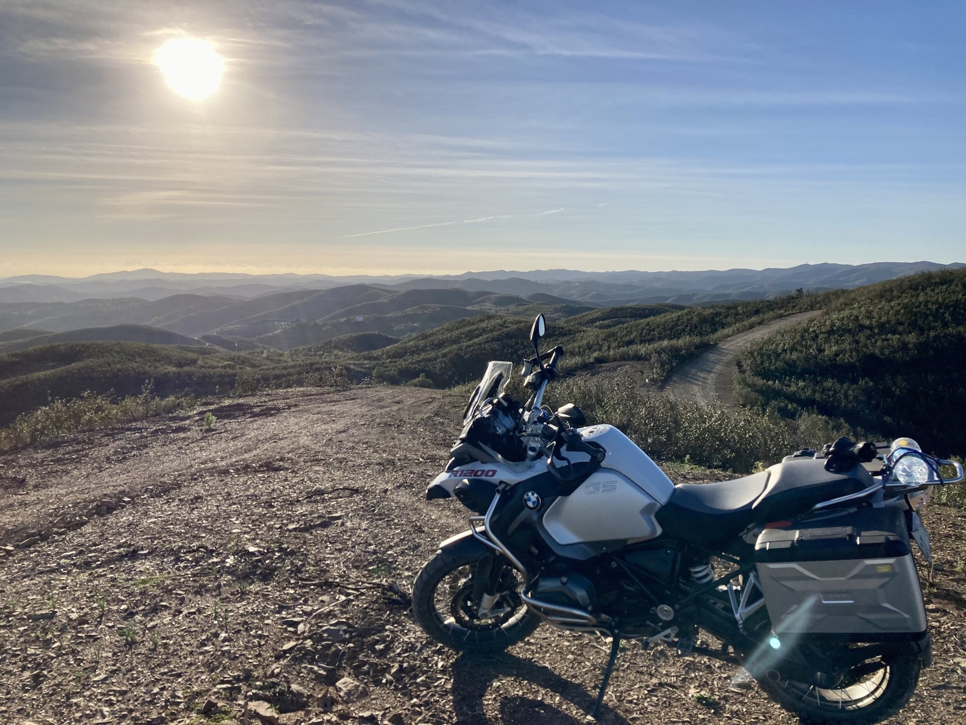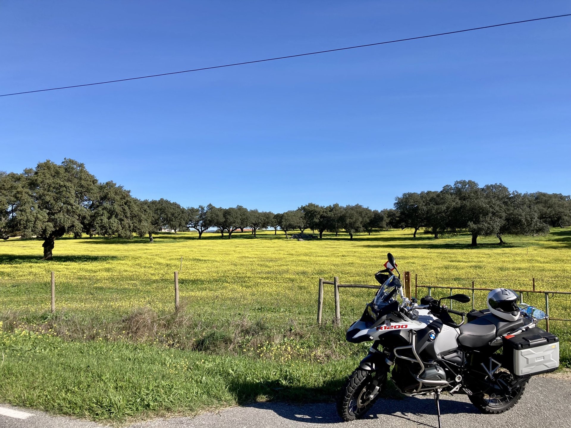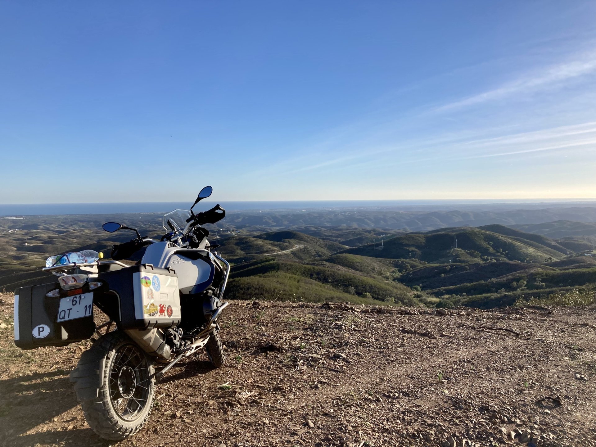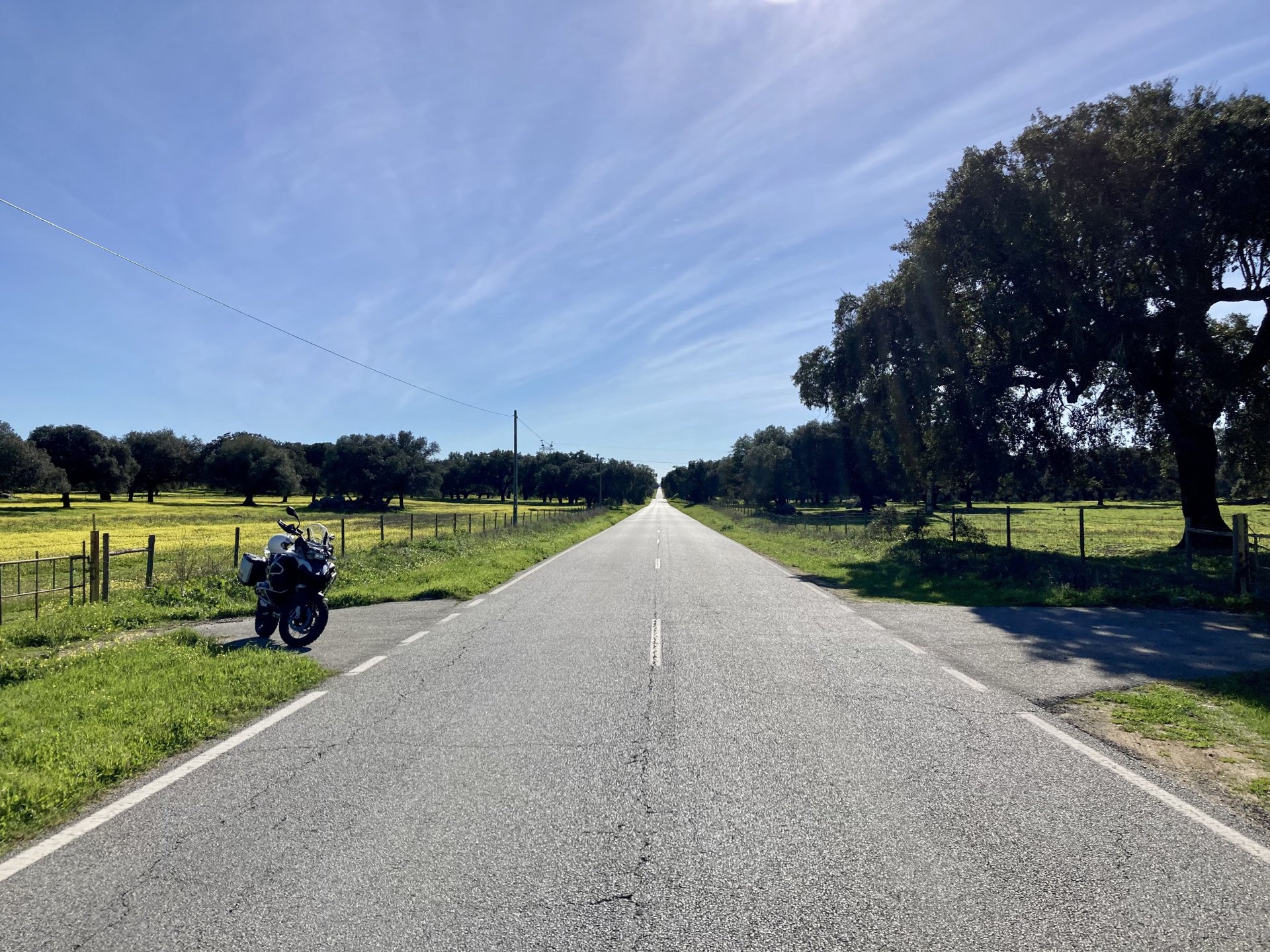 Thank you, but turns out I won't need much luck. A lot of stuff came up today and I will have to dedicate some time to work next week, so Morocco is out. Not much of a bummer because my heart wasn't really in it either, felt like I was going to do it for the sake of it. Regardless, did have a nice ride today leaving home and heading to the Algarve all the way on back roads. Left later than usual, at around 10. Everything was really pretty now that we had some rain, 2 or 3 hours later stopped for lunch by the side of the road next to a pretty field, and had my sandwich. It felt a lot colder than the thermometer showed, so it was a treat to stand under the sunshine. There was absolutely no traffic, three vehicles passed during the entire time, so I had fun taking pictures standing in the middle of the road. 20 minutes later, and I stopped for a post lunch espresso, like you do. Heading South on the N2, this used to be Portugal's main road if you were to drive through this part of the country. Getting to the Algarve, I took to some smaller roads. weather, the twisties and the tarmac were perfect, but I took a detour via some dirt roads with some nice views. The destination would be the same were you to stick to nice tarmac roads, and only a 10 or 15 minute delay by taking these. Below the tarmac bit that will take me the last 10 or 15km to the seaside, which you already see in the distance in the previous pictures. I love this part of the Algarve, riding in hills and mountains but not more than 10 or 15km from the beach and with a clear view to it from above. After a warm shower, I went for a walk. This is the same place I stayed in last year before leaving Portugal, watched the end of the sunset by the water, and started being attacked by mosquitoes, so went for a walk.4 points