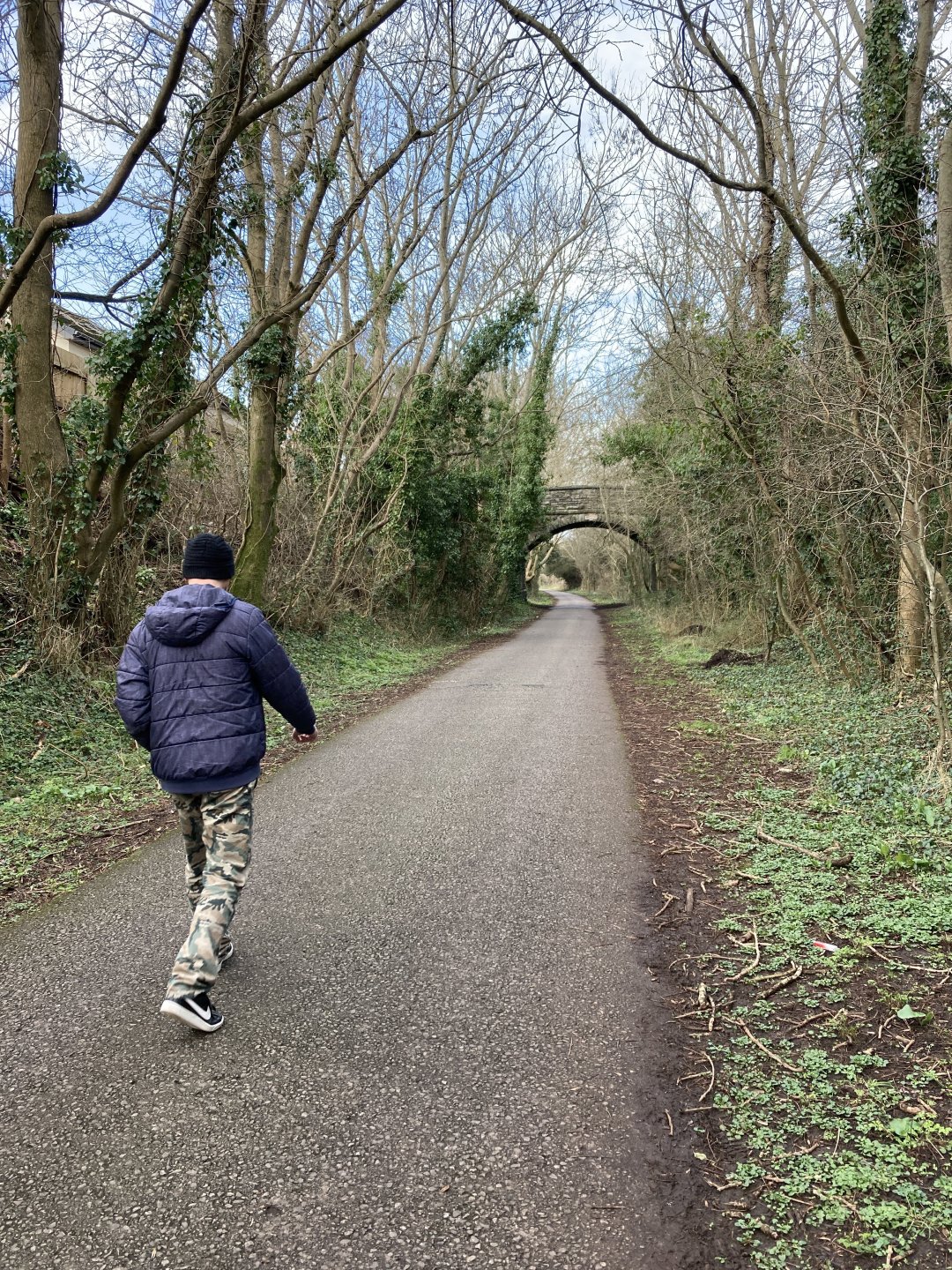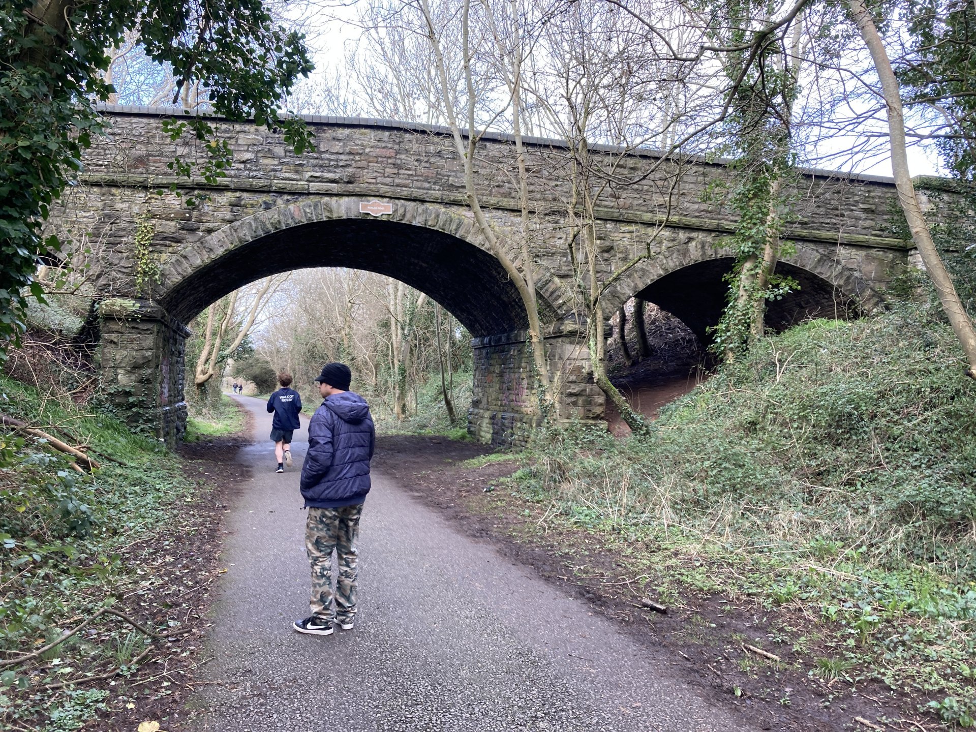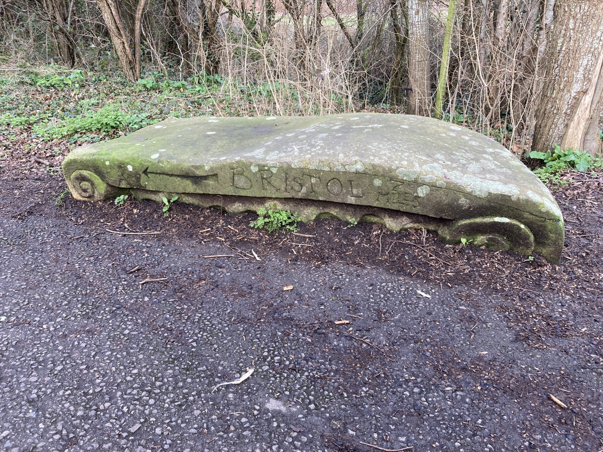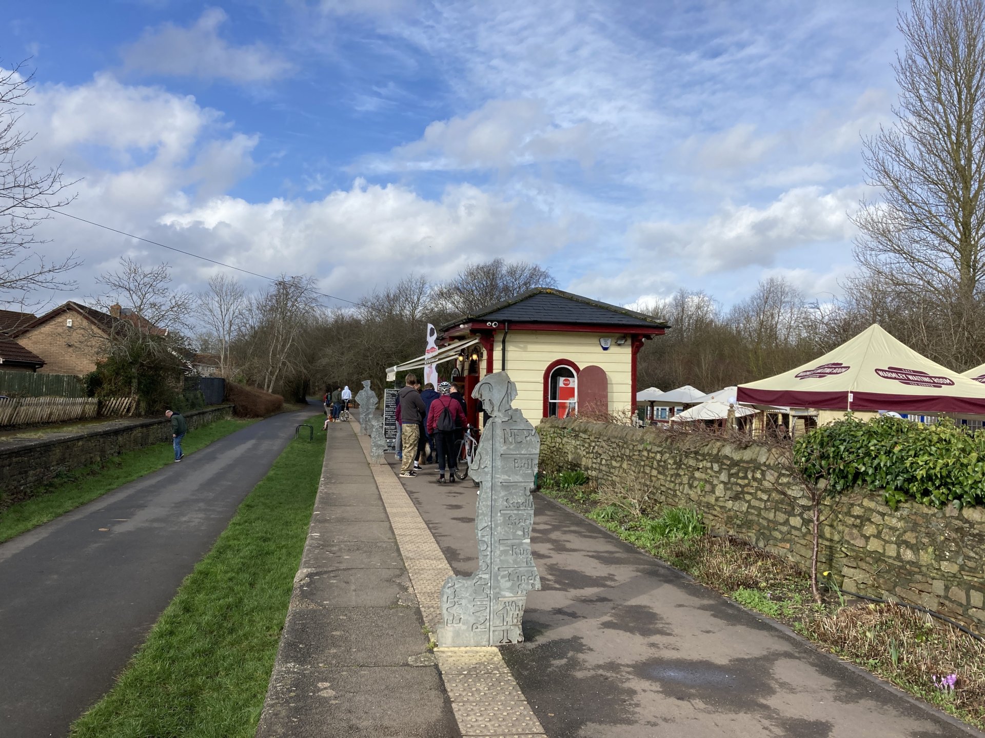 Made by a local artist , there is another on the other side proclaiming 'Bath 8 miles' and a bench with a big man blowing a horn in the middle. From what I can see it has f*ck all to do with the railway/cycle path4 points