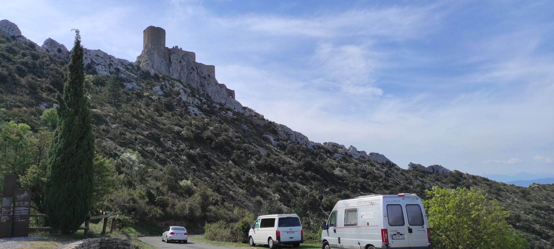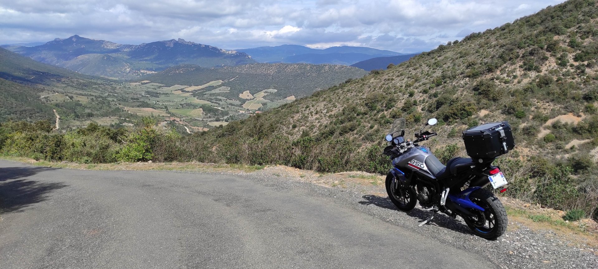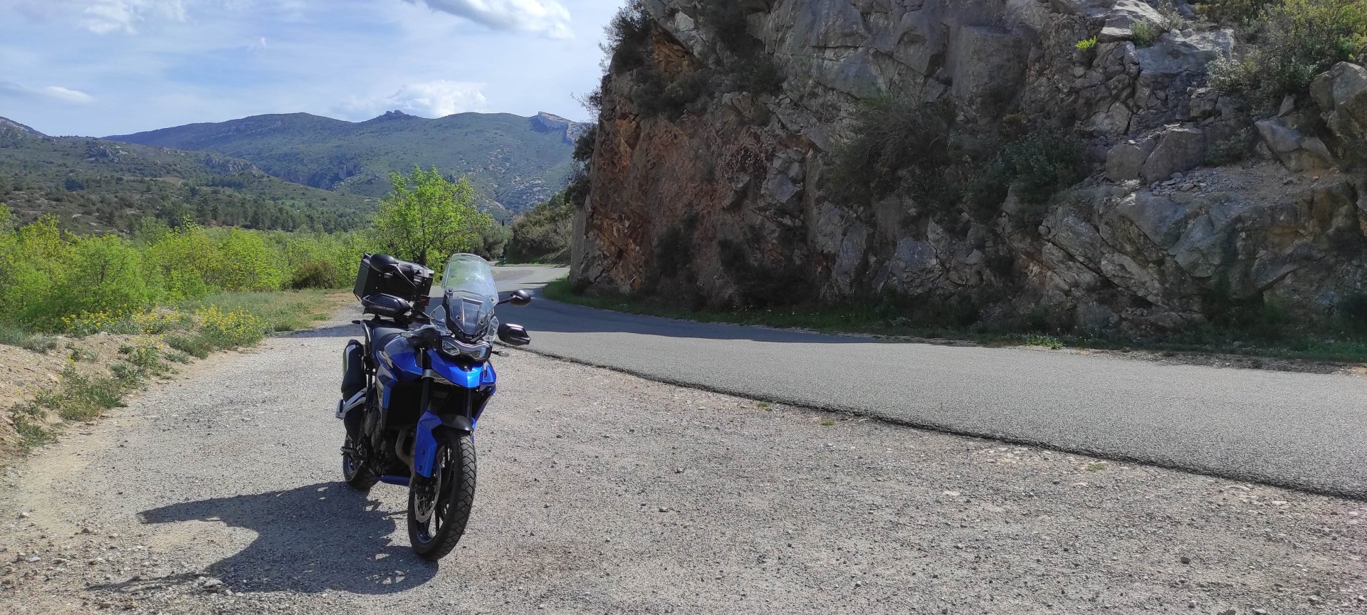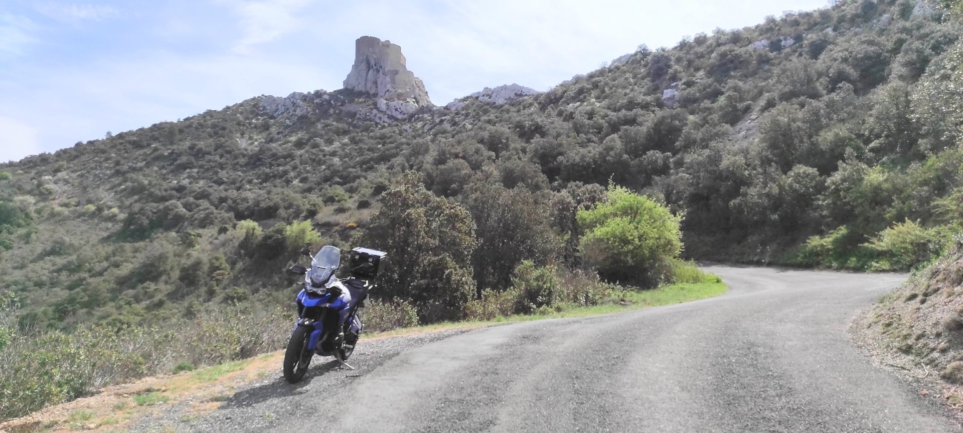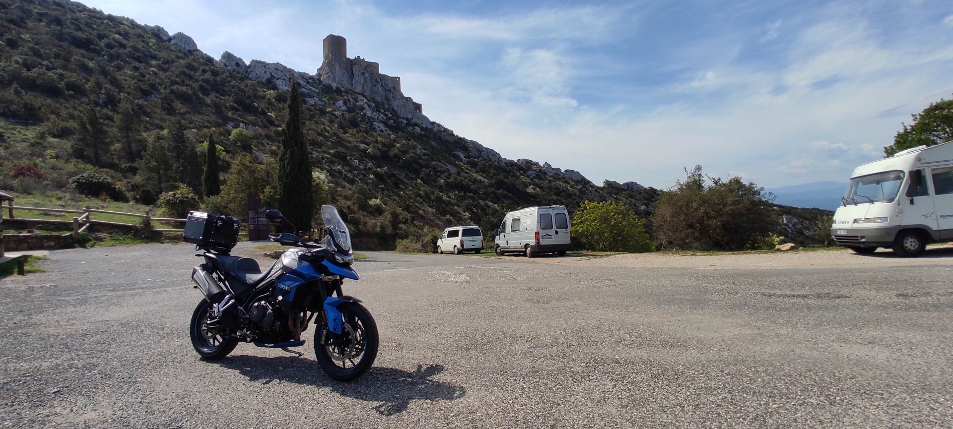 I've been past the Château Quéribus a few times, but never took the road up to it, so I thought that it would be a nice little run on the new bike. I headed around the Narbonne northern ring road as usual and took my normal route up and across past the Abbaye Fontfroide. It was slightly cloudy when I set off, but it was blowing a hoolie! On the road past Fontfroide I was getting knocked about by the wind and I did seriously consider calling it a day and head back home, but I decided to persevere and carried on. I turned off that road at Thézan-des-Corbières and headed west. The wind was now behind me, so it wasn't so much of a problem then. I was trying to get tuned into the new bike, which rides and handles quite different to the Scrambler. I noticed also that the Michelin Anakee's on it don't tramline like the Dunlops did on the Scrambler. The ride is also more plush on this bike, but it holds its line pretty well through the twisties. My route took me through Durban-Corbières, Villeneuve-les-Corbières and Tuchan, so I passed by the Château d'Aguilar before turning off and heading up the gorge near Padern and then on to Cucugnan, where the turning up to the Château Quéribus is. The road twists up the side of the hills there before you reach the road that takes you up to the castle carpark. The road up to the carpark is pretty narrow and there's a couple of nice, tight hairpins up there. The carpark was not too busy, so I stopped for a couple of pictures and then went down the same access road. I stopped at the junction of the main road for a coffee from my flask that I'd taken with me. The wind was howling across there and I ended up wearing more coffee than I drank. I was fearful of the bike getting blown over too, so I decided to just head back by the same route and save further exploration for some less windy days! I was pleased how the bike felt and performed. I was starting to get tuned into it by the return journey.8 points