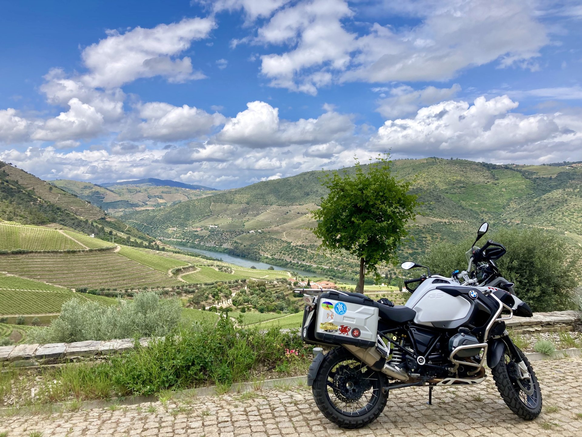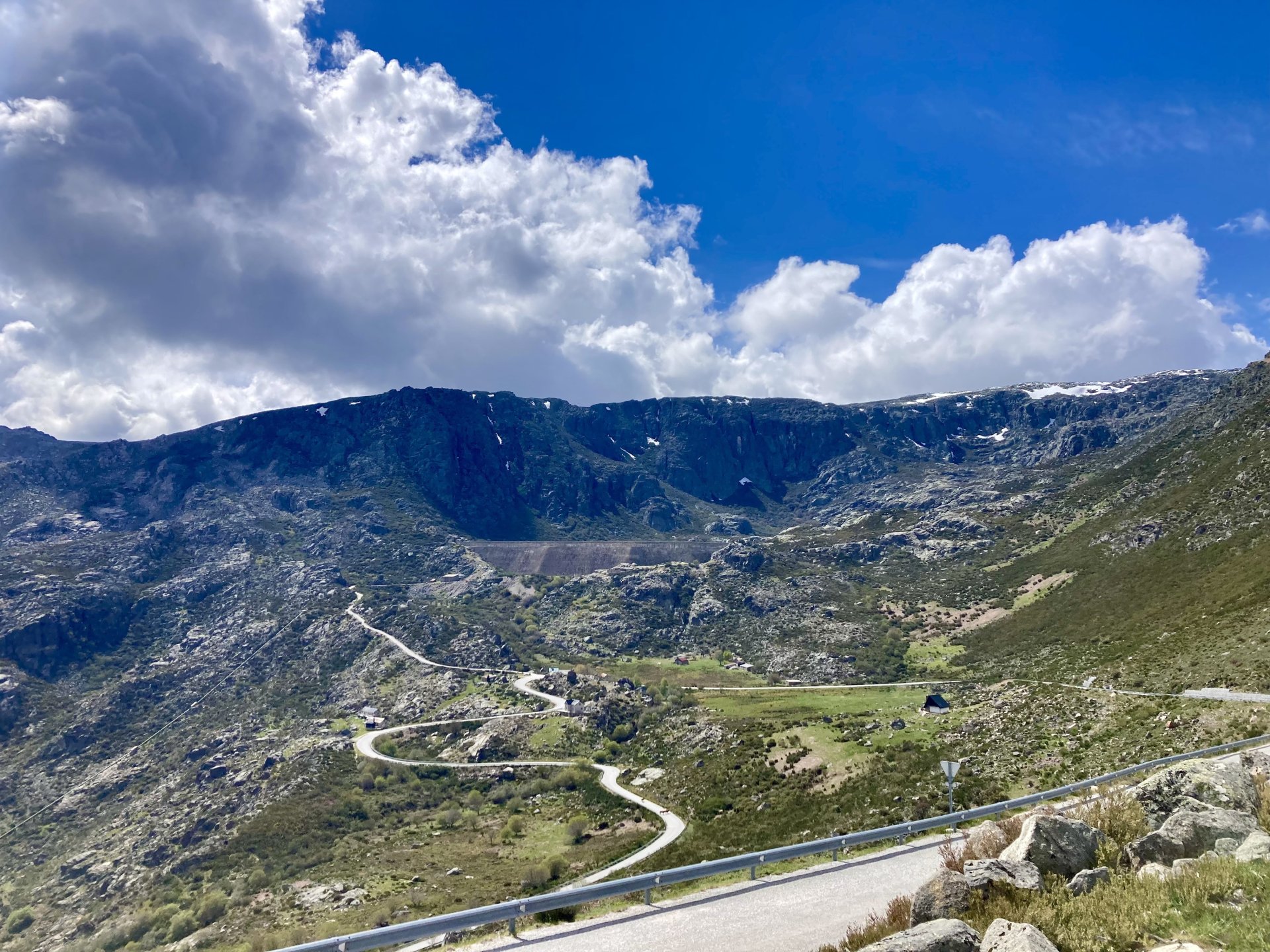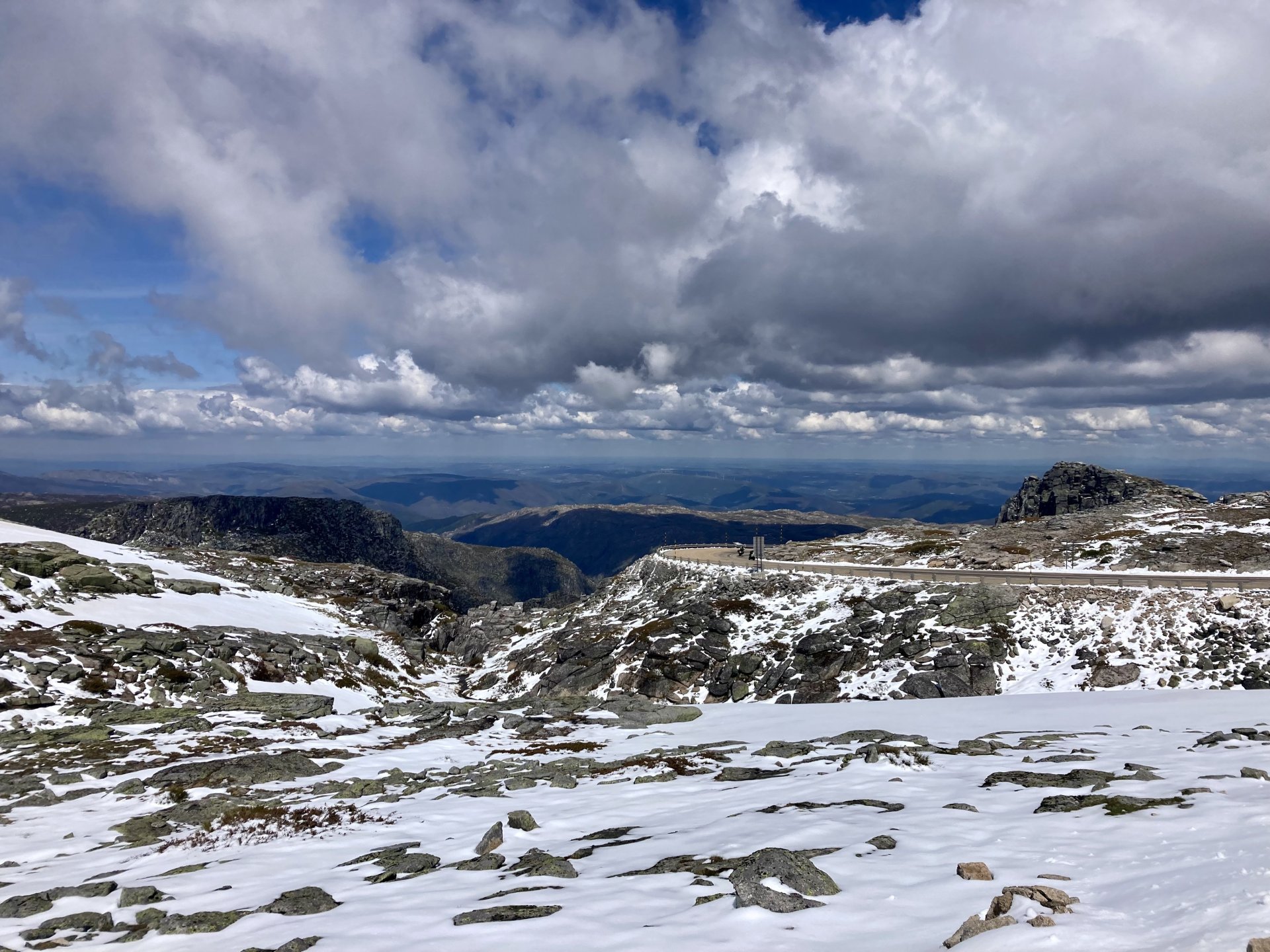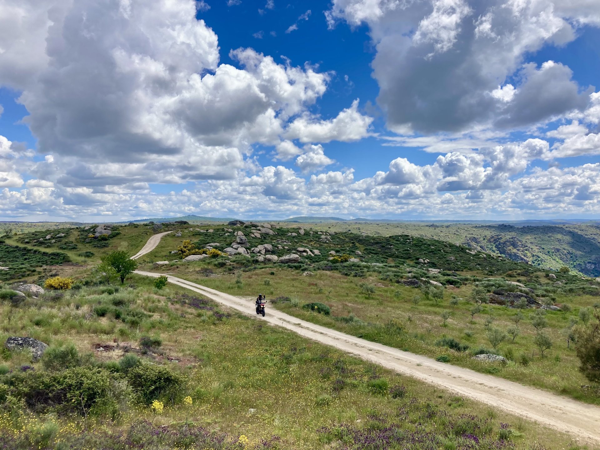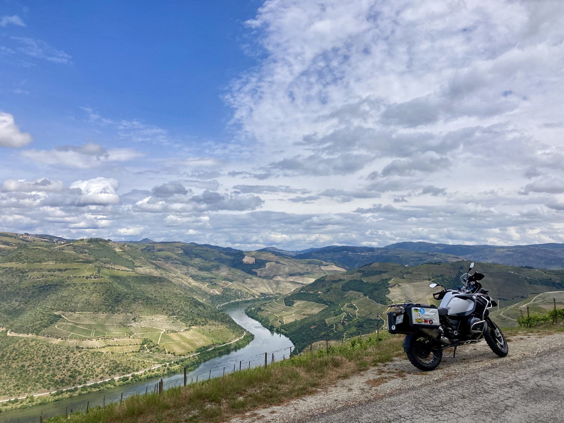 I left home to go and meet up with Sofia to help guide one of her motorcycle tours. Meeting in Tras os Montes, near the inner North Portuguese border, where we'd meet her client the next day. Hardly no stops this day as I left later than planned. Did take back roads to get there though, before meeting with Sofia at Pocinho, by the Douro river. A stop on the way over to take a look at an access road to a farmhouse where we'd stop a few days later. It's quite steeper than it looks on pictures, surface not maintained as it's basically a work service road for vineyards. It's really the sort of stuff I love to ride on but not to everyone's taste. We had been enjoying almost summer like weather during the previous 2 or 3 weeks, but the forecast was changing and I rode through a few showers on the way there. Spirits were high and I was met with a ham sandwich upon arrival. Sofia had two british friends riding down as well, doing the north of Portugal in dirt roads and mostly off tarmac tracks, we were to meet them for a coffee since we had now time to spare before our destination for the night. Met up in a little village, and I took a few pictures while we waited. We ended up waiting more than anticipated because it turns out they were coping with a rear tire puncture. Eventually they arrived, their bung didn't do it repairing the puncture and it had a slow leak. Considering this a saturday afternoon in the middle of nowhere, and that most shops around would be closed on sunday, I gave it a go using my trusty repair kit. It worked like a charm, they carried on with the trip and it's still going strong today. While all this went on, the weather changed again and a heavy rain arrived. We waited a little while having a coffee. We made it home for our room for the night later than scheduled and after the last bit of the ride being in cold rain. Went to have dinner at my favourite restaurant, a proper beef rib perfectly cooked on coal. Happy times! That night we stayed in an old lady's little air b n b style place in a farm house, the bikes enjoyed the night inside the farm size garage, most garages in this area are big enough for full size tractors to drive in and our with trailers, so the GS could barely fit in. Contrary to previous weeks, this night temperatures were already quite low with a minimum of 0ºC. We rode off at around 4º or 5º in search of a cafe to have breakfast in, we weren't in a hurry because we were only expecting to meet up with Sofia's client by mid afternoon. Didn't make it 3 or 4 km down the road when we came upon a french guy with a fallen down Transalp 750. He dropped it parking on the side of the road, and couldn't get it back up. After lifting the bike, I managed to put his sidecase back on, it had both broke the lid and the mechanism that locks it onto the bike. Sofia had a strap that was used to then hold it all together, can't say I rate Honda's luggage very high after that incident. We did spend some time having coffee, then going to fuel up the bikes, and then already in the afternoon went to visit a village right near the border waiting for time to pass. Weather was cold and rainy. Eventually we found this warm little place for a snack and to get away from the cold. Will post almost no pictures of the tour itself as most of them feature a person that doesn't deserve to be shown in this forum , however, the next couple of days were blessed with big clouds and the odd threat of rain but overall really nice conditions to be out on bikes, if it had been in January. First day Our stop for a picnic lunch: And final stop point for the night, right before the hotel and dinner: Next day, we made it up to Portugal's highest point, only a brief rain shower on the way there, but overall great conditions. Even had lunch by a lake under glorious sun. The road up the mountain: Up there the temperatures were around 0º when we got there at around 14:30 to 15:00, pretty cold but the big clouds and brisk air made for great views. Up there it's often foggy and you can't see anything. Going down the mountain the other side, we took a little dirtroad. I went ahead to check if it was muddy, it wasn't. I wasn't happy to have this face off with a local cow, who wasn't happy to face a noisy bike either. We spent that night at an amazing place with a couple of horses. They're friendly enough but are of a wild breed, not really for riding, and like to take nibbles at your hands. Will continue later on or tomorrow, don't have that many pictures to post but there will be something.6 points