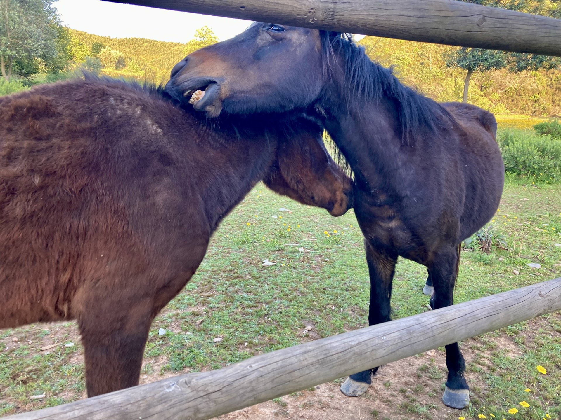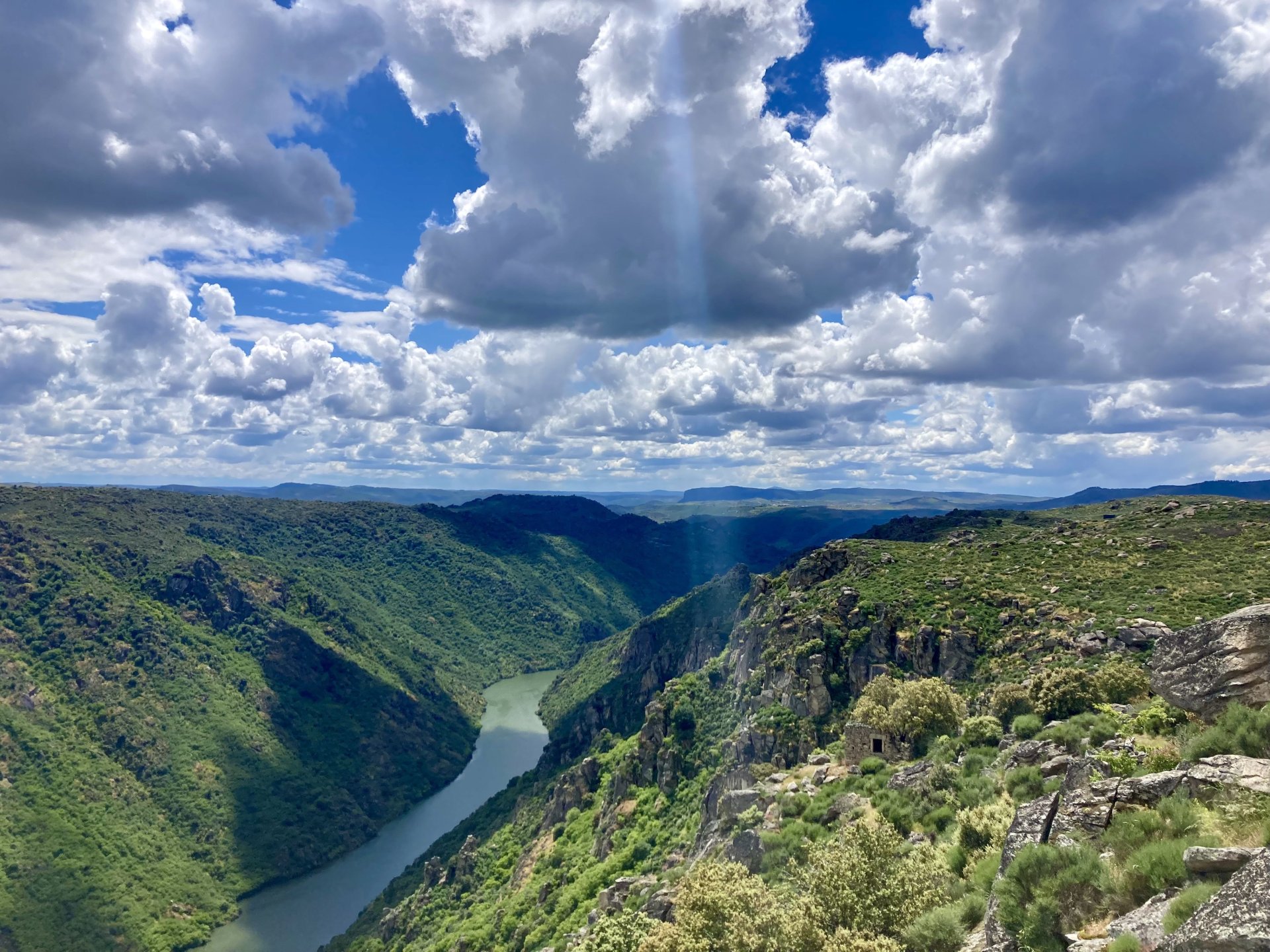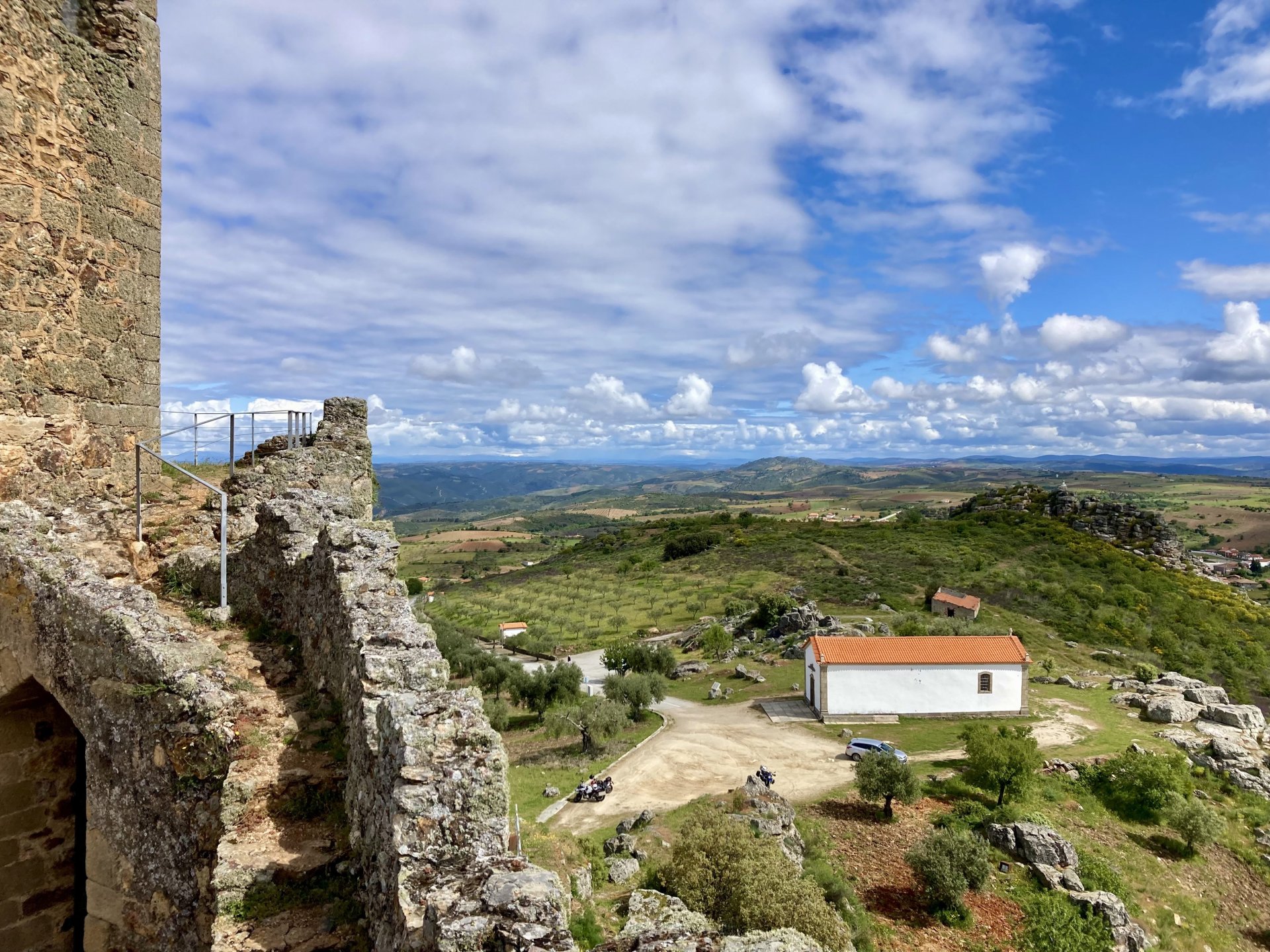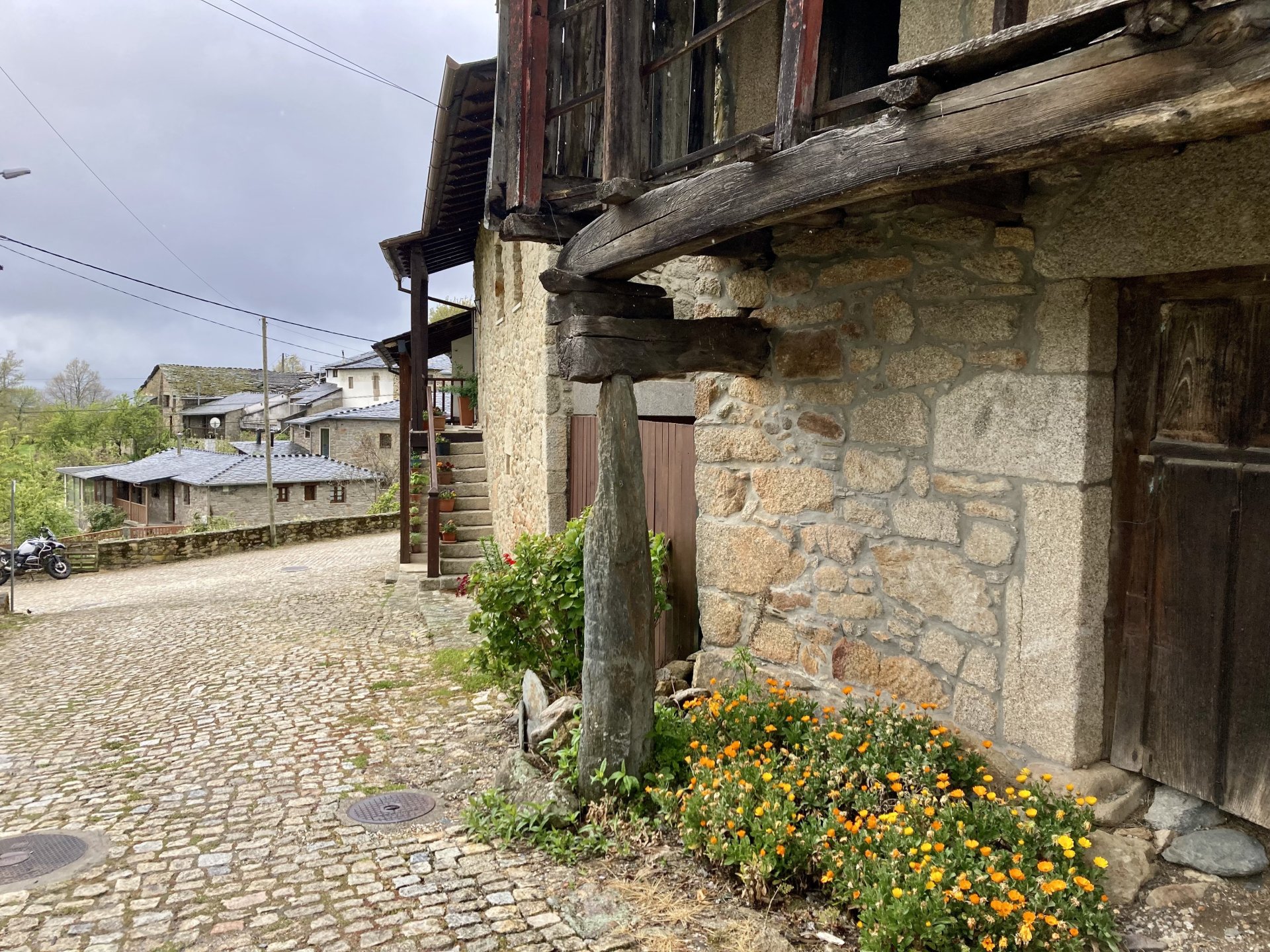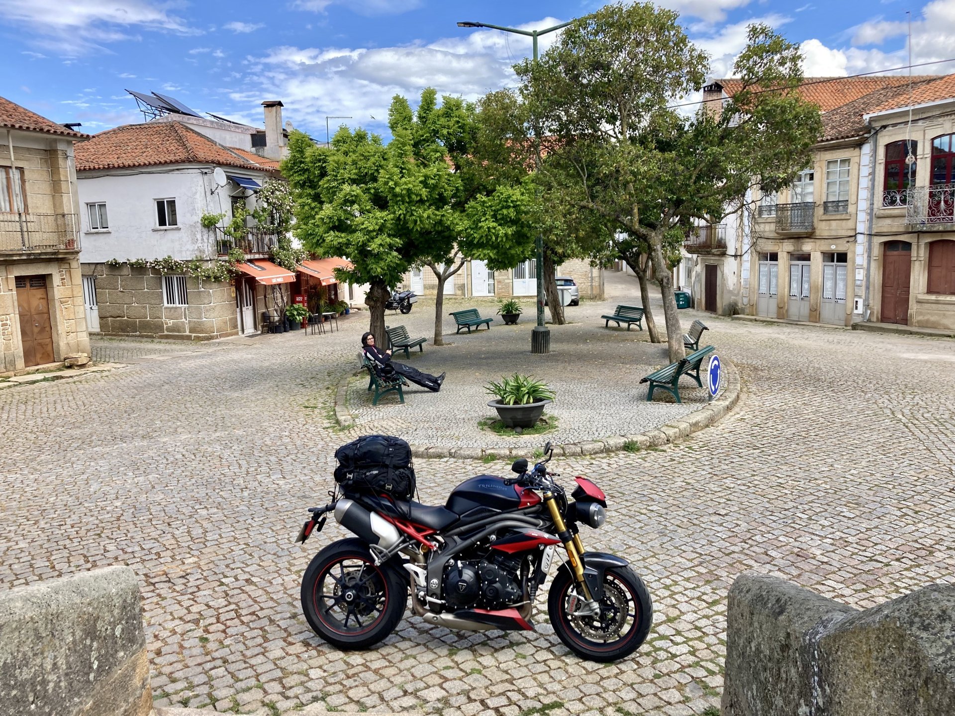 I left home to go and meet up with Sofia to help guide one of her motorcycle tours. Meeting in Tras os Montes, near the inner North Portuguese border, where we'd meet her client the next day. Hardly no stops this day as I left later than planned. Did take back roads to get there though, before meeting with Sofia at Pocinho, by the Douro river. A stop on the way over to take a look at an access road to a farmhouse where we'd stop a few days later. It's quite steeper than it looks on pictures, surface not maintained as it's basically a work service road for vineyards. It's really the sort of stuff I love to ride on but not to everyone's taste. We had been enjoying almost summer like weather during the previous 2 or 3 weeks, but the forecast was changing and I rode through a few showers on the way there. Spirits were high and I was met with a ham sandwich upon arrival. Sofia had two british friends riding down as well, doing the north of Portugal in dirt roads and mostly off tarmac tracks, we were to meet them for a coffee since we had now time to spare before our destination for the night. Met up in a little village, and I took a few pictures while we waited. We ended up waiting more than anticipated because it turns out they were coping with a rear tire puncture. Eventually they arrived, their bung didn't do it repairing the puncture and it had a slow leak. Considering this a saturday afternoon in the middle of nowhere, and that most shops around would be closed on sunday, I gave it a go using my trusty repair kit. It worked like a charm, they carried on with the trip and it's still going strong today. While all this went on, the weather changed again and a heavy rain arrived. We waited a little while having a coffee. We made it home for our room for the night later than scheduled and after the last bit of the ride being in cold rain. Went to have dinner at my favourite restaurant, a proper beef rib perfectly cooked on coal. Happy times! That night we stayed in an old lady's little air b n b style place in a farm house, the bikes enjoyed the night inside the farm size garage, most garages in this area are big enough for full size tractors to drive in and our with trailers, so the GS could barely fit in. Contrary to previous weeks, this night temperatures were already quite low with a minimum of 0ºC. We rode off at around 4º or 5º in search of a cafe to have breakfast in, we weren't in a hurry because we were only expecting to meet up with Sofia's client by mid afternoon. Didn't make it 3 or 4 km down the road when we came upon a french guy with a fallen down Transalp 750. He dropped it parking on the side of the road, and couldn't get it back up. After lifting the bike, I managed to put his sidecase back on, it had both broke the lid and the mechanism that locks it onto the bike. Sofia had a strap that was used to then hold it all together, can't say I rate Honda's luggage very high after that incident. We did spend some time having coffee, then going to fuel up the bikes, and then already in the afternoon went to visit a village right near the border waiting for time to pass. Weather was cold and rainy. Eventually we found this warm little place for a snack and to get away from the cold. Will post almost no pictures of the tour itself as most of them feature a person that doesn't deserve to be shown in this forum , however, the next couple of days were blessed with big clouds and the odd threat of rain but overall really nice conditions to be out on bikes, if it had been in January. First day Our stop for a picnic lunch: And final stop point for the night, right before the hotel and dinner: Next day, we made it up to Portugal's highest point, only a brief rain shower on the way there, but overall great conditions. Even had lunch by a lake under glorious sun. The road up the mountain: Up there the temperatures were around 0º when we got there at around 14:30 to 15:00, pretty cold but the big clouds and brisk air made for great views. Up there it's often foggy and you can't see anything. Going down the mountain the other side, we took a little dirtroad. I went ahead to check if it was muddy, it wasn't. I wasn't happy to have this face off with a local cow, who wasn't happy to face a noisy bike either. We spent that night at an amazing place with a couple of horses. They're friendly enough but are of a wild breed, not really for riding, and like to take nibbles at your hands. Will continue later on or tomorrow, don't have that many pictures to post but there will be something.6 points
