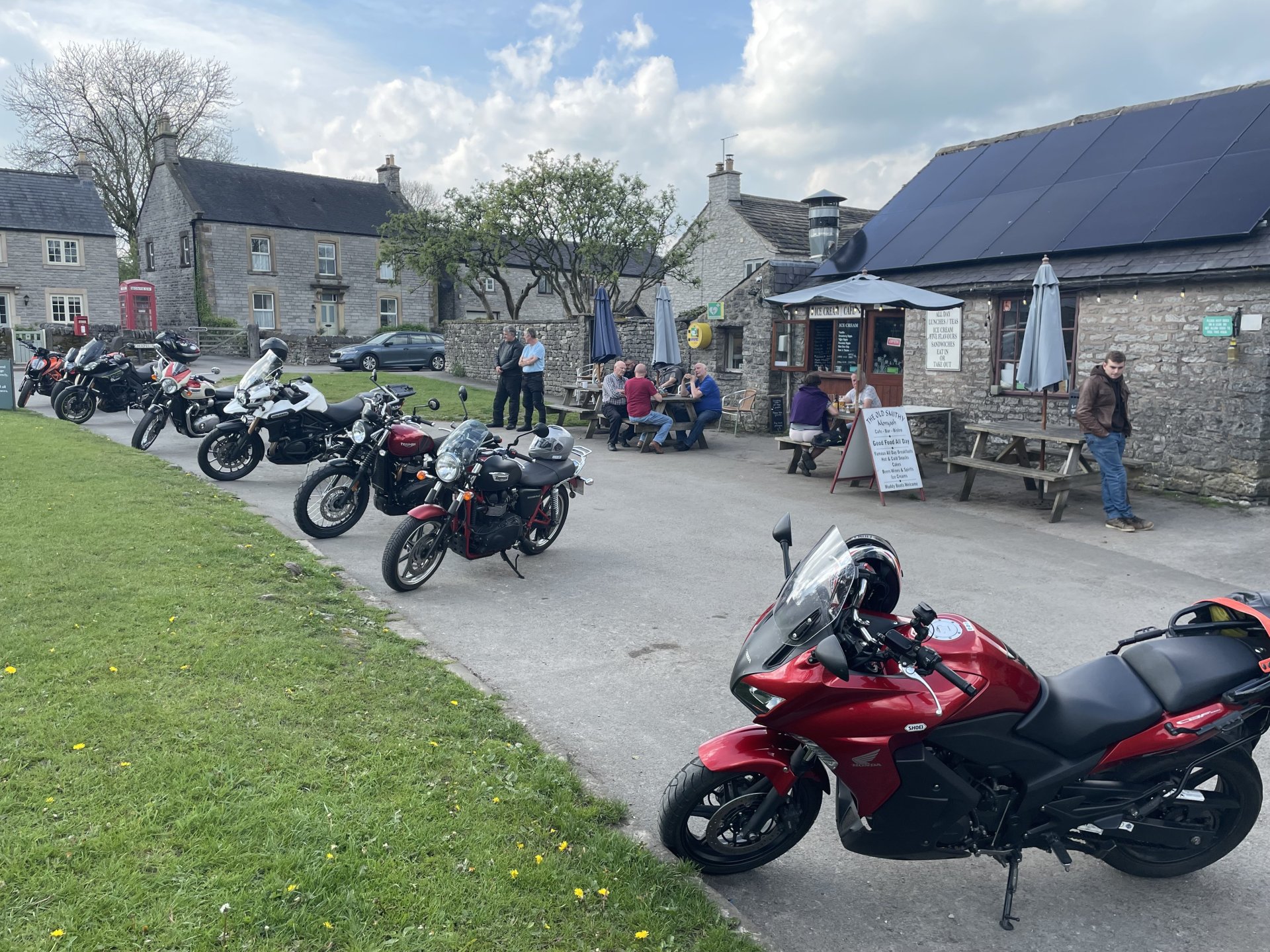 Been out on the Hornet with my youngest to run a few errands and see my Aunt. She wasn’t in so popped up to Dameralls for a sausage sandwich and cuppa and a look at the bikes. It never ceases to amaze me how many bikes they turnover in that place, I can see at least 15 used ones have gone since my last visit a couple of weeks ago. I have no idea how many new ones have gone out the door Also dropped into see my mate to give him some bits and got a pic next to his Hornet. Cheeky little 50 mile bimble about this morning.5 points