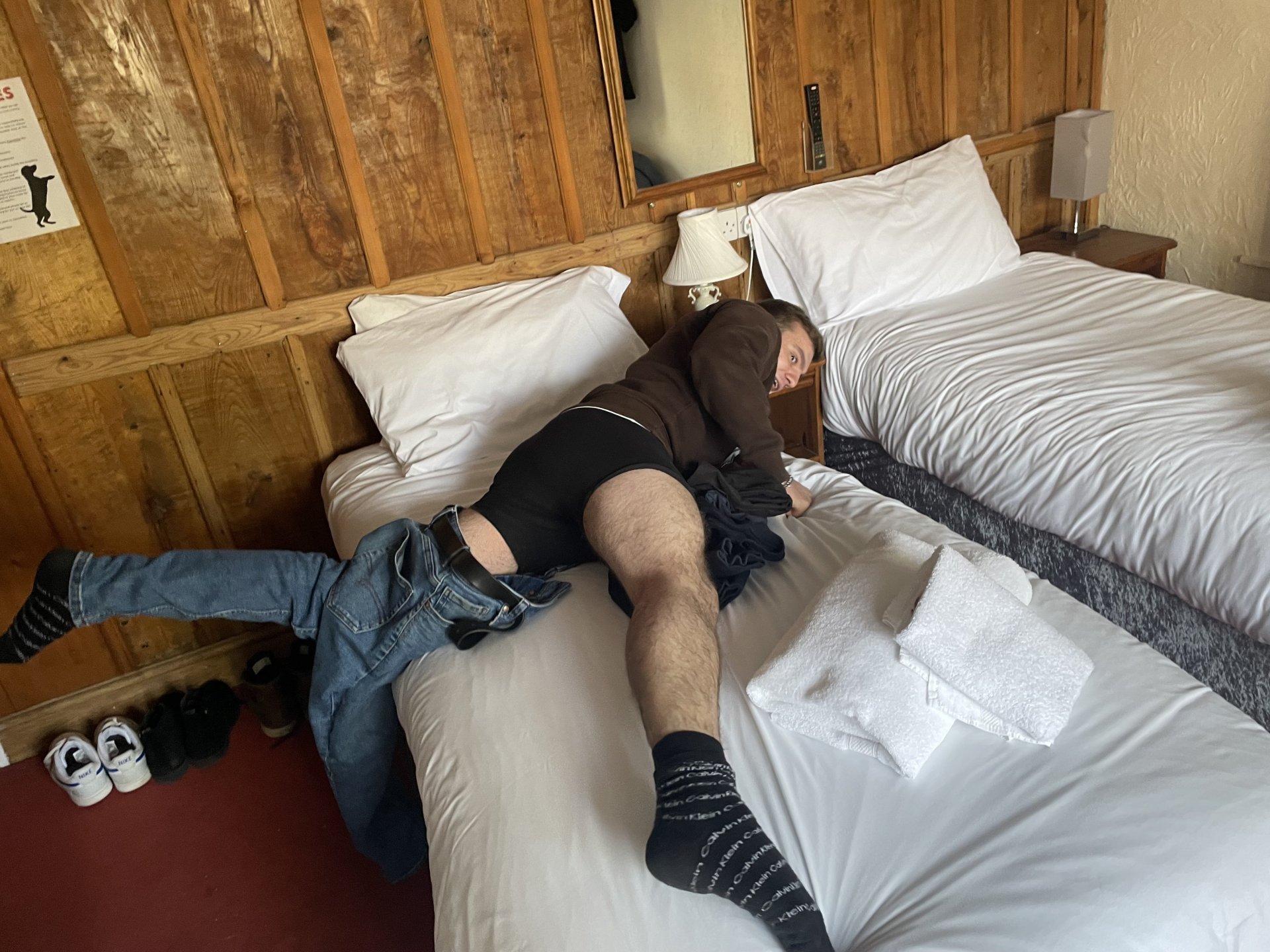 Is this what passes for a ride report now? Pictures of your nephew and a boot on a hotel bed?3 points