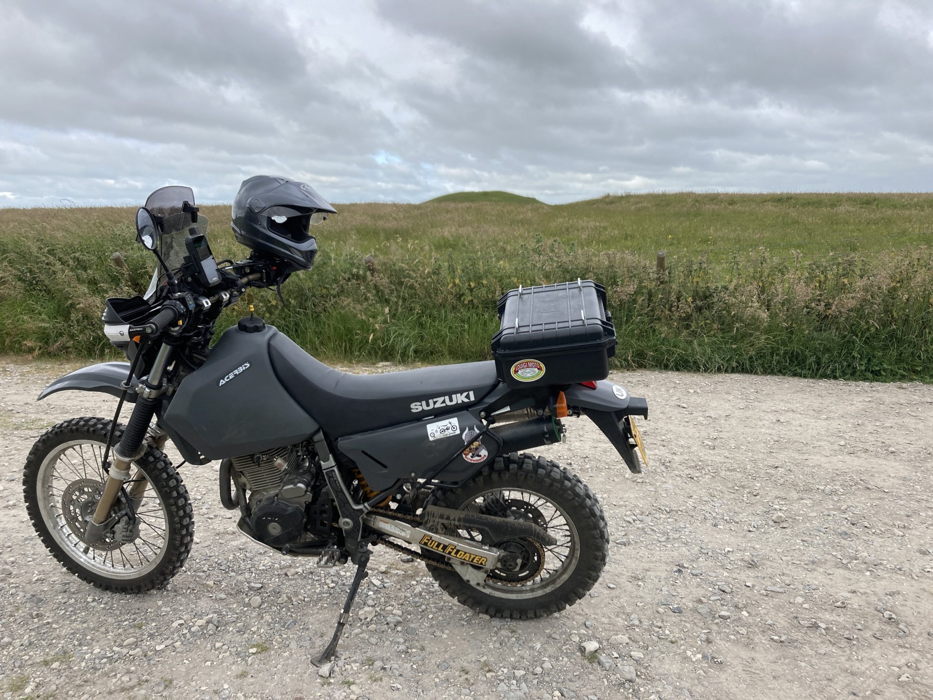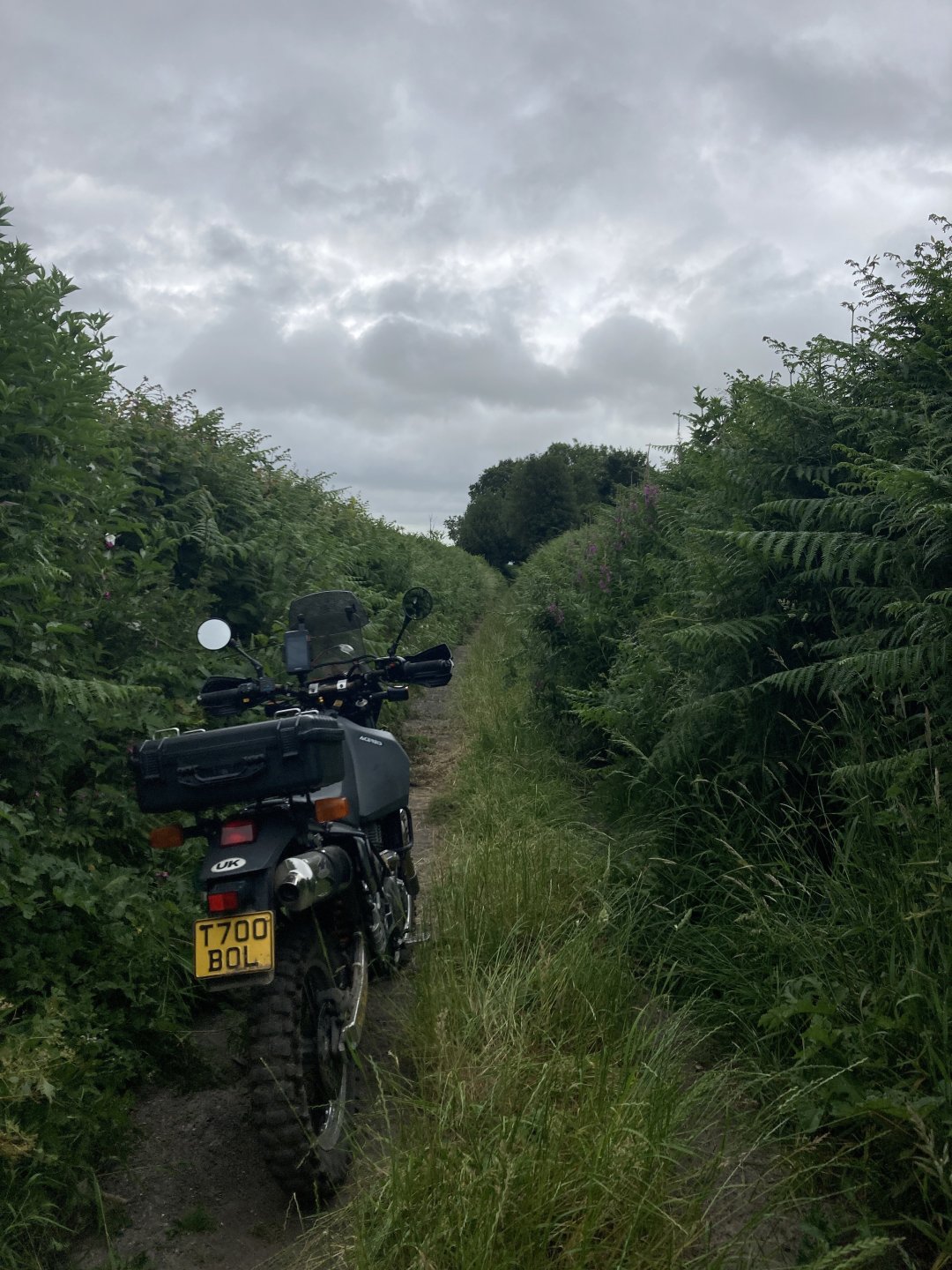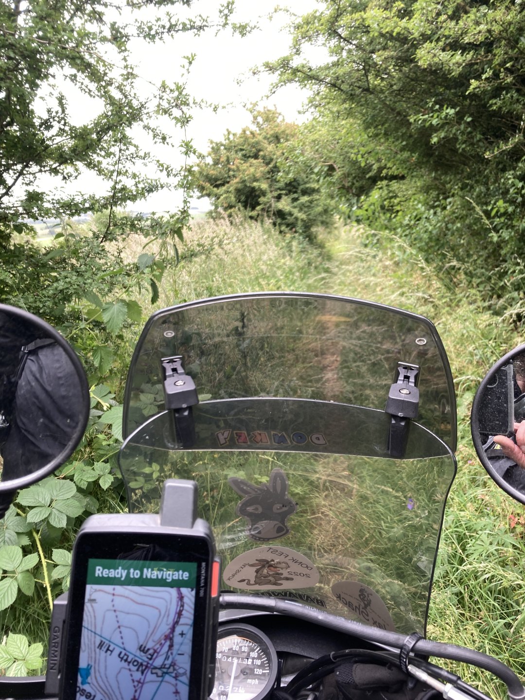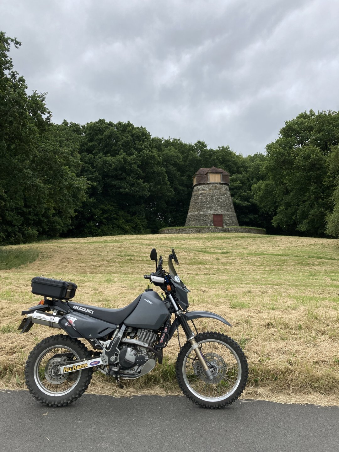 I was up early this morning and away by 7am . Took my usual route south until I got to the first lane near Gare Hill .............. It's that time of the year where a lot of the lanes are overgrown but I battled through it. Next I climbed up White Sheet Hill and stopped at the top to have a quick look at the round barrow .......... and then it was straight across the B3095 and across Mere Down ............... I dropped down through East Knoyle and came across an old windmill on the escarpment..................... The view from the windmill down over the hill.................... More overgrown stuff was taken on , I hate it when the ruts are hidden in the long grass After riding all along the ridge of the second part of White Sheet Hill I went up the lovely climb near the Fovant badges - https://en.wikipedia.org/wiki/Fovant_Badges and then rode on past the Salisbury racecourse ................... I rode around the back of Salisbury and up the Woodford Valley to get to the byway that leads to Stonehenge ............ Zoom in to see Stonehenge in the background................. I was planning on cutting across the Plain now but there was a big Army exercise going on so all routes were closed ................ So I changed my route and rode up the holloway at Potterne and then around the back of Devizes to head for home.......... It was a good day out all in all but I managed to snap the plunger that releases the lock on my prosthetic leg so I will have to get that sorted now. Also I've come to the conclusion that I need to let the DR650 go as it's just to tall for me now, it'll be a sad day when it goes but the WR250 is so much more manageable.5 points