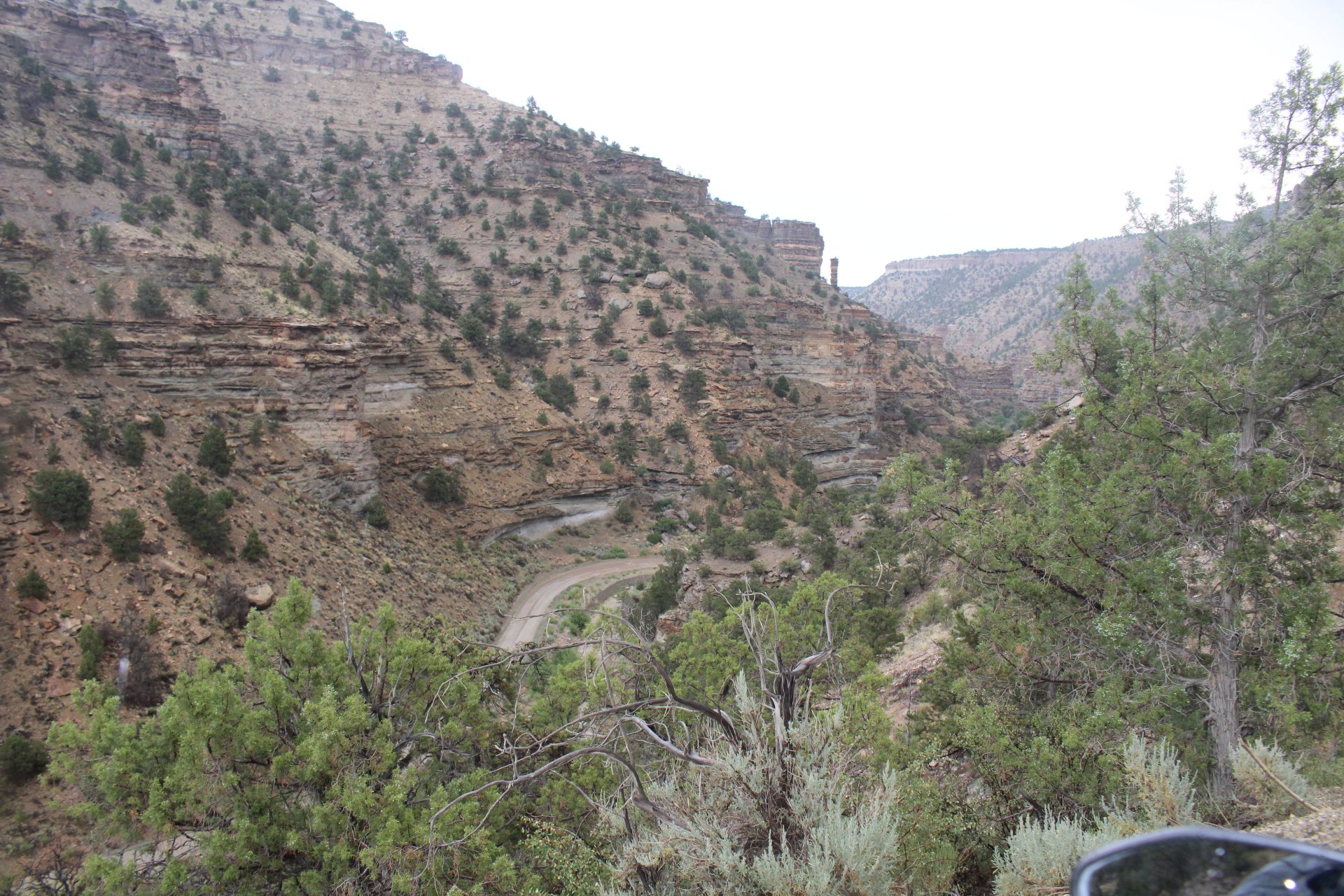 Similar ditches as you find in Morocco. I suppose that canyon has flash floods that just drag rocks that destroy small bridges, easier to have the water and debris pass over concrete and just clean it after. Same reason why in the flood areas you might have tarmac instead of a dirt road that washes out easier? That 45 mile long dirt road, that is the thing. That's just bliss!3 points
