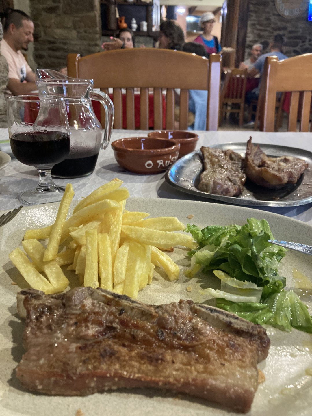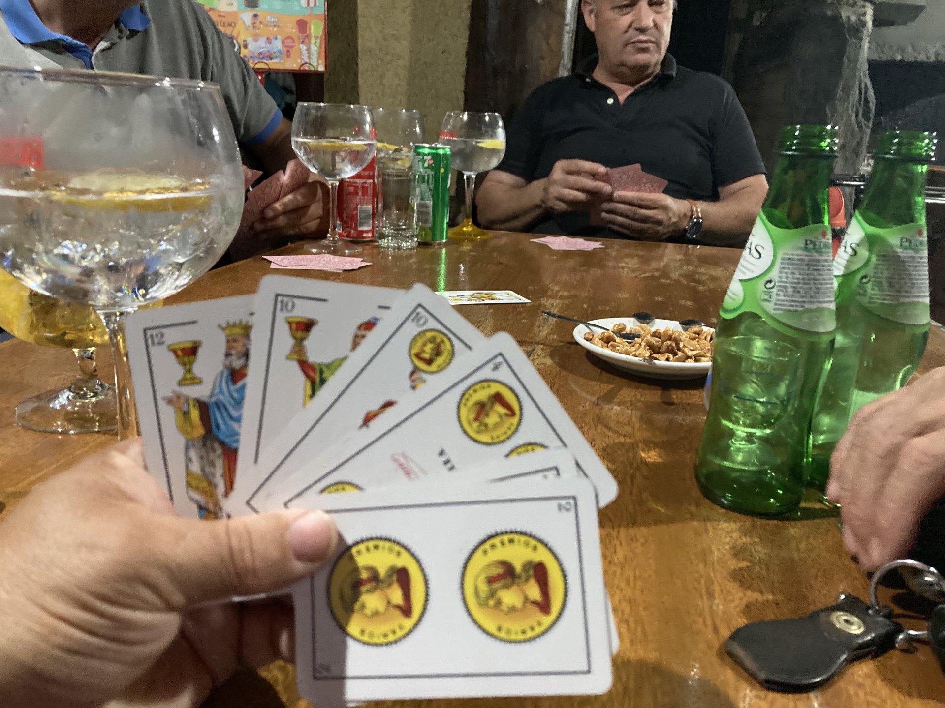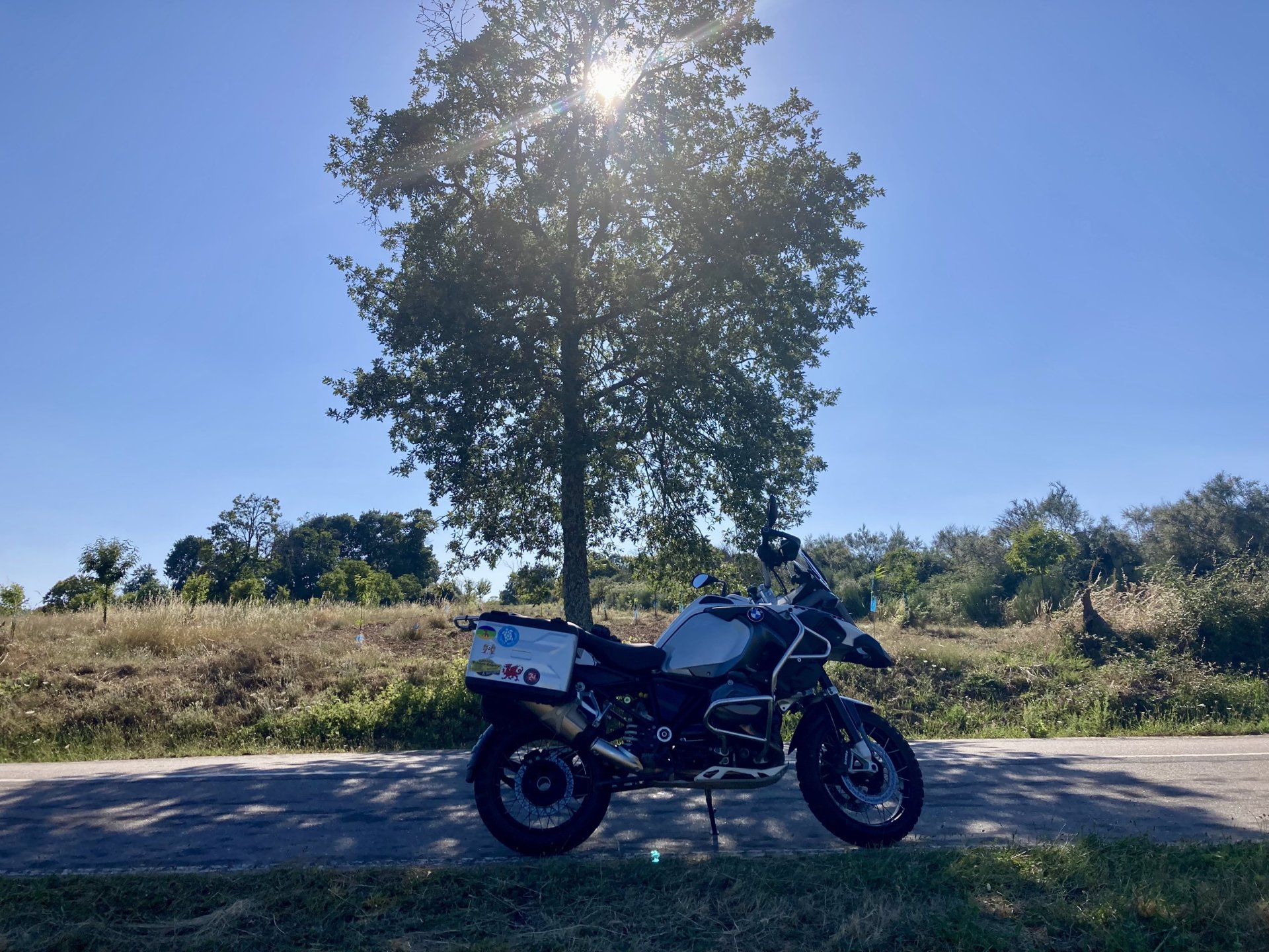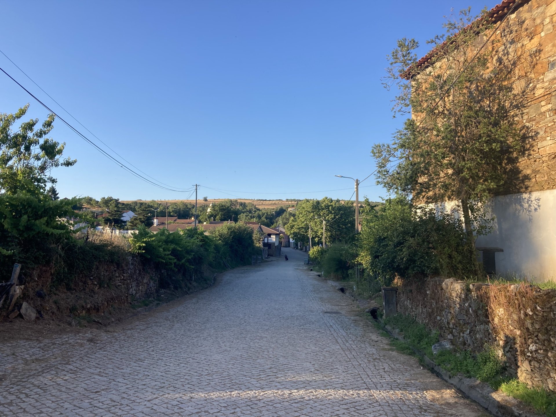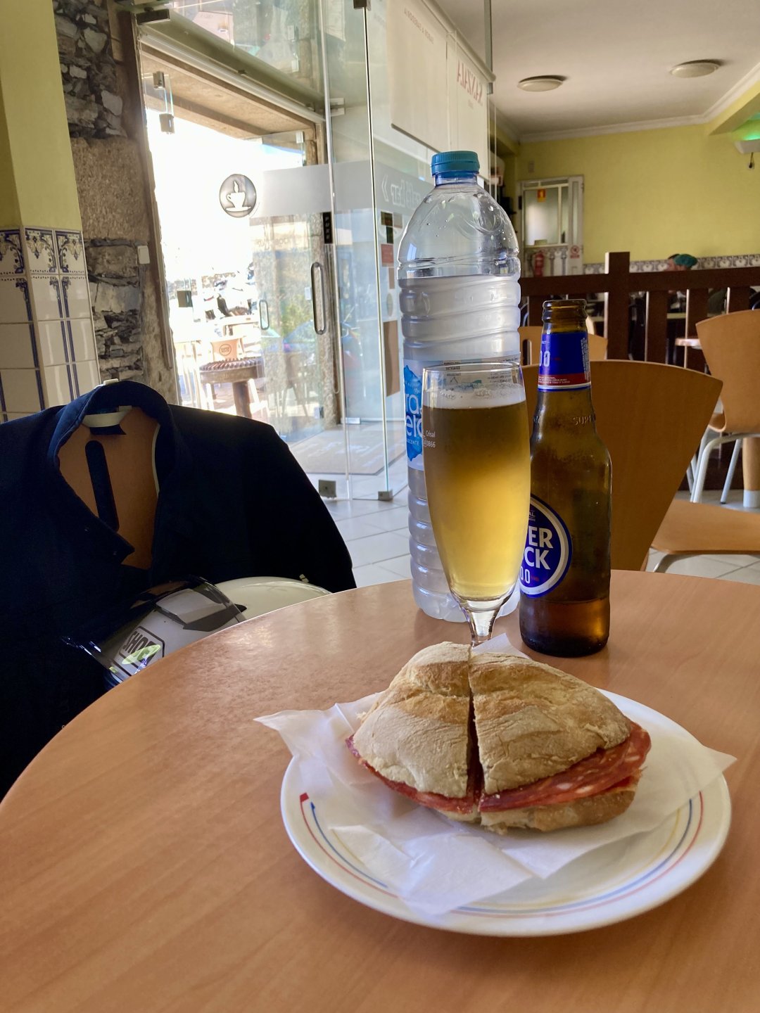I really felt like riding somewhere, I missed being on the bike, but had no real plan or destination that I felt like visiting. Called my friend that owns a small hotel and booked a room, at least now I had a destination and with my favourite restaurant next to it as a big bonus. It was supposed to be getting warm but I had no plans to do sightseeing so that wasn't bothering me much. I had some delays, and missed a little bit of the morning, it was almost 10 by the time I made it to the Douro riverside, stopped for a coffee. Rode up the Douro, temperature was perfect in the morning, around 25º, couldn't ask for better. Stopped for a phone call By midday I had gotten to around Regua and temperatures shot upwards of 30º, to then stay between 36 and 38 the rest of the day. The Douro valley absolutely cooks in the summer, and this area here is the hottest, also where the best wine is made so that climate probably works. Took some of my favourite small roads near the river, quite narrow so two cars really have to squeeze to pass each other. I regretted not bringing a snack from home, as this would have been a perfect lunch stop. I had decided to try to not look at my phone for navigation, to make it a little more challenging. I did end up in a couple of dead ends as some of these roads just lead to a small train stop by the river, but then again they are nice roads so doing them twice isn't a chore: At around 3PM, now overheated a little, so stopped for a snack in an air conditioned cafe. Just after the cafe starts a road I know well and found by chance a few years ago. It felt nice to put my now cool helmet and jacket, and walked back out to the 38º heat feeling refreshed. I took the tiny road away from the tourist route, I love this tiny road, shame it's not very long as I could ride it all day long. Continuing farther north, and now away from the river, the landscape changes A stop under some shade to drink what was now quite warm water, blergh! I think I'll try to find some thermal fleece I can use to carry water bottles. Bike safely tucked away for the night, in time for a cool shower and a little relaxation in the air conditioned room, I think I did around 500 or something kms with no navigation except to get out of Bragança (a big town) after fueling up, pretty happy with that. I had high hopes for dinner, but little did I know I would almost risk my life that night... a 20 minute walk to the restaurant, first through a small village, most people living here are of pretty advanced age even though they still work the land, now taking the cool evening to relax outside. I named it Pig McQueen, runaway pig making everyone chase him around the village, look in the distance in the street: Lovely meal, along with pretty chilled red wine because fuck the rules! After dinner, conversation was struck and a few of us stayed out enjoying the cool night and having a drink. Some played cards, and I was very surprised to learn that spanish cards are different, wtf? People might have gotten silly, and we even had magic performed: At a little past 1 I headed back, now taking a short route along a road, I noticed a car with high beams on coming from behind me, I looked back and only had a moment to jump out of the edge of the road onto the bushes. This was on the outside of a wide enough corner, but the driver was either drunk or asleep and the car had one wheel already out of tarmac and where I was walking. They didn't stop. Diving to the bushes scratched the shit out of my arm and hand, ripped my tshirt but I was happy to get to bed safe and sound, even though I just plucked a few more tiny thorns from my had just now, a day later. Blackberry bushes! My plan was to wake up early and get out while still cool outside. Staying up late the previous day and a very sore arm and neck caused that plan to completely fail as I sat down for breakfast at well past 9 I had a big day ahead, again trying to not look at navigation and just follow street signs, now in a part of Portugal I don't really find easy to navigate. First couple of hours were very easy as I know those roads quite well, quite fast and flowing, in contrast to the previous day. Stopped for some water in a very cool village near the Serra da Estrela, very old and built amongst huge boulders. Drinking warm water was appreciated, though. Another stop, now to check some emails. This town was very nice, looked great and tidy inside the castle walls too. I'll surely come back with more pleasant weather, as the heat was on full force now. From there to the top of Serra da Estrela was a breeze, in less than an hour and we're at the tallest place in mainland Portugal, temperature there was very enjoyable at 22º, provided some brief relief. The road climbing from Gouveia up is just great, so I didn't stop and took it in a nice rhythm. At the top and on the other side: No more pictures, from there on there was another 4 or 5 hours to get home. Stopped for fuel at a nice gas station with very friendly staff, and sat down enjoying their AC and a bottle of very cold water for a while. I almost didn't want to leave. I hope it'll cool a little over the next days, so that I can at least enjoy a short ride or two from my place. Today was another 600km, that's the sort of distance @Earache does before breakfast and it took me most of the day8 points