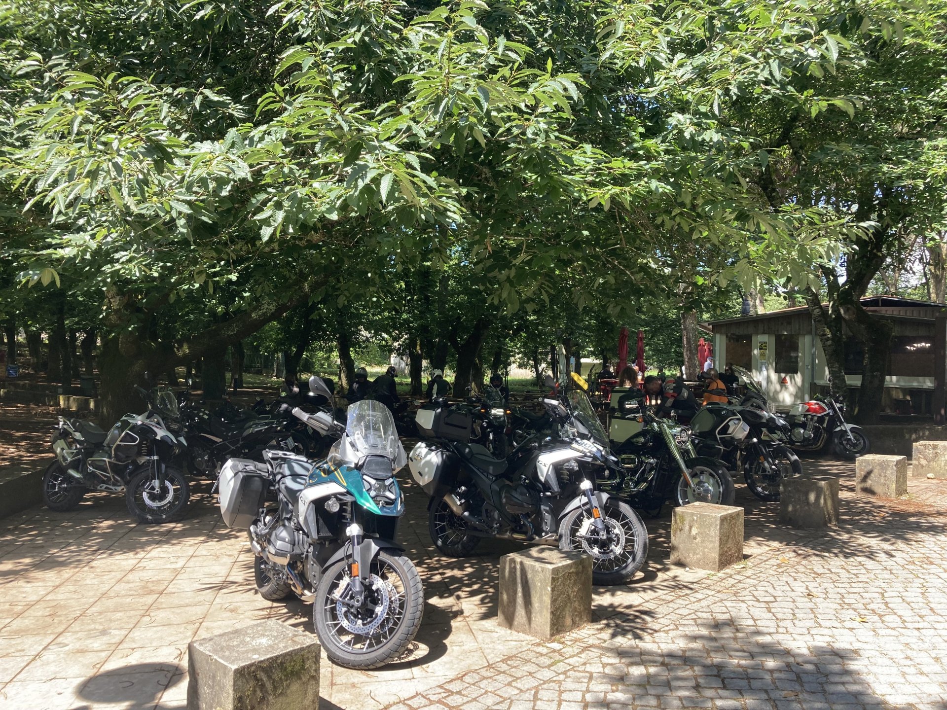 It's a lovely day here. Perfect morning, riding in this weather is bliss and happy times on a motorcycle, 22º in the morning, 28º now. A few cool and interesting bikes there like that CB1300 in the distance and a Guzzi with stickers from all over, but I just took this picture. I really do not fancy those new 1300 BMWs A nice hour on the bike, chatting with Dani over a burguer, now relaxing, Sofia might come by for dinner, maybe one of the most perfect days in a while. Tomorrow the heat comes back and I'll boil.2 points