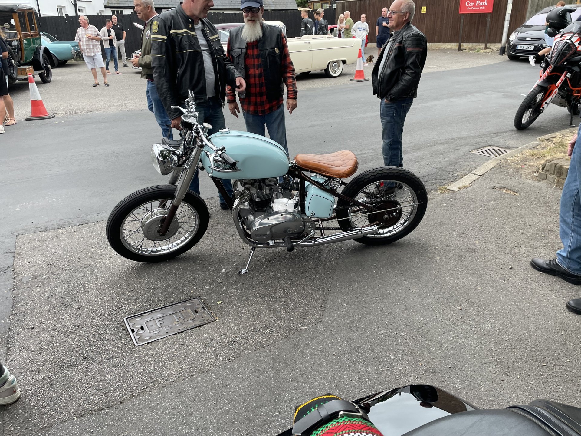 Popped up to Liskeard for chequered flag bike night. Only stayed long enough for a coffee and a quick. Chat only about 15 bikes when we were there but more were pulling in as we left. Couple of Vicars turned up with big white crucifixes on their backs. Load of women from Plymouth behaving like arseholes all drama and fuss. Few normal guys but don’t know if I will bother again. Of course no show without punch performing Nice Panzer, I like that, especially that it is single seated Cool blade, but had to explain to Shadow it was a Honda not a Repsol. Fantic 700 Vicars ADV750 scoot CBR 650, I could see one of those in Shadow’s future I didn’t mind the red VFR. The hands are Shadows, she was sticking with me and dancing, her ADHD was kicking in because of the noise. When the biker chicks turned up with their pantomime I took Shadow home as their carry on spiked her anxiety and she got really stressed. Not used to adults behaving like that.3 points