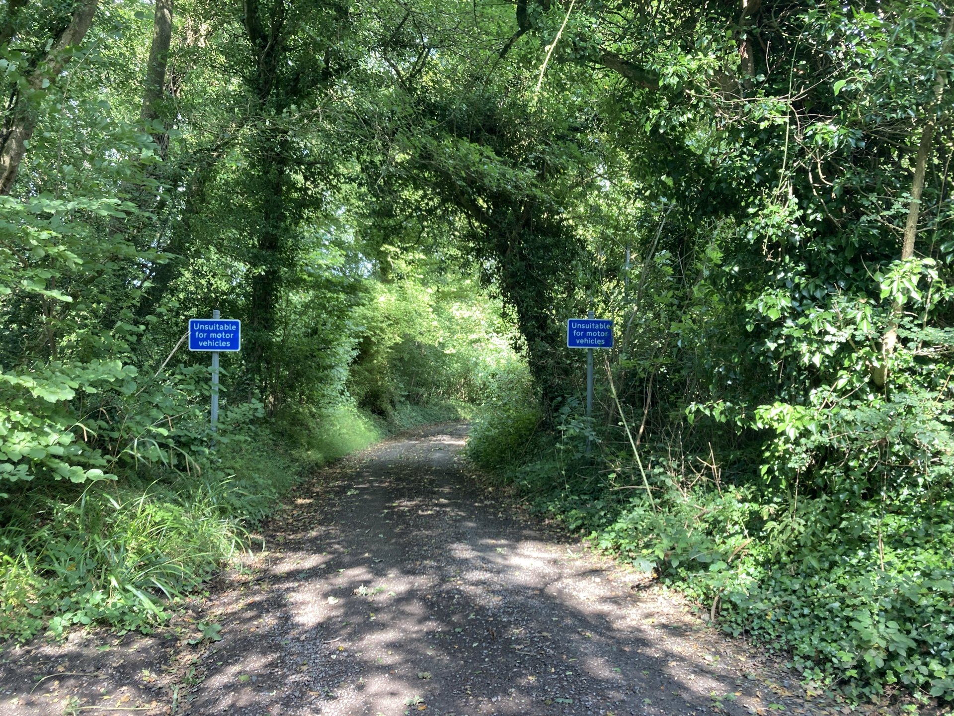 I had a chance to get out on the WR250 today and I was keen to see what the front suspension was like now. I didn't get away until 11.00 am so I decided to do the local lanes starting at Keynsham. The first lane is always a good test as you ride uphill over baby-head size rocks ............. First test passed and on we go to some more lanes nearby .............. On Featherbed lane I noticed some new signposts, I'm pretty sure peeps have been trying to cut through here by following their sat navs to avoid queues on the A37,,,,,,,,,4 points