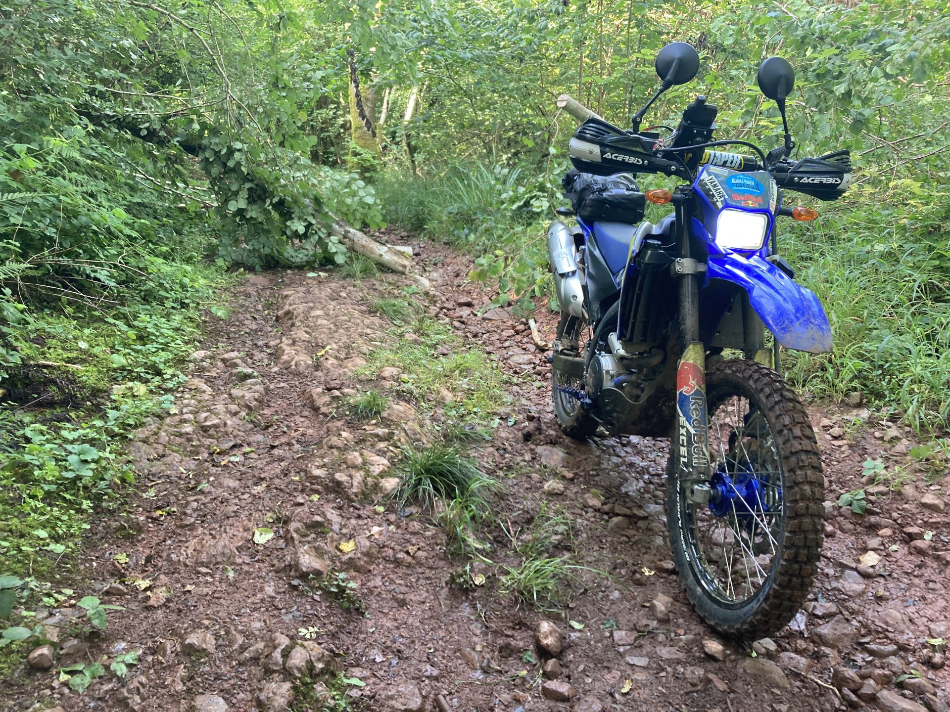 You really don't want to carry on down that lane through this in your Ford Fiesta............. A few more lanes were done in lovely weather if a bit breezy ............. When I got to Ubley Drove there were a couple of guys on CRF Rally's who were sawing a tree that was blocking the lane ............. I rode on up to the top and then came back down again to get to Harptree where a stopped for a pint ...............4 points