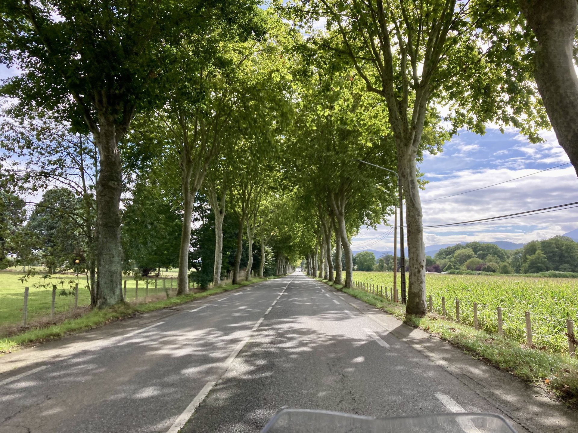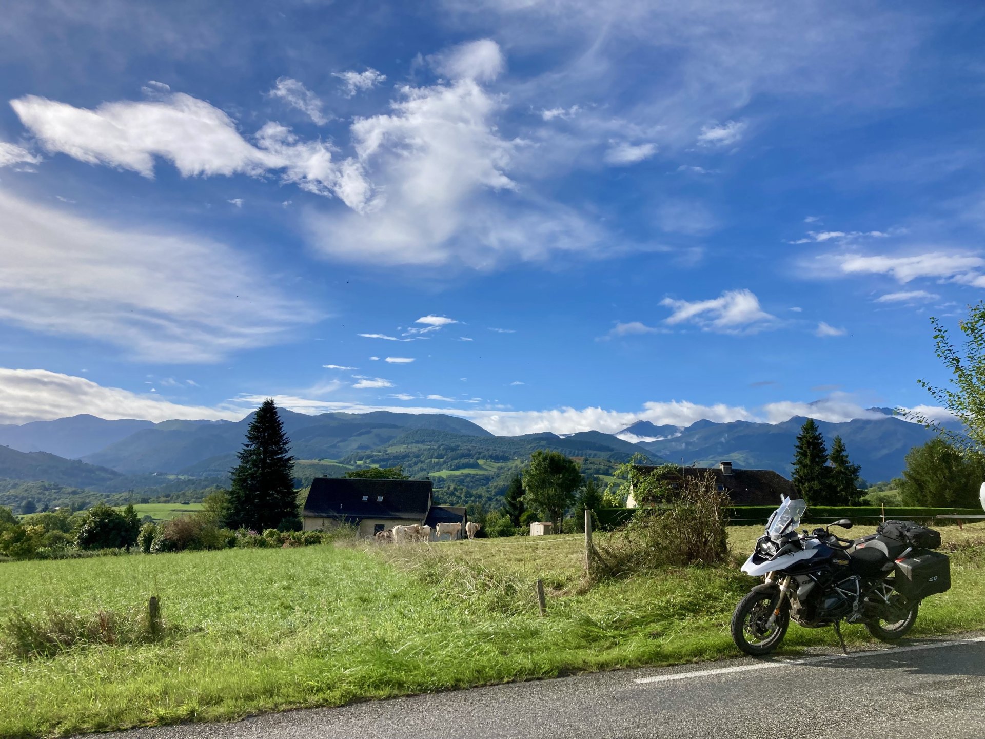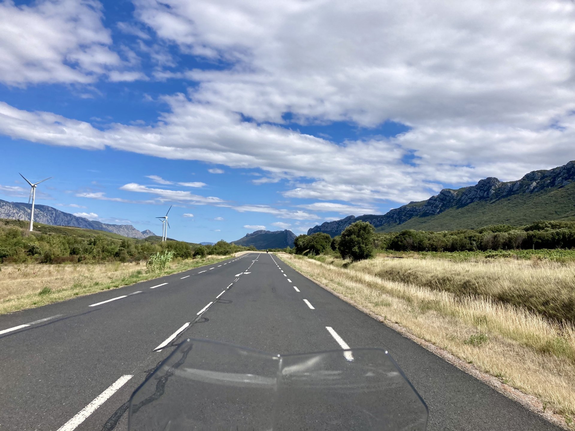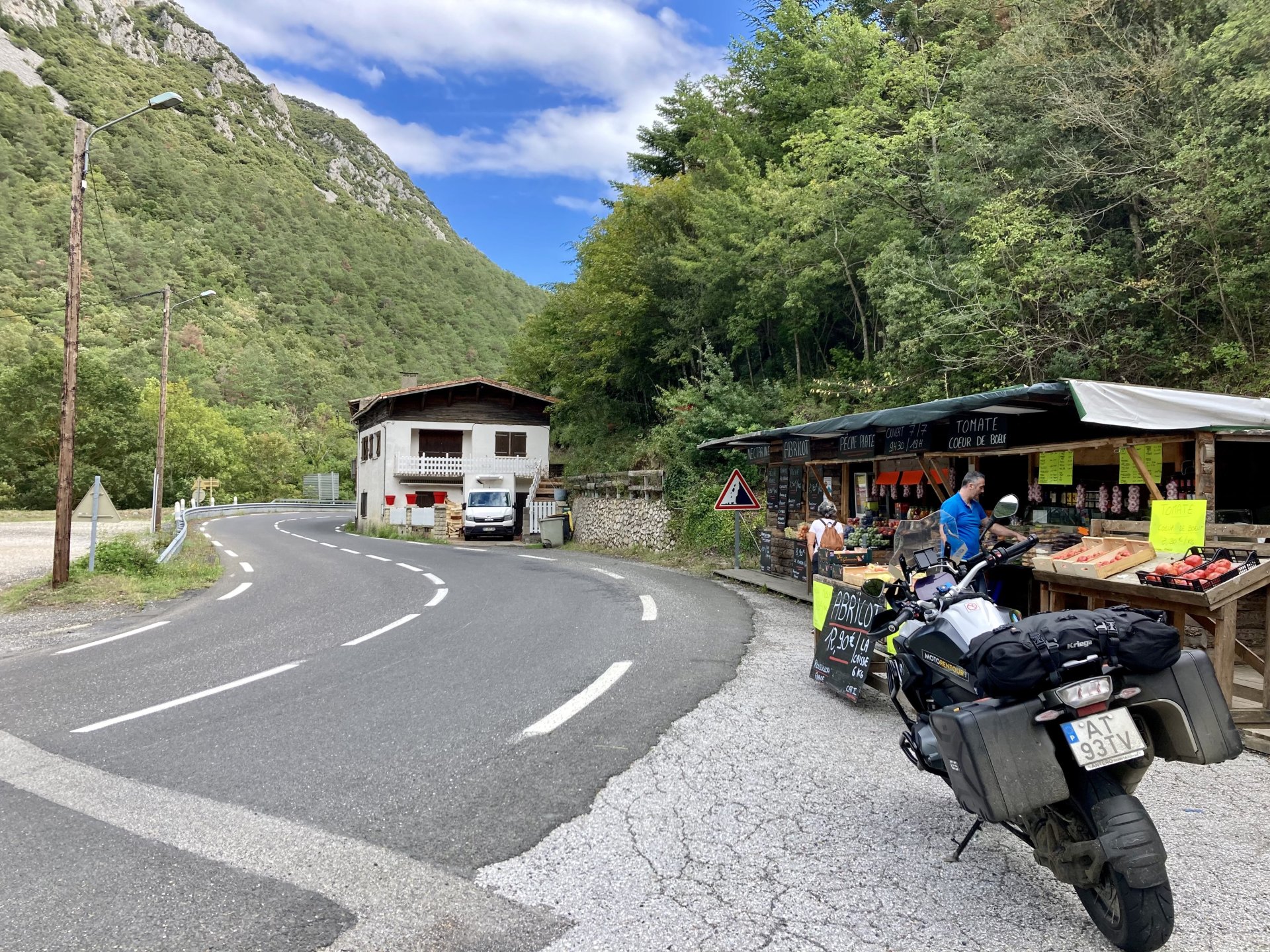 Woke up to a pleasantly cold but dry morning, put the luggage on the bike and made my way to the breakfast table, I needed a coffee and nothing else after the previous night's excesses. One of the Belgium madames was not having it and with a very stern look and a "non non non, monseur il aurait le petit croissant" put a croissant in front of me, so I had a croissant Left late, and was on the road at maybe 10. The next two hours would be some of the most bucolic simple beauty roads I have ever been on. Little traffic, perfect tarmac, blue skies replacing clouds, and green views. I left Lourdes heading east. And the Pyrenees behind me: Half an hour to 45 minutes into it, I stopped to look at a pretty castle, Chateau de Mauvezin. I didn't bother to go in as I wanted to make some progress today, while still spending the morning and some of the afternoon riding on small roads. Couldn't get more French than this. Stopped at Quillan to buy some water, and to see if there was a coffee to be had, but I think this is currently a sad town. Following the hint from @Tango in one of his ride reports, I was headed to the Gorges de Galamus, first riding on some main roads, quite wide to get there. They were quite the biker destination as several bikes were racing back and forth on the same bit of road. I took the hind and didn't pay much attention to speed limits either. Stopped to buy lunch, a peach and a few nuts, from a roadside vendor. Made some progress on a more or less open road And eventually rode through the Gorges de Galamus, the road is just lovely if just a little distance, but it was packed with hikers. Still interesting and I did enjoy it. Having approached the Mediterranean, the bad weather was definitely behind me and it was now hot. I stopped for a late lunch on the shade of a tree, had my peach and nuts, and decided on what to do next. It was now almost 16:00 and I still had some way to go before Carcassone, my stay for the next day would be in Milan. I could split it in two average journeys, or decide to do two proper days with a little bit of epic in between. I chose the second option as this was a biking holiday and I didn't feel like hanging around. Since @Tango knew I was riding near his home he had packed his things and ran away with the wife, far away where I couldn´t have a chance of meeting them, so I pointed the bike to Nice and hopped on a motorway, rode for a few hours with nothing but a stop to fuel and arrange accommodation, the 28º/29º warmth was welcomed after the previous two days weather. I made it to Vence, on the outskirts of Nice, by almost 22:00. Restaurants were closed so before I checked into one of the cheapest options in the area, I had a nice street pizza. For something made in the back of a truck, it turned out very nice. The hotel was old and seemed like a moroccan hotel of the kind that hasn't seen maintenance in 30 years, but the lady at the reception desk was lovely and had reserved me a little corner of the secure parking. Was a little tired, so after a shower I slept nicely with the window open.4 points