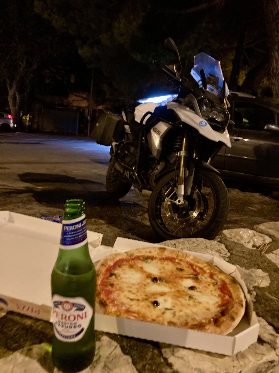The next morning I had to wait until the reception was open to check in properly and pay, and I had underestimated how long it would take me to get to Nice proper since Vence. All roads had some sort of construction and traffic was a little much, which delayed things, but at almost 10:00 I was exiting Nice. I love Nice, it would have been a pleasure to hang out around the old part of town having a coffee and people watching, but I was going to Milan via del Via del Sale, and wanted to make it there earlyish. A picture not making Nice justice: The plan was to exit Nice, ride through Monaco and into Italy, and then up to the mountains to then properly enter Italy. I didn't feel like breakfast but could not do without a morning espresso, so stopped at a very touristy viewpoint for one: It was nice to be there for 10 or 15 minutes, but then two busses unloaded a mass of tourists and it turned into this: Second but brought a very familiar noise, Spanish tourists but this time mixed with Japanese ones, and the excitement just became too much, so I carried on The road wasn't inspiring, and there was too much slow traffic, but the views are quite pretty in a James Bond / Monaco sort of way. Monaco was gridlock, I decided to avoid the center and the picture by the marina, instead you have this, with ugly building and construction crane for authenticity. Menton, east of Monaco, a little less pompous and less Bentleys, felt nicer. And just like that, I crossed into Italy, here's looking back at the border in a brief stop to set up navigation. If I had another day, it might have been nice to stay in Ventimiglia and go for a swim in the Mediterranean. Since I didn't have much time, I pointed the GS north and heading to the Col de Tenda, up to near Limone Piemonte, stopped to fuel up and buy a sandwich for the road, and cracked on. The shabby Fiat Panda 100 with part of the back bumper missing took the place of the Monaco luxury cars and announced this was now Italy. I liked it Col di Tenda and it's tunnel were closed, which considering the tone of the trip didn't come as a surprise to me, so went around also via a sort of broken tarmac / gravel road, leading up to near enough the same area, this time stopping for a break and the sandwich as I didn't want to get into off-roading without eating anything before. I don´t know what kind of cheese the Italian lady put inside my sandwich, but it was horrible. Also there was no tomato or olive oil in there, I had been duped The Alps, and my first view of them this trip. The road tires handled the quite dry dirt roads with ease, a little less confidence inspiring than the Mitas I'm used to but nice enough. I had called ahead to ask if the heavy rains they had in the previous days had made the road difficult, the dude at the reception told me I'd be ok, but now, parked next to the Beta he uses to commute to work I questioned myself if his opinion was adequate for myself. Nice snow stuff! Stopped for the red light for a bit, and tried to adjust the handlebars. Partly, the reason this bike feels more relaxed than mine on the motorway is the handlebars turned all the way back. However, for standing up I found them too back and too low, made for a very uncomfortable position after a while. Tried to adjust them but I had placed the quad lock holder slightly in front of the handlebar nuts, and since I had no tool for that I was stuck with it. No worries as it would probably be all downhill anyway. I didn't stop at the most impressive rocky bits because on account of a little over excitement I was now crossing people coming the other way. Did stop by a dude on a very cool Marlboro colored R80 HPN, by the famous rocky switchback, to warn him about the G Class which was a few minutes behind me, and he properly laughed from the top of his Michelin Desert's when he looked at the rubber equipping my GS It was very foggy on the other side of the mountain, so the views suffered, but at least it wasn't muddy. After the most spectacular part of it, it got muddy Obviously pictures don´t do it justice, but it got a little slimey as I got down and into the forrest roads. With proper soil instead of rock dust, the rains had made it a little slippery. Had a few very slow sideways moments, and had no courage to stop and take pictures of that as I felt that since that was a little uphill, I doubted I would have been able to regain motion from a standstill. Mitas Touring Force, aproved! This poor bike: After the muddy 15 or 20km, it was a pleasure to be back on a "road" Stopped at Bagnasco, to cool off, drink and eat something, and figure out a path to Milan. My boots and pants were disgusting now. 17:00, and I wasn't particularly in a hurry since I would have dinner by myself in Milan. I did half the distance in smaller but still adequate for progress roads, and then hopped on the motorway for the last 100 or so km. Made it to Milan at 20:00, and stopped right in front of the apartment where I would stay for the next three nights, right on the restaurant and bar part of town. I liked that on the same day I had come from the Mediterranean, did mountain roads, a little bit of off-road and arrived to a fancy part of a cosmopolitan city. The bike didn't stay in the street, though, as I had reserved the only place in town (within my budget) that came with a garage. I wish I had had my bike with me, it would have made the off-road bits a lot more fun. Stayed inside a classic old school Milan building, quite cool. Bike parked, all showered and laundry thrown in the machine, and off I went for a proper pizza in the Neapolitan restaurant across the street. All to myself, I wandered a little bit to check out the night scene. It's scooter and too-case central here, and I loved how the busiest bars all had tens of them parked in all directions around them. Wanted to take a picture featuring an MV Agusta parked with a helmet relaxedly left on it, but this plonker didn't move out of the way Sti