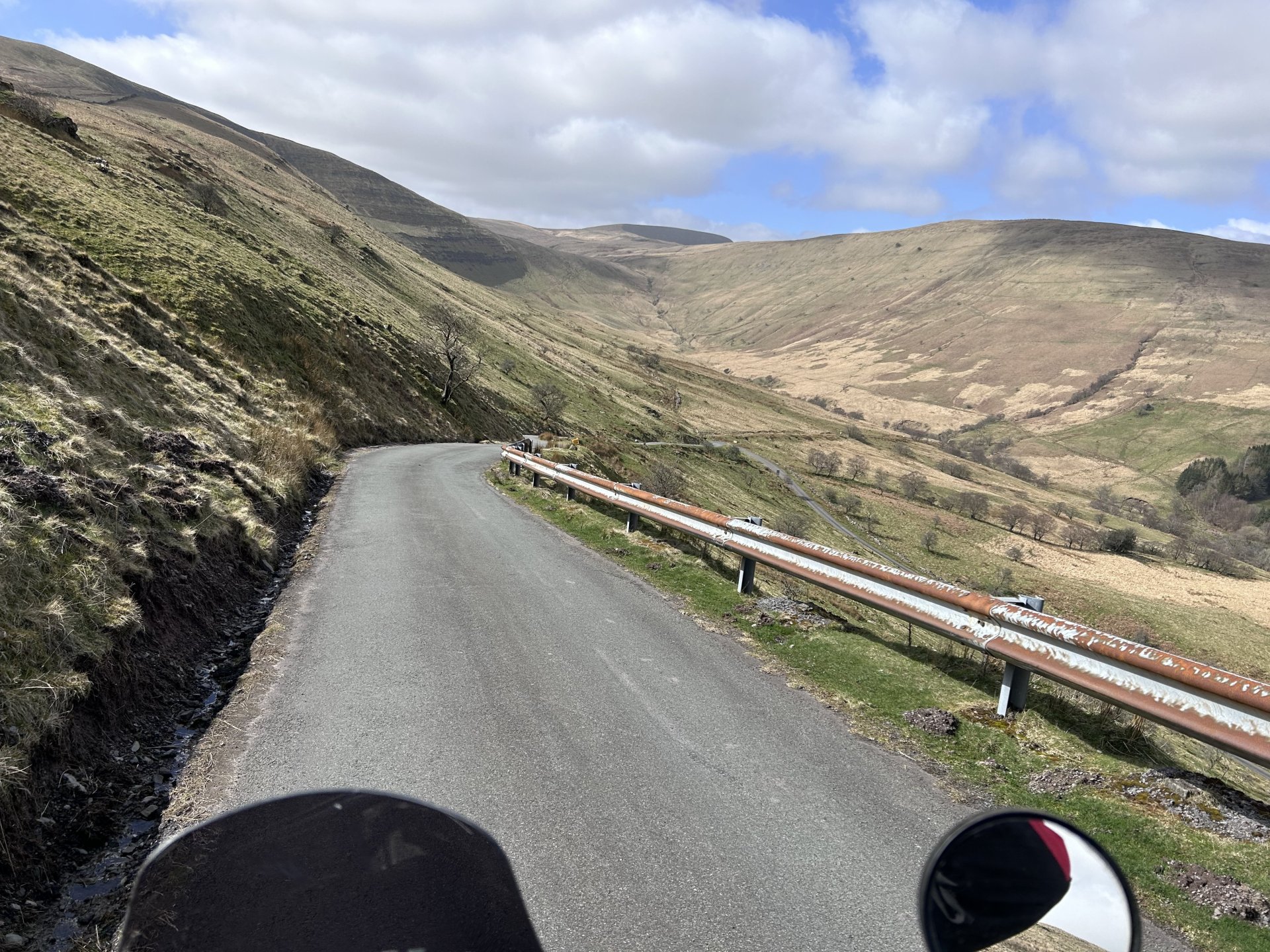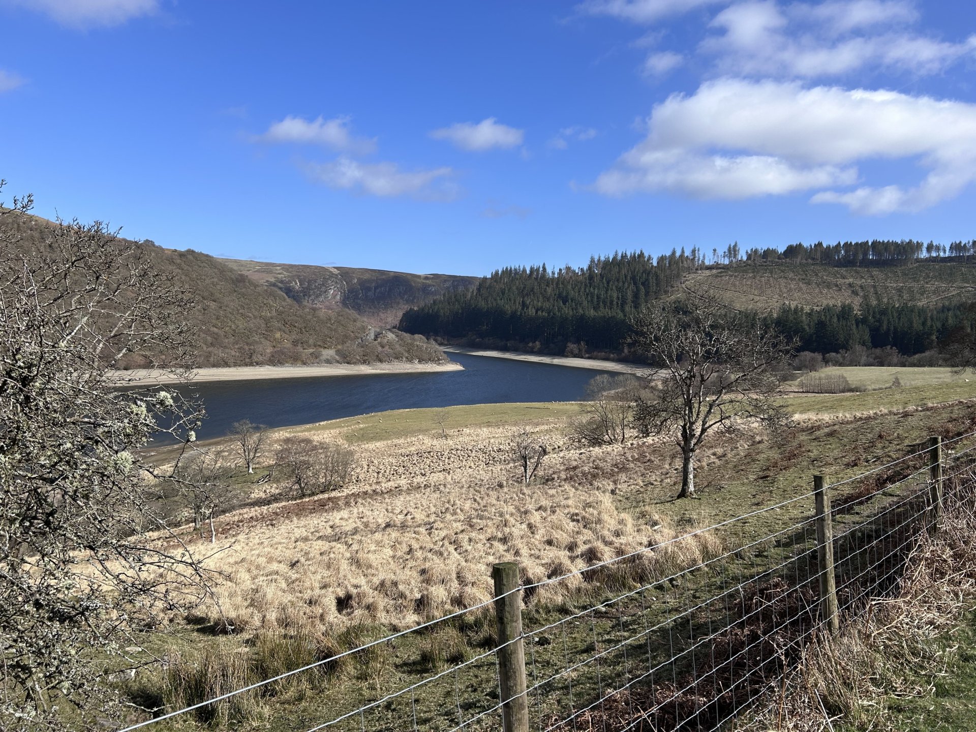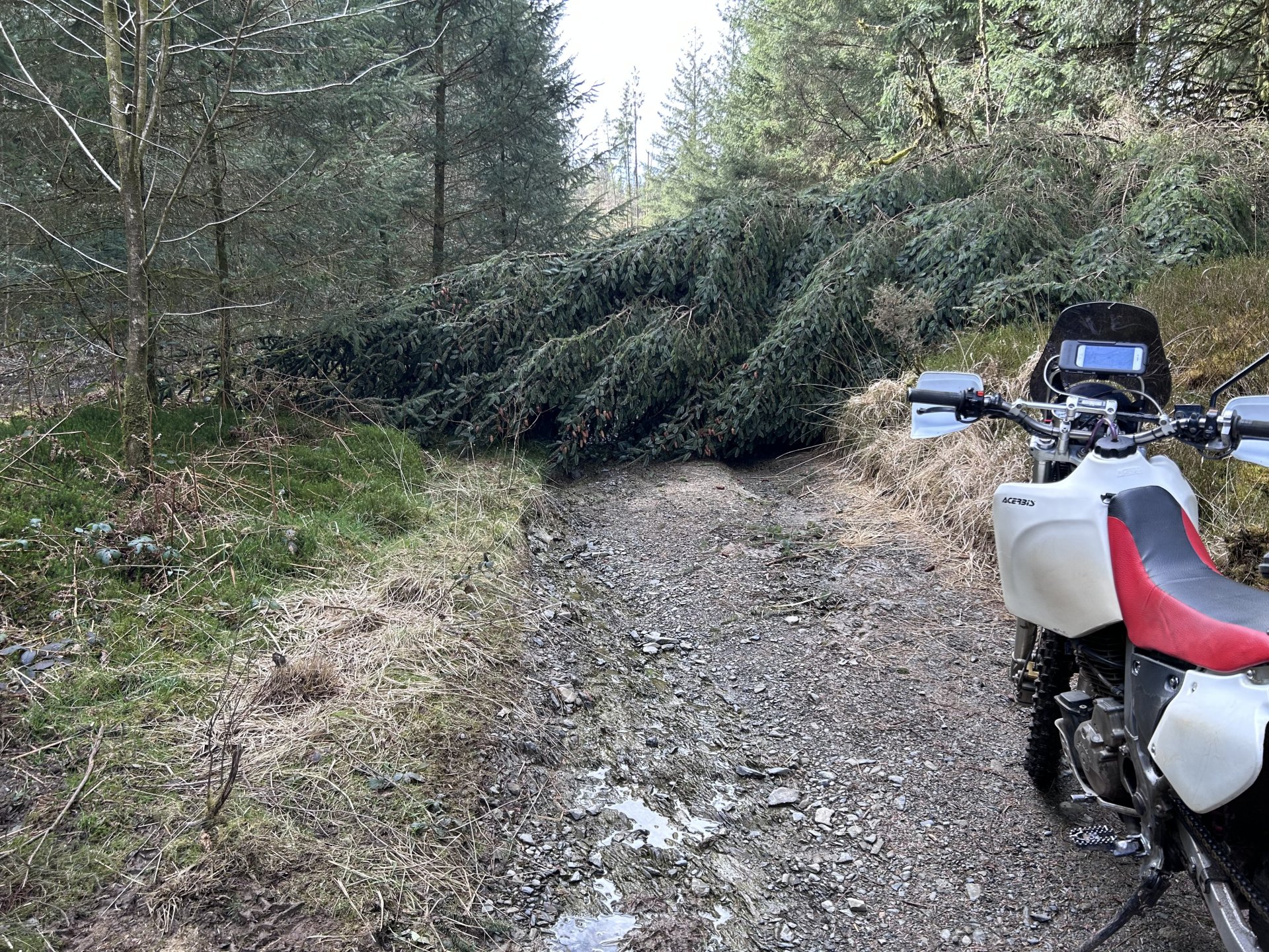 Had a run on the dog this afternoon, didn't have a destination in mind and after bumming about at the start i ended up in the Elan Valley, It was going to be a nice gentle back road ride, but as usual i couldn't resist the odd dirt track as i was passing Don't know why i decided to go up here i know what its like and it doesn't get better with time or easier with age Crychan Forest was still closed by fallen trees after the storms a few months ago Not getting through there in a hurry but luckily there was a forest road that i could use as a route around it This was a nice lane but way too many gates for the length of it And another tree down too big for the silky saw but easy enough to get around Water levels looking low in the reservoirs When i got to the dam i remembered they are changing a valve at the bottom of the dam and i think they are keeping the levels low to do it, i will be there to install and wire up the control panel for it sometime this year, a job i looked at about a year ago. And this was the last photo before heading home. 160 mile round trip this was my route1 point