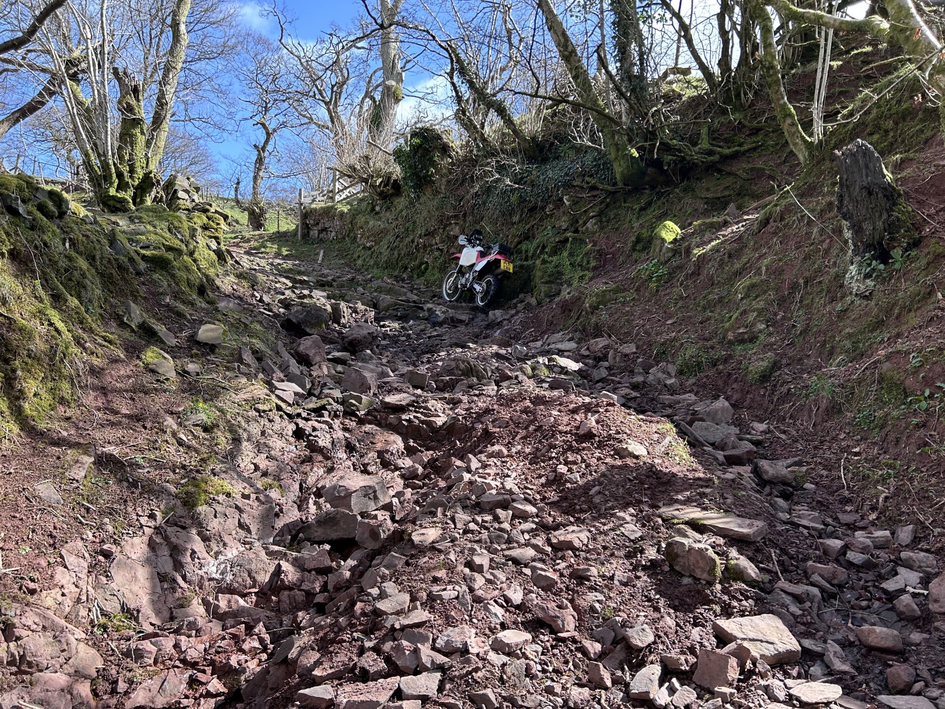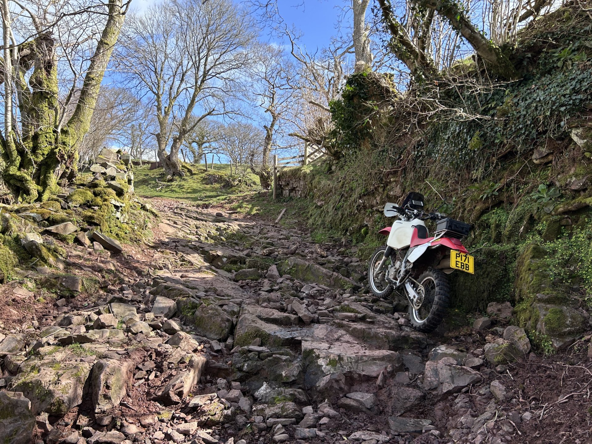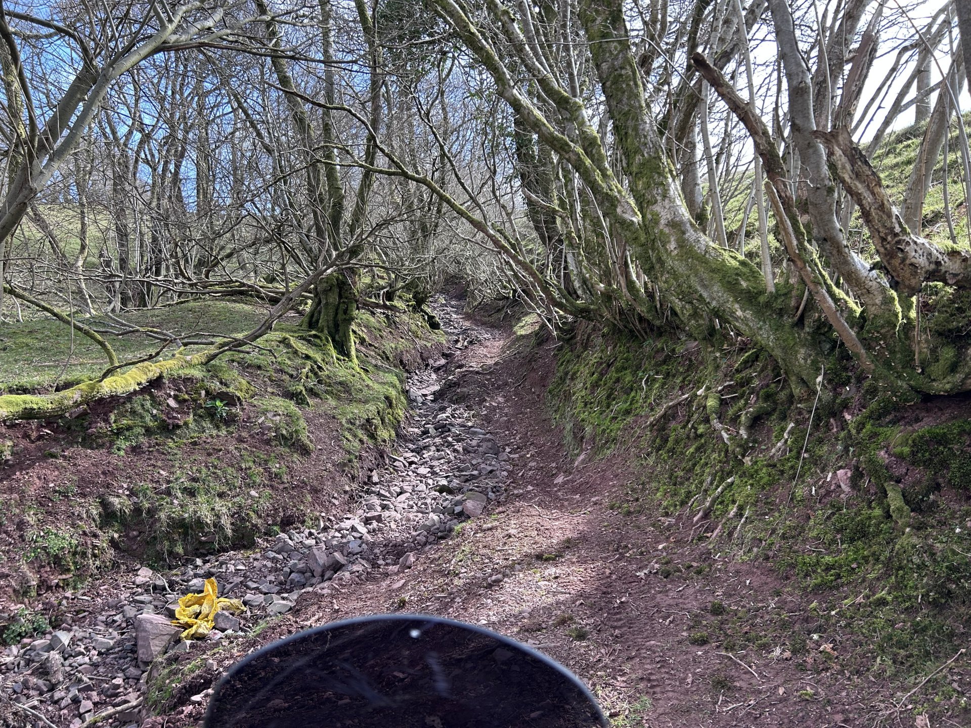 Had a run on the dog this afternoon, didn't have a destination in mind and after bumming about at the start i ended up in the Elan Valley, It was going to be a nice gentle back road ride, but as usual i couldn't resist the odd dirt track as i was passing Don't know why i decided to go up here i know what its like and it doesn't get better with time or easier with age Crychan Forest was still closed by fallen trees after the storms a few months ago Not getting through there in a hurry but luckily there was a forest road that i could use as a route around it This was a nice lane but way too many gates for the length of it And another tree down too big for the silky saw but easy enough to get around Water levels looking low in the reservoirs When i got to the dam i remembered they are changing a valve at the bottom of the dam and i think they are keeping the levels low to do it, i will be there to install and wire up the control panel for it sometime this year, a job i looked at about a year ago. And this was the last photo before heading home. 160 mile round trip this was my route1 point