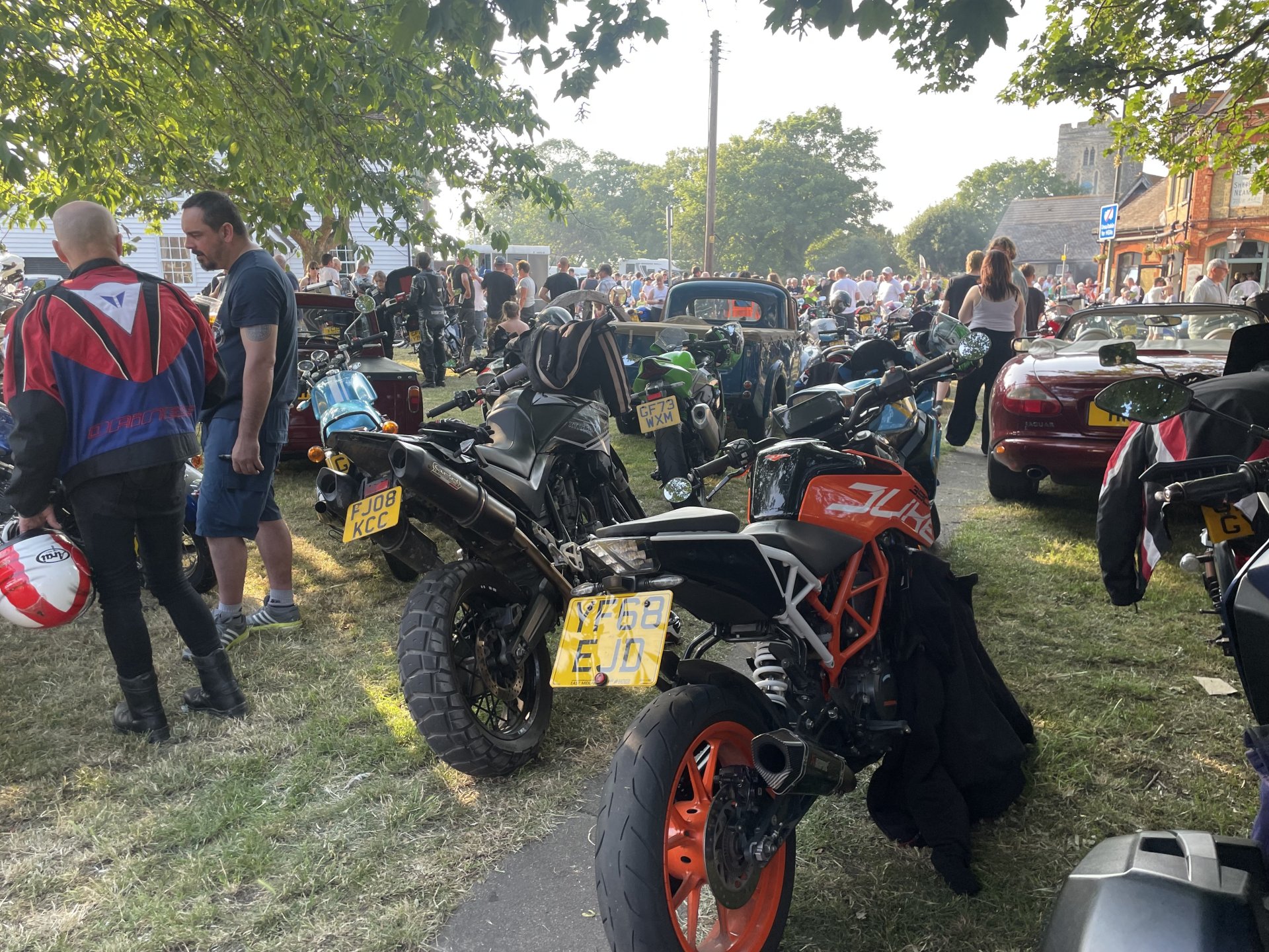 I did a 150 mile round trip to go see my mum. I was melting on the way back & had to go cool down in a nice air conditioned gas station. I bloody hate the heat. Did see a few people riding in shorts and a tee shirts, no gloves.1 point