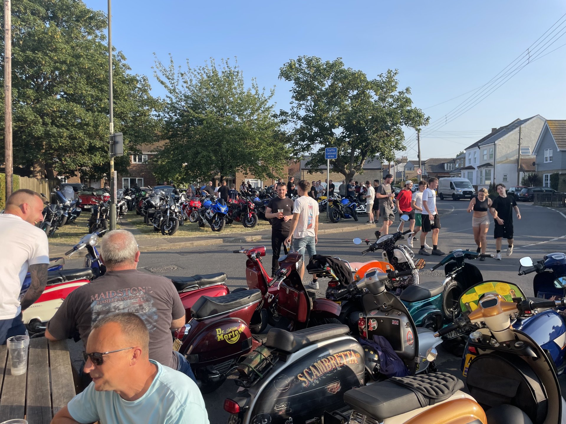 I headed down to Newport now to go and have a gander at Wildcat Scooters. It was a fail as it wasn't open ........... As it was so hot now it was time for some refreshment , so I stopped at a pub in Caldicot ........... I then had a brief look at Caldicot castle................. I needed to fill up twice during the ride so it's probably a little bit thirsty (aren't all 2-strokes) and don't even ask about the faff with the pre-mix oil but all things considered this is a great little summer ride pop pop1 point