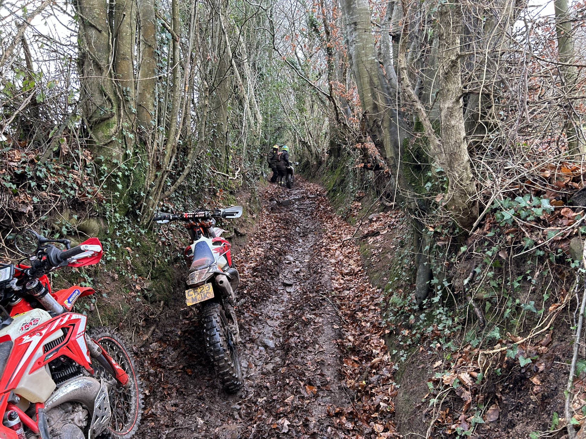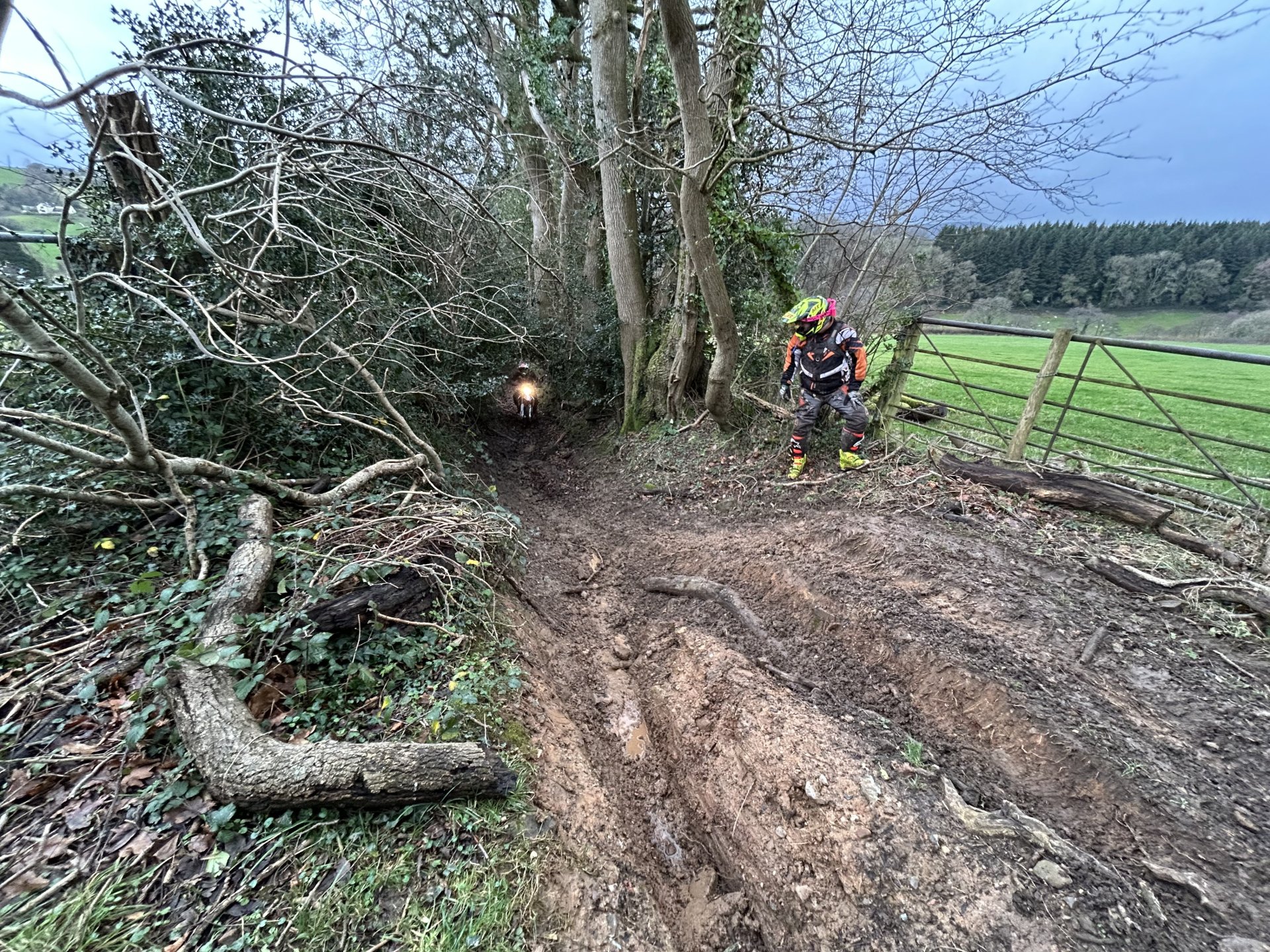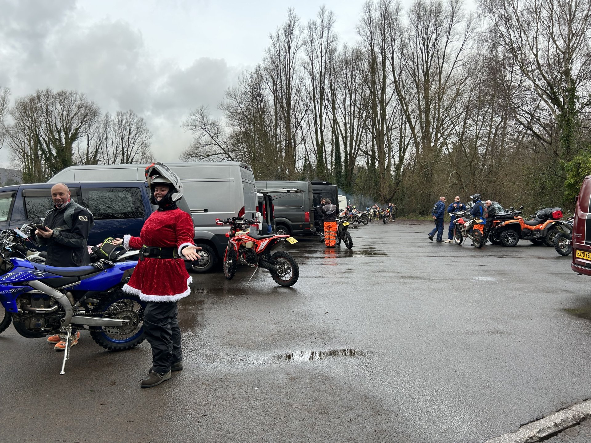Was the name of this years TRF Christmas trail ride and someone much better than me at photoshop came up with this for the header photo The day was starting from Abergavenny, so the bike and gear went in the marmite wagon last night ready for the off at 08:00 this morning just as i was gong through the door i realised i hadn't put in my bike trousers so after a quick visit to the garage i was on my way. 51 bodies had signed up for the ride and then split into groups of between 7 to 9 members and given routes with varying levels of difficulty. The group names were Chick Chasers , Sleigh riders, Mincing Spies, Tree Fairies, Frank Incensed, Myrrh and Tinsel Troupe. I was assigned to Frank Incensed group who were one of the smaller groups at seven and a harder route of around 70 miles so that suited me fine. Some of the members at the meeting point, Kim was the only one to dress for the occasion she said it looked nothing like that when she got back lol This was our route there were a number of different routes and some groups had the same route but would ride in opposite directions to keep the numbers down. I like riding this area as the lanes can be difficult and there are not many gates to open and close The ride leader kept up a good steady pace throughout the ride and with no navigation mistakes so i only had a chance to take photos when someone was stuck or we were waiting for others to catch up , The first of the lanes summed up the rest of the ride they were slippery muddy and very wet in places The hold up ahead was someone having to have their bike picked up of them i was a bit slow getting the camera out i need a go pro LOL We had to negotiate a few fallen trees on route due to the recent weather And some twat of a farmer deliberately blocking the road, he had the bucket of the machine close to the tracks it was tight but we all got though. Things never look difficult in the photos The Frank Incensed group Waiting again, one of the guys was falling off regular and as the ride went on it was getting noticeably more frequent we found out he only got into trail riding a few months ago so was understandable and to be fair was doing well I had a walk back down the lane to see what was going on and here they come It was harder to walk back up to the bike than ride up This was the last photo i took and was the last lane the lad that was falling off done as he decided to head back to the vans as he was fucked and the next few lanes were quite difficult We missed out the last two lanes on the route as it had got dark when we got back to the vans the yellow weather warning arrived i had just finished loading when it hammered down. The bike is and gear is going to have to wait until tomorrow for a wash now The jackets not too bad But i think i'll need a shovel to clear the pavement after i wash the bike off Still waiting to hear how the other groups got off and i think there might be some videos of todays ride turning up later Got to say a great end of year ride i must get out more often next year i think10 points