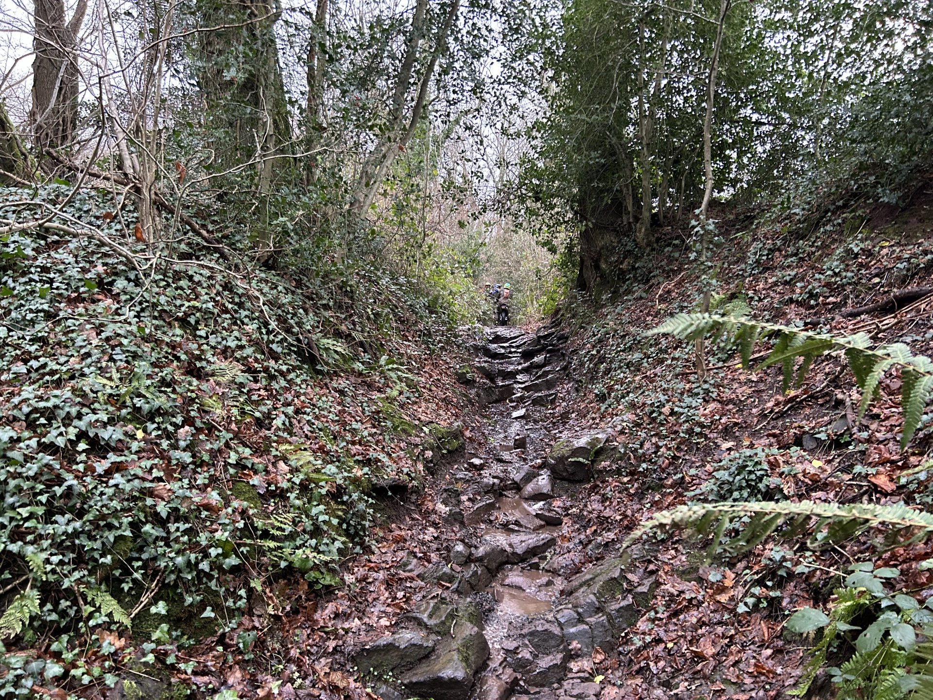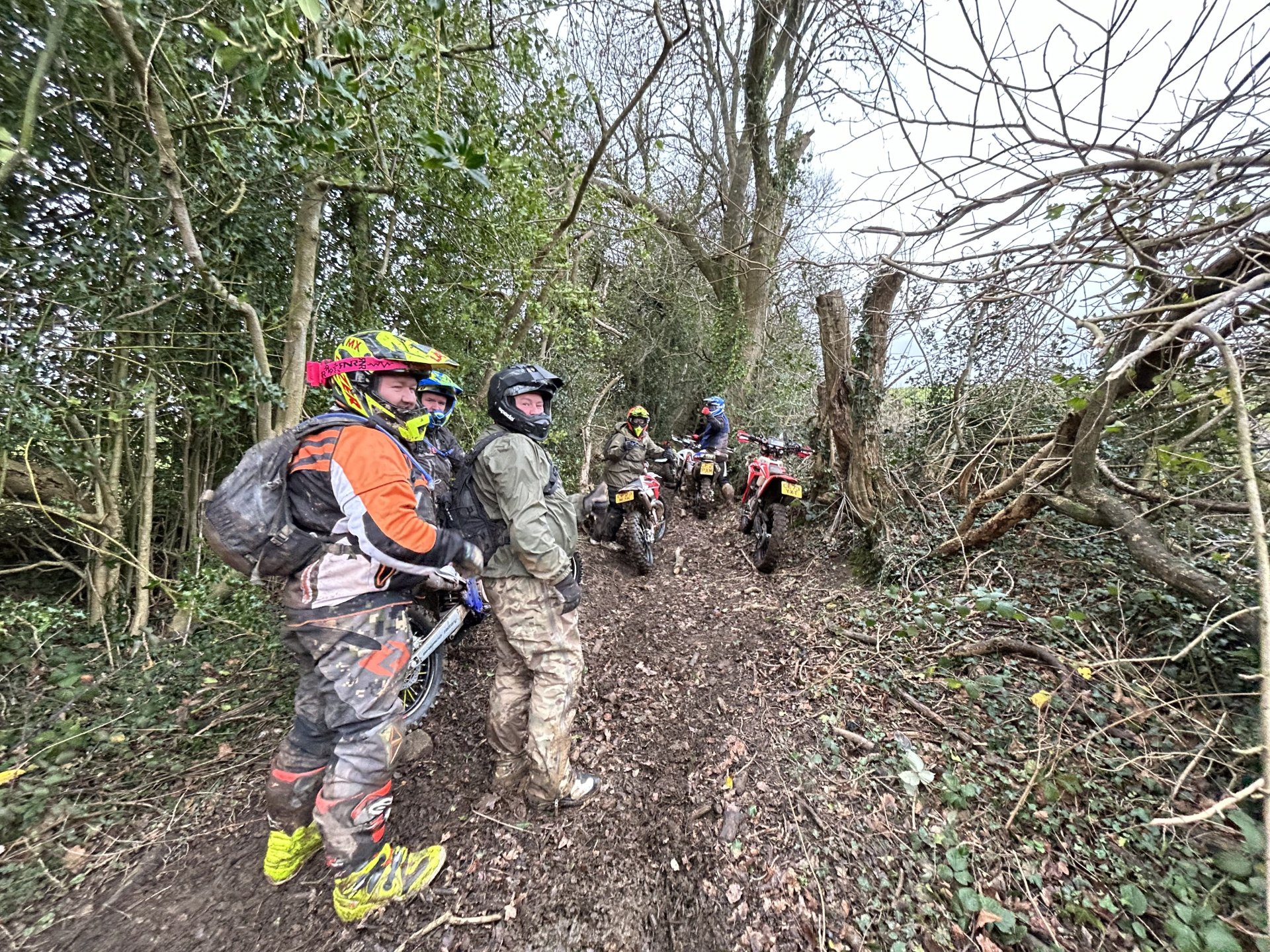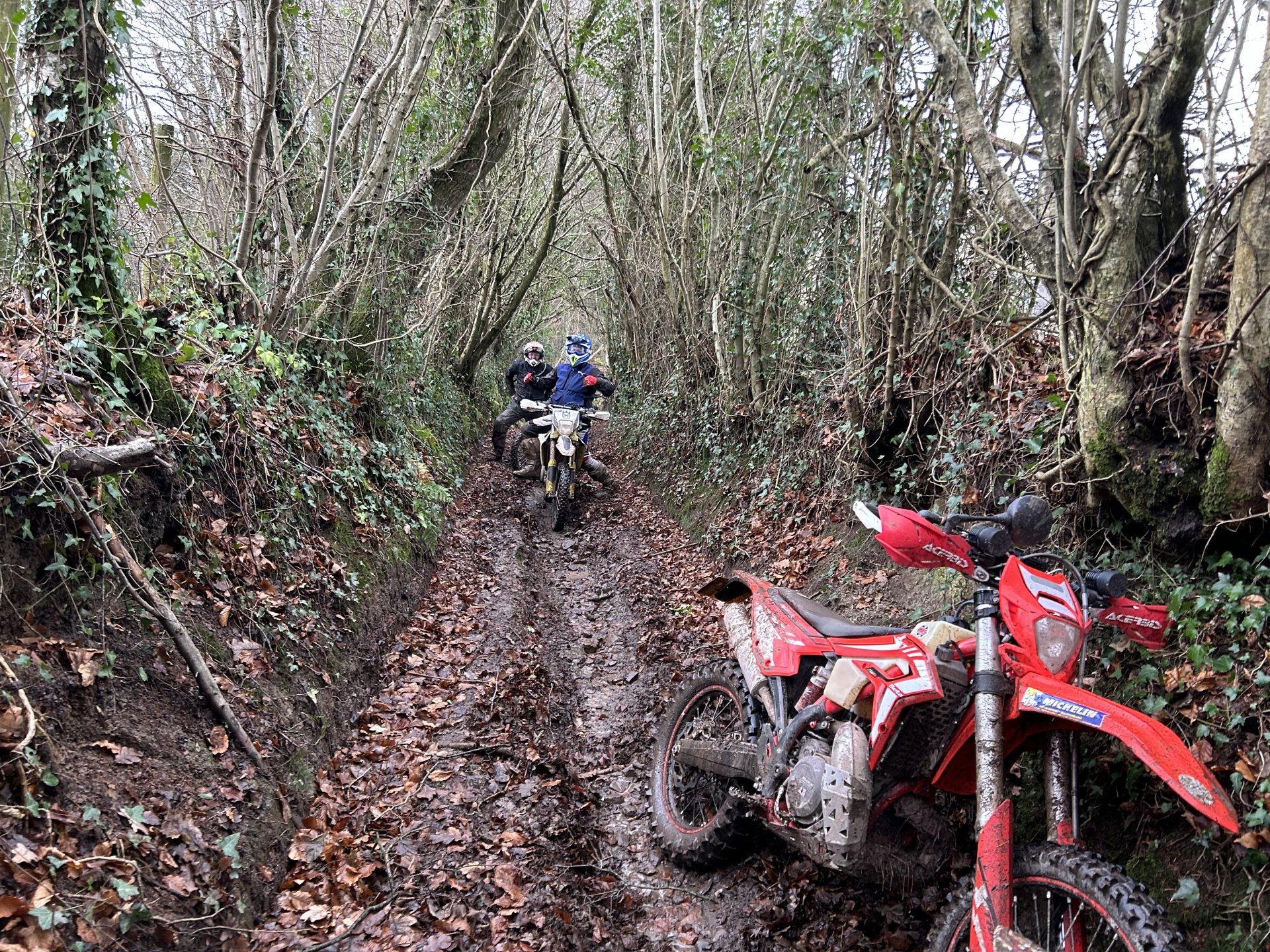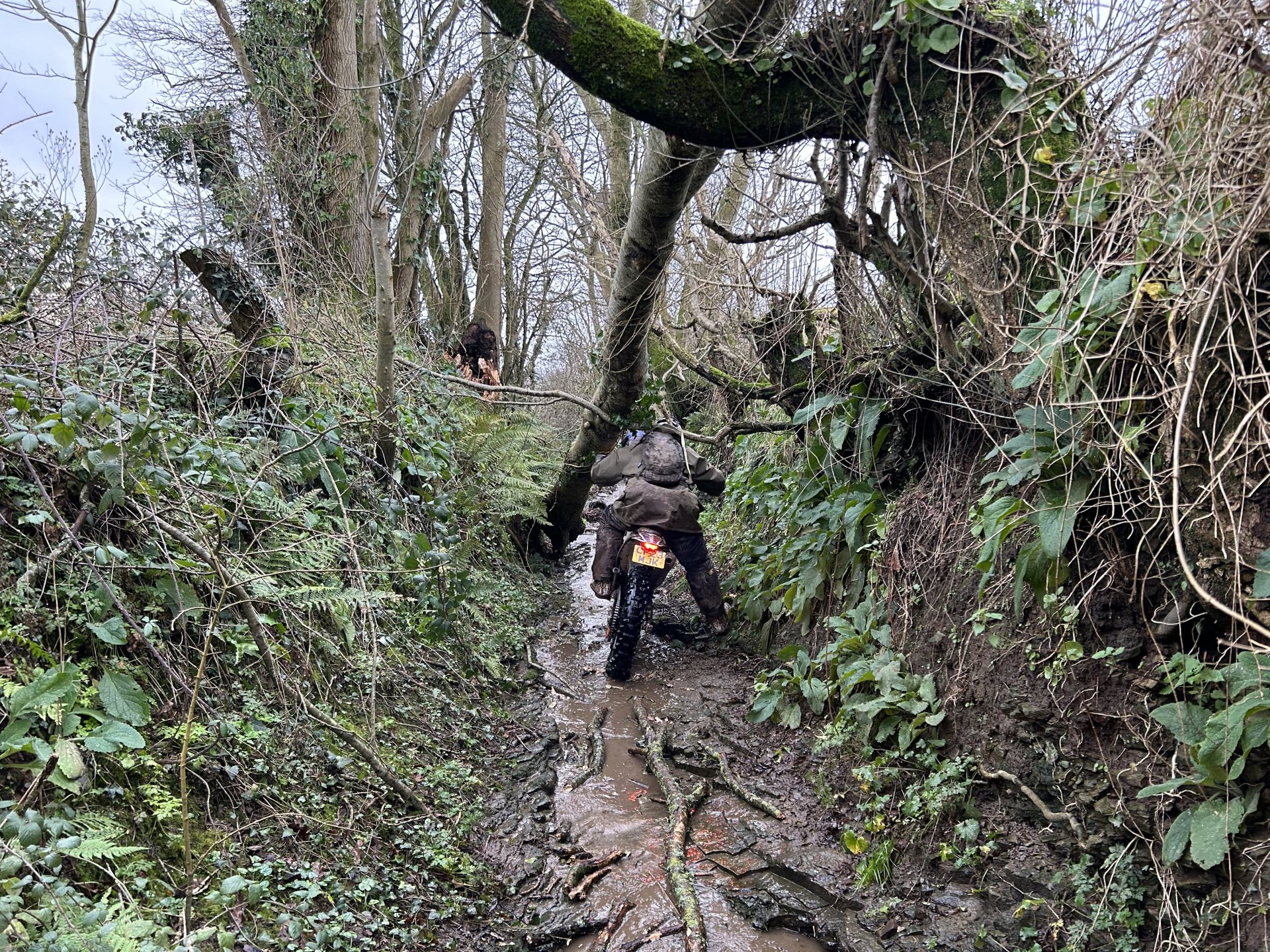 Was the name of this years TRF Christmas trail ride and someone much better than me at photoshop came up with this for the header photo The day was starting from Abergavenny, so the bike and gear went in the marmite wagon last night ready for the off at 08:00 this morning just as i was gong through the door i realised i hadn't put in my bike trousers so after a quick visit to the garage i was on my way. 51 bodies had signed up for the ride and then split into groups of between 7 to 9 members and given routes with varying levels of difficulty. The group names were Chick Chasers , Sleigh riders, Mincing Spies, Tree Fairies, Frank Incensed, Myrrh and Tinsel Troupe. I was assigned to Frank Incensed group who were one of the smaller groups at seven and a harder route of around 70 miles so that suited me fine. Some of the members at the meeting point, Kim was the only one to dress for the occasion she said it looked nothing like that when she got back lol This was our route there were a number of different routes and some groups had the same route but would ride in opposite directions to keep the numbers down. I like riding this area as the lanes can be difficult and there are not many gates to open and close The ride leader kept up a good steady pace throughout the ride and with no navigation mistakes so i only had a chance to take photos when someone was stuck or we were waiting for others to catch up , The first of the lanes summed up the rest of the ride they were slippery muddy and very wet in places The hold up ahead was someone having to have their bike picked up of them i was a bit slow getting the camera out i need a go pro LOL We had to negotiate a few fallen trees on route due to the recent weather And some twat of a farmer deliberately blocking the road, he had the bucket of the machine close to the tracks it was tight but we all got though. Things never look difficult in the photos The Frank Incensed group Waiting again, one of the guys was falling off regular and as the ride went on it was getting noticeably more frequent we found out he only got into trail riding a few months ago so was understandable and to be fair was doing well I had a walk back down the lane to see what was going on and here they come It was harder to walk back up to the bike than ride up This was the last photo i took and was the last lane the lad that was falling off done as he decided to head back to the vans as he was fucked and the next few lanes were quite difficult We missed out the last two lanes on the route as it had got dark when we got back to the vans the yellow weather warning arrived i had just finished loading when it hammered down. The bike is and gear is going to have to wait until tomorrow for a wash now The jackets not too bad But i think i'll need a shovel to clear the pavement after i wash the bike off Still waiting to hear how the other groups got off and i think there might be some videos of todays ride turning up later Got to say a great end of year ride i must get out more often next year i think10 points