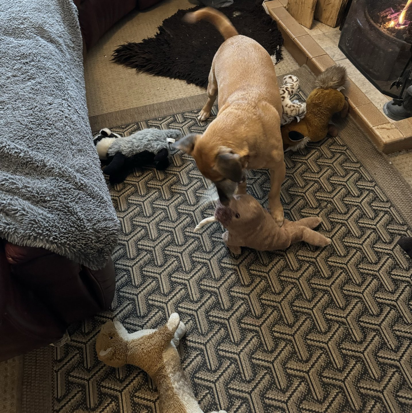 I often wonder what goes on in my, admittedly very spoilt, Jack Russell crosses head. Everyone of his toys has a gimped right front leg, non of the others are touched but he always attacks and takes the stuffing out of the right front. The only exception is his walrus where he has gimped the right front tusk. ???11 points