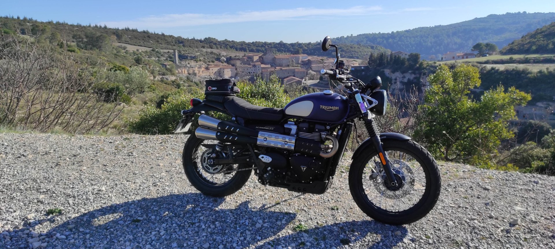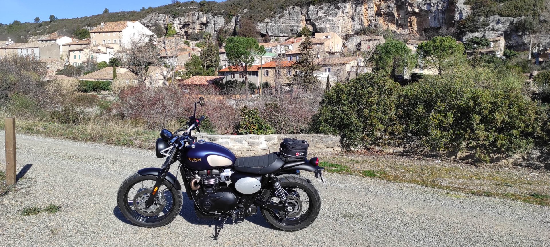 The sun was shining and the cold wind from the last few days had gone, so I decided that a little bimble was in order. I topped the tank at our local supermarket and headed up to Coursan. Then across to the Narbonne northern bypass and peeled off north towards Ginestas. The traffic was pretty light, so it was easy going. A guy on a T100 Bonneville caught up with me just before Saint- Marcel - sur- Aude. We tried having a conversation at a set of lights, but engine noise and language barrier put paid to that! He turned off shortly after anyway. I carried on North and eventually crossed the Argeliers - Trebes road. This is where the ride starts getting a bit more interesting, as the road was then heading into the Corbieres hills. After a bit, I turned off this road to head towards the medieval town of Minerve. This road follows the hillside on one side of the valley of the river Cesse, so it twists and turns around rocky outcrops. French drivers have the mindset that nothing should be coming the other way on blind bends, so extra care is needed to not meet one of them on your side of the road when coming around these bends. I stopped just before the town to get some photos. The town is perched on a rocky point where two rivers meet and have carved two valleys/canyons through the rocky landscape. I rode through the town and headed up to the carpark that overlooks it. There's not much of a view of the town from there, so I decided to carry on up the single track road into the hills for a bit. There didn't seem to be too much more up in that direction, but there were some nice views towards the Pyrénées. It was a bit hazy, so the snow on the peaks was barely visible. I headed back down to the town and set sail for home. I stopped once more to take some pictures of a village, sitting between a low cliff and the river, which has no water in it at the moment. I took a slightly different route back. Going through Argeliers and Capestang, before peeling off towards the south again, through Montels and Nissan- les-Enserune and back to home. Not a huge ride, probably around 100-110km, but nice to get out on the bike for a while.11 points