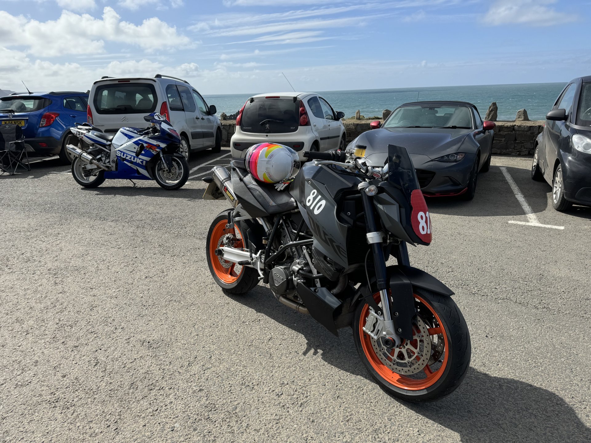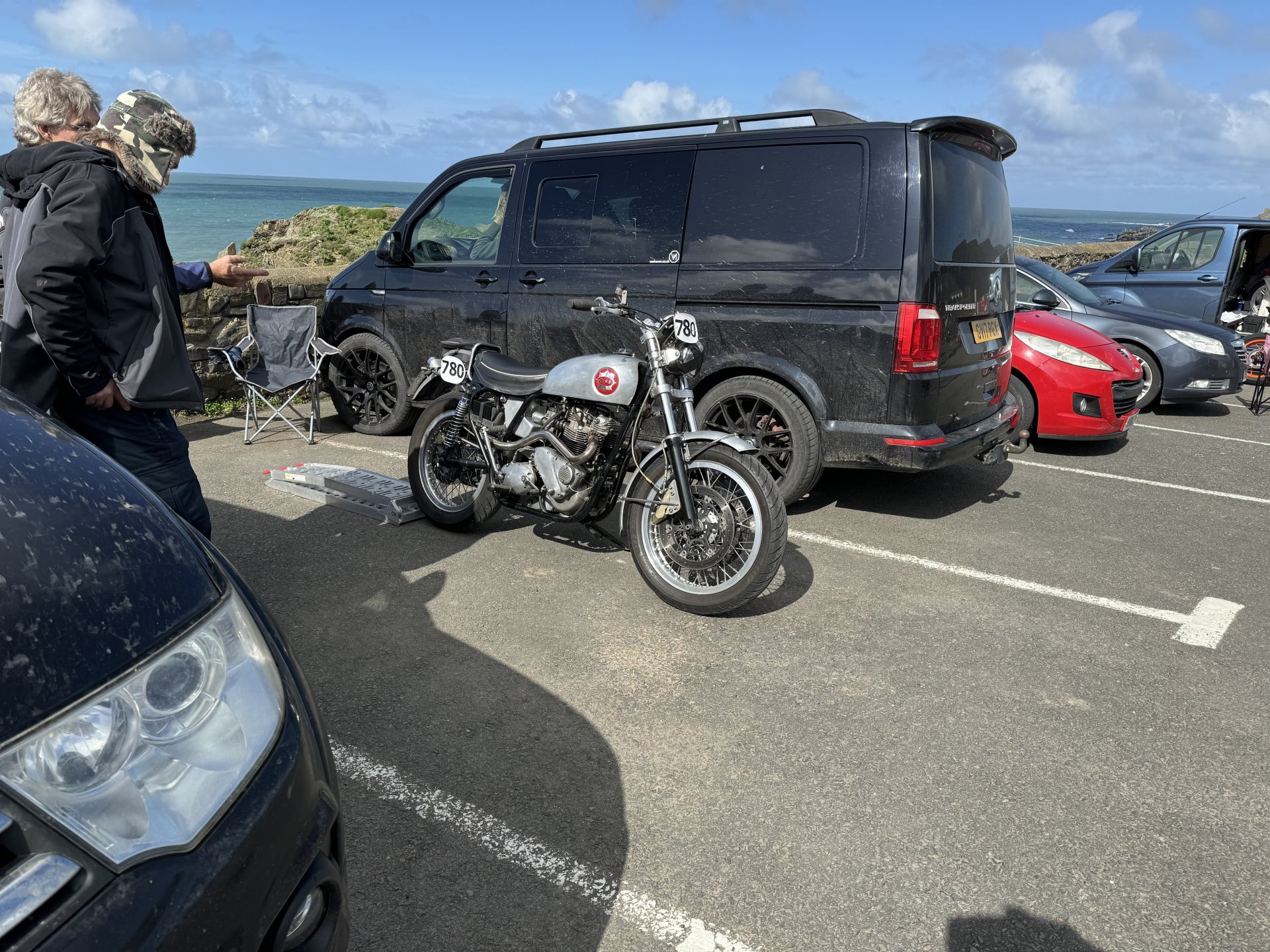 6 of us from Fowey went up to Devon today to see the National Hillclimb Association first event of the year. We stopped for breakfast near Poundstock. They thought us old fuckers must be dodgy as we had to pay before they would serve us any food. I personally was flattered that they thought I could do a runner. . It was very nice though and they warmed up after awhile When they realised we were behaving. Trip Stats It was an interesting meet with several interesting bike’s although most seemed to be modified crossers. There was one combination so I guess that won its class. Hartland Point was vey pretty with Lundy Island out on the horizon. Some pretty big balls in terms of pace. Mental buggers. Some interesting stuff in the car park, well to me anyway. Also our little band, my other mate wouldn’t take his Ventura into the field Don’t Blaine him it probably weighed over 300kegs We stopped in Bude for a cuppa on the way home. Had a chance to look at my mates V4 Ventura on the way home. Detuned V-Max motor. Very big bike but beautifully put together. Bloody good day out with the old codgers.11 points