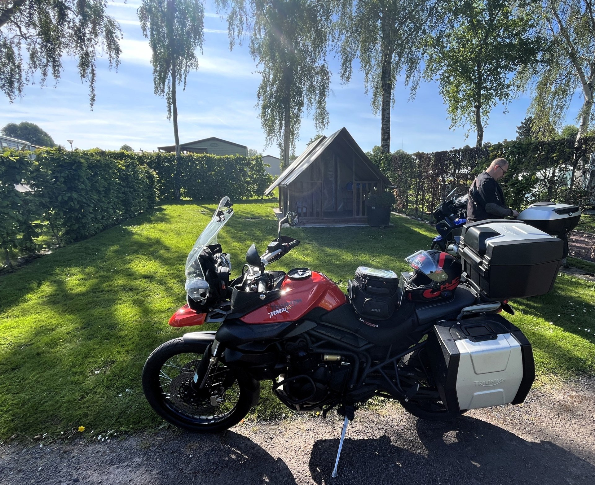 this has been a long time coming as it is something that I have been wanting to do for a fair few years now. I originally planned this as a solo trip, but things change and a couple of mates tagged along, one for the whole thing and one ( + wife and dog) for the Normany part but not the "there and back" bit. With unstable spring weather and unsure of my own ability to ride km in a day and still be able or willing to set up a tent in shit weather, I booked what they call a "cyclo tent" in the municipal campsite in Bayeux. It cost me 90 odd € for the 3 nights and as it has é beds and my mate Manu came along Ionly paid half of it . It's a kind of semi rigid tent, and looks like this: ( that's Manu in the pic with his RT1100 The campsite is well organised (but everybody's GPS sends them to the swimming pool and not thecamp site) well maintaine and equipped with new, clean and heated shower / toilet block. t's half an hours ride from any of the invasion beaches and all the main sites, i'd recommend it if you're thinking of going. The ride North from here on wednesday went almost without a hitch, the weather had changed radically for the better and I left home ataround 08h30. I met up with Manu as planned, at a petrol stationjust this side of Joigny on the N6. We then headed eastwards toward Montargis and Orleans, rounding Orleans to the south and then turning northeast towrds Chateaudun where we stopped for lunch. Top Tip for eating rapidly in France: Get to the restaurant by 12h00 at the latest (11:45 is better) cos the french feed from 12 to 2 and the ALL arrive, en masse at 12h00. We got there at 11h45 so were pretty much first in, first served and first out. as we left at 12:45 they were still queuing at the door and more were still arriving. It being a Looooooong weekend, the whole country and his significant other were on the roads (Including, much to my surprise a large number of citroen 2CV, many pulling caravans FFS! I failed to get a picture of this, as I was too busy trying to not fall of my bike from the surprise!) From chateaudun we moved ever north and east, through Nogent le Rotrou, Mortagne au Perche, Sees, Argentan and Falaise (not only famous for the "Falaise Pocket" but also the home of William the conquerer, whos chateau is still visitable (looks like I'm going to have to come back here...) We stopped fro a break and a coffee in Falaise, as I had planned the only autoroute usage of the trip from here to Bayeux, as it would be getting on fot rushhour as we approached Caen at this stage we'd been on the road for nearly 7 hoursand I just wanted to get to the end. From Falaise north, the Autoroute is a "voie rapide" similar the the autoroutes in Britanny so no toll, but with a speed limit of 110kph rather than the 130 of the toll roads, but that's fine as the tiger is probably at hermost comfortable at this speed. The traffic around Caen was bad, and I had to resort to lane splitting with is "tolerated" inFrance and codified but not legally. It isnot something I'm very comfortable with as I never need to filter in the part of the world I live in, but most of the drivers being Parisien, it was surprisingly easy, you just sit on the white line between the two outer lanes and the cars open a passage for you like Moses parting the red sea! My ride plan had us arriving at the campsite at 17:15 and we pulled up at the gate at 17: 14 which had the other couple who were waiting for us accusing me of witchcraft (the french are not good at punctuality, for the most part...) we strolled into Bayeux for a feed that evening, and back along the river Up and out early the next morning wanting to beatthe crowds. We're one month away from the 80th anniversary celebrations and its a bank holiday weekend of 5 days AND the weather is glorious... 1st up; the Merville Battery and museum, you can look it up for specifics. It was aninteresting visit and the information dotted around the site was very instructive and complete. The Dakota parked in front of the Hangar is known as the "SNAFU special" so I had to translate that for all and sundy as it was the only thing not translated on the information boards . Again, we were almost first in, but by the time we laft, the car park was full and there was a 15minute queue at the entrance to the museum. We moved back down the estuary and river to Bénouville and the site of Pegasus Bridge. I believe the first objective of the invasion and the first attack by glider born troops. The 3 glider pilots in question managed to place their machine so perfectly after a 5 mile glide that it is still today considered to be one of the greates feats of airmanship of the war. The original bridge has been replaced, but is still intact and the museum has been built around it They also have built a scale model of one of the Horta gliders used, from the original plans. I was so overawed by the sheer balls of any of the blokes who dared to actually fly inone of them, that i forgot to take any pictures. None of the original gliders have survived intact. This tank did though (built a little moe solidly I think) Iwas intrigued by the graduations painted on the turret. Aparrently it was to enable an exterior spotter to give precise firing directions to the gunner inside. We ate at the restaurant "Les 3 Planeurs" right beside the bridge, good food and reasonably priced. Again, we managed to keep one step ahead of the crowds. By the time we got the "The Grand Bunker" at Ouistreham things were getting crowded. This bunker was a command post with fire direction for the germanshore batteries and was not constructed with the ease of movement of hundreds of tourists inmind... interesting though, and an extensive collection of parephanalia, from an original landing craft to communication equippement and telemetry gear for ranging guns. this is hand canked air filtration system in case of gas attack The rest of the days activities, I had planned to be outdoors, as I struggle to deal wi