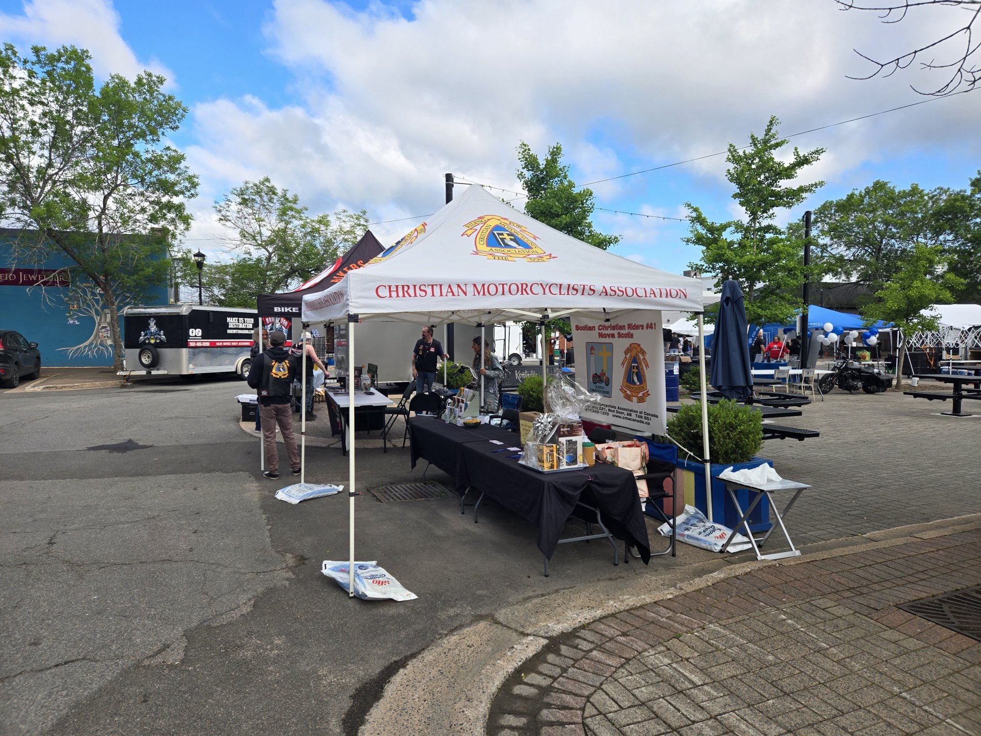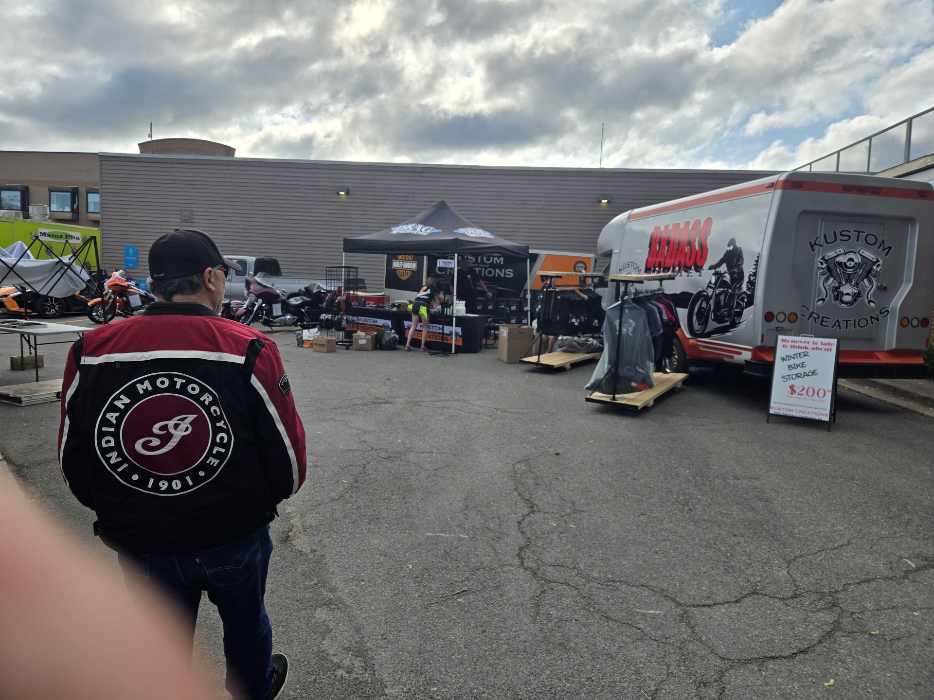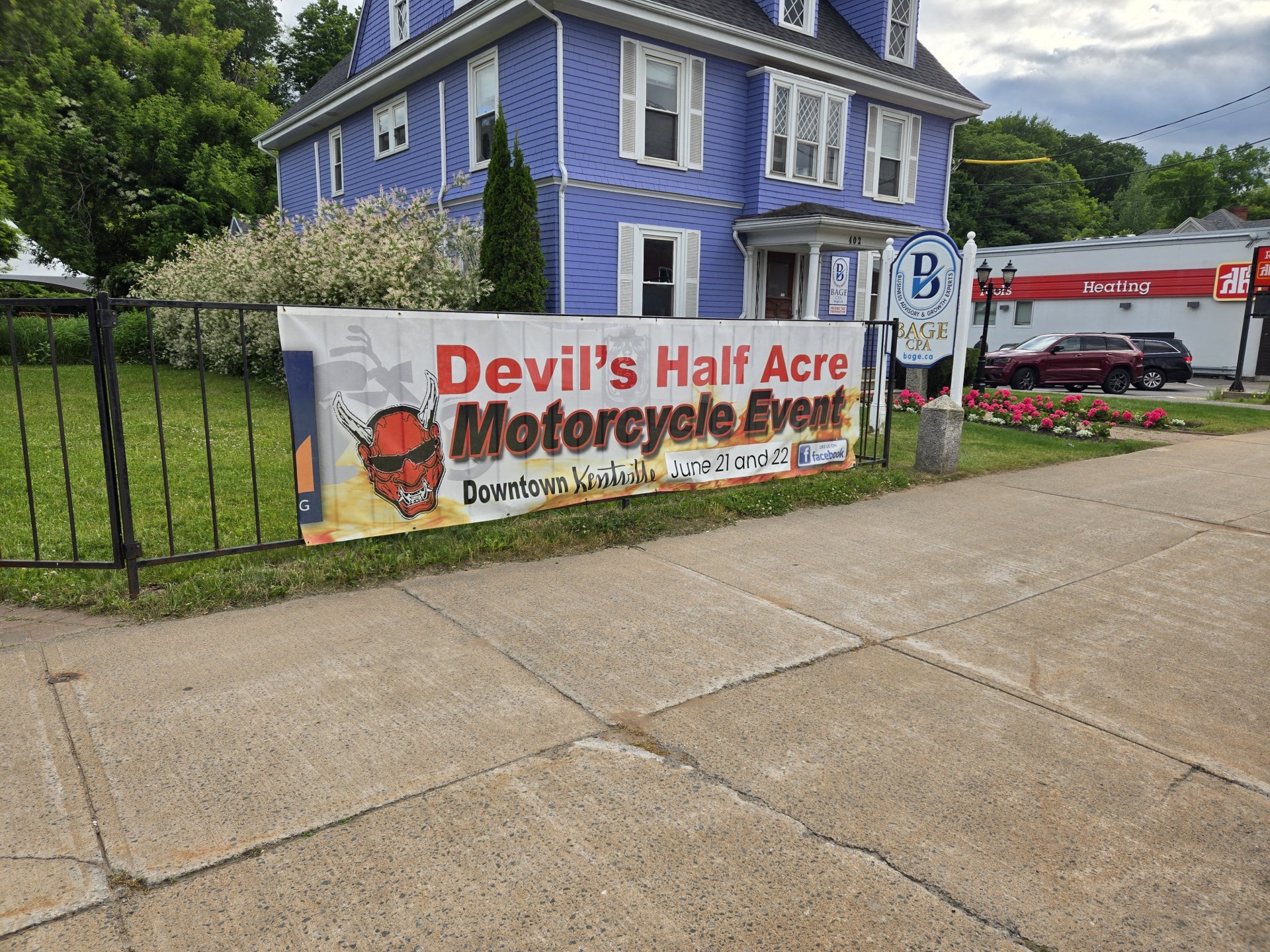 Me and Dan did a little ride two weekends ago , to Kentville , they have this anual weekend rally...called Devils half acre rally..its about a 600 km run from here..Dan wanted to try out his new bike...weather was excellent, left Friday morning, he had scheduled his first bike service at the dealer for 10 am...we rented a RBNB....for the weekend located 15 min away...lots of bikes showed up , I was kinda of surprised...it was extremely hot out...30 c with the humidity index right through the roof...but still you had these the Harley guys walking around with there's leather costume...the chaps , leather vest...the works...lol.