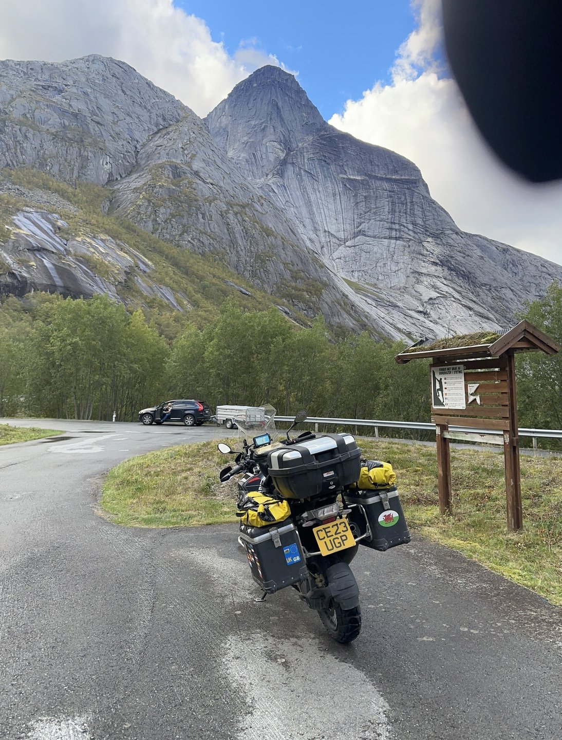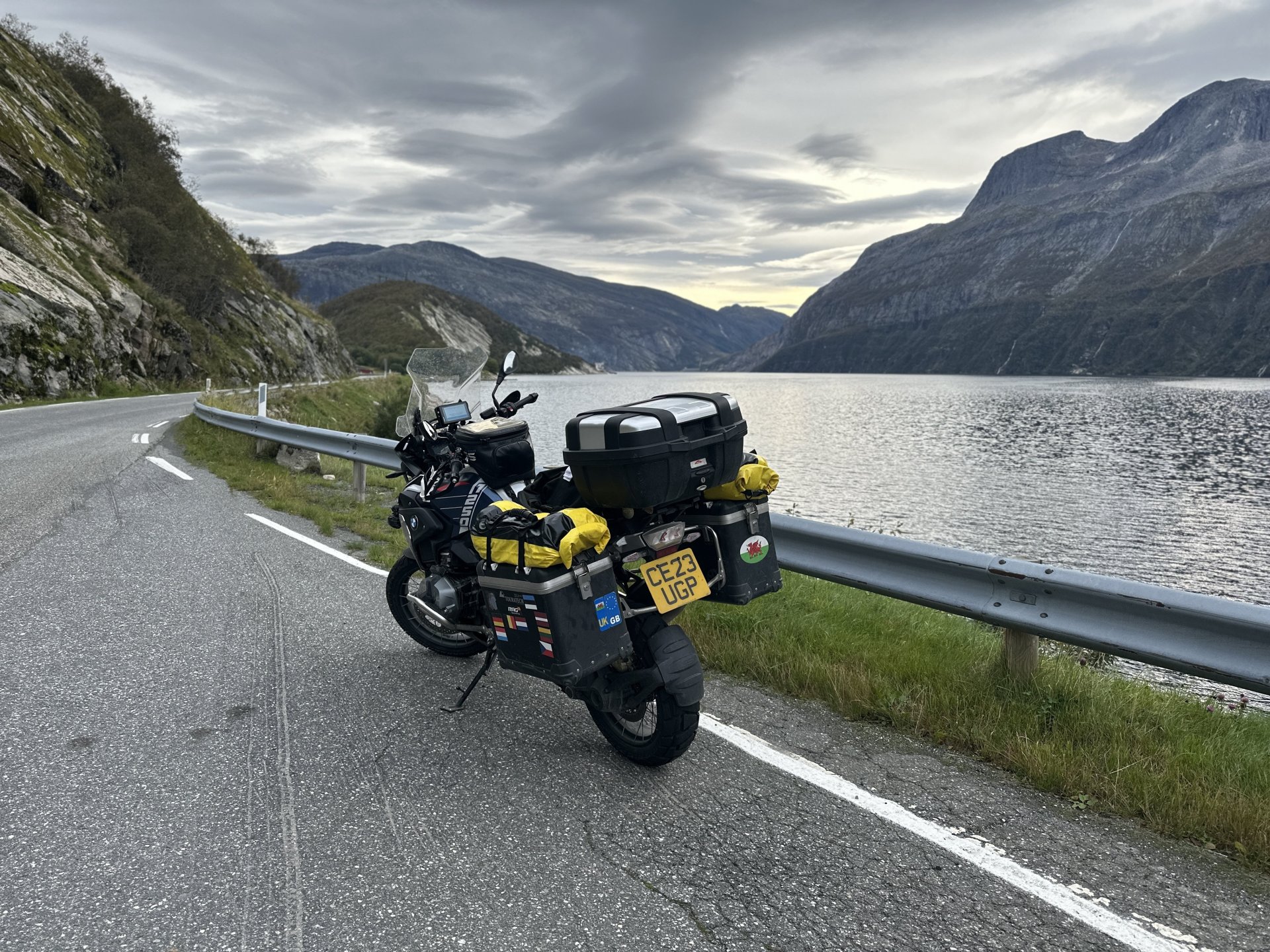 Sorry that I haven't been overactive on here lately. Just realised that I haven't ridden the bike since November. Fed up with riding the same old routes around here, the dreadful traffic, and the weather has been shit. Did a trip around Sweden and Norway in September but just haven't been motivated enough to write it up as a ride report. Some of you might have seen a few bits on FB. Only had my phone with me so all too easy. I need to put about 500 miles or so on the bike before I get it serviced so might have a week or so away to get that done. Here are a few snaps of Sweden and Norway anyway. First night in Sweden Fingertip closeup.