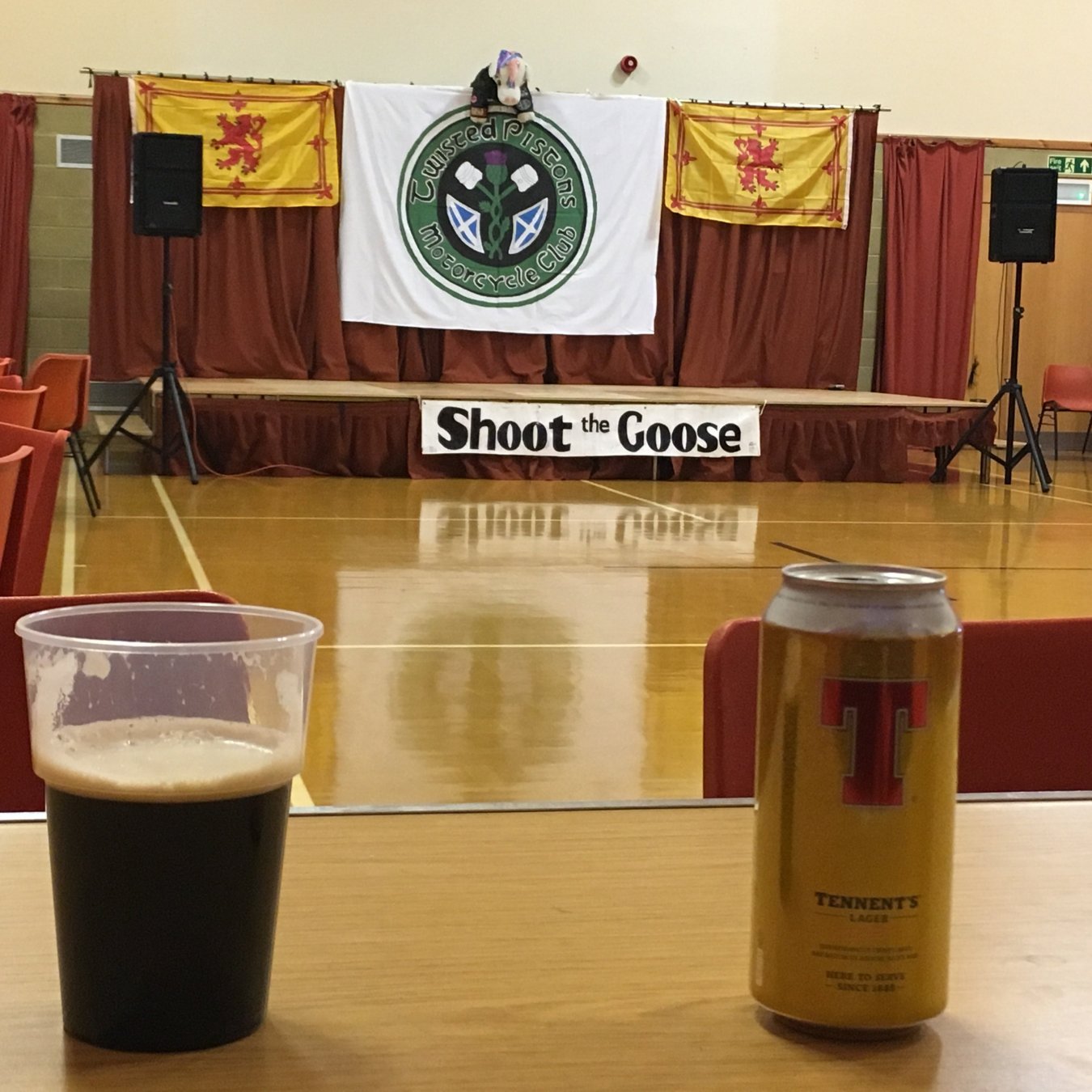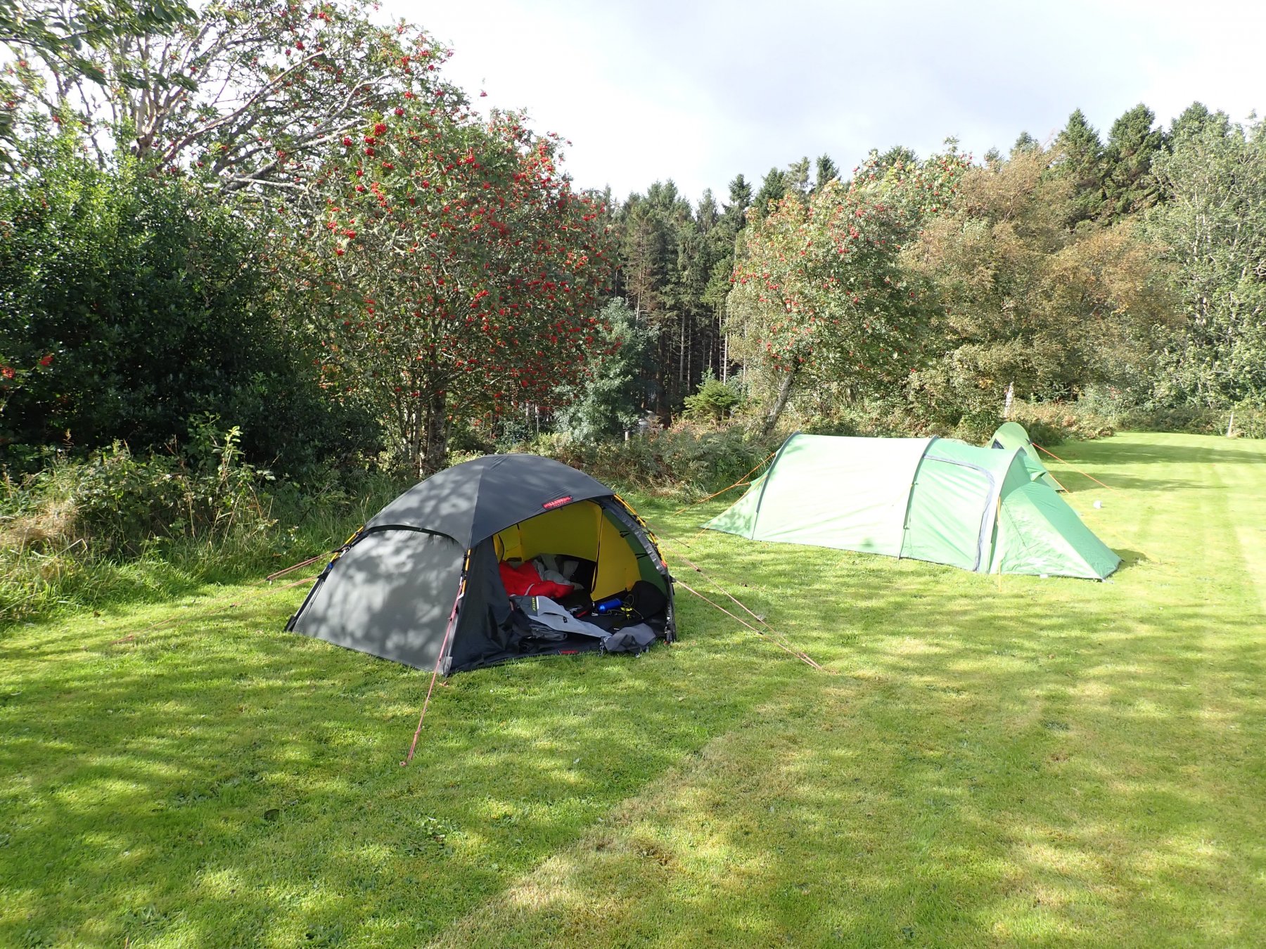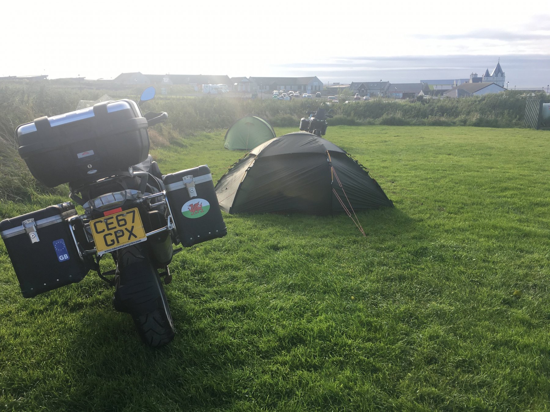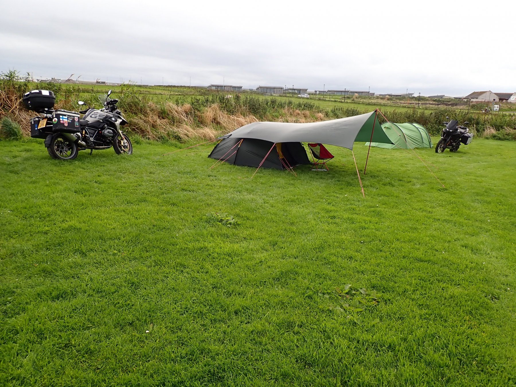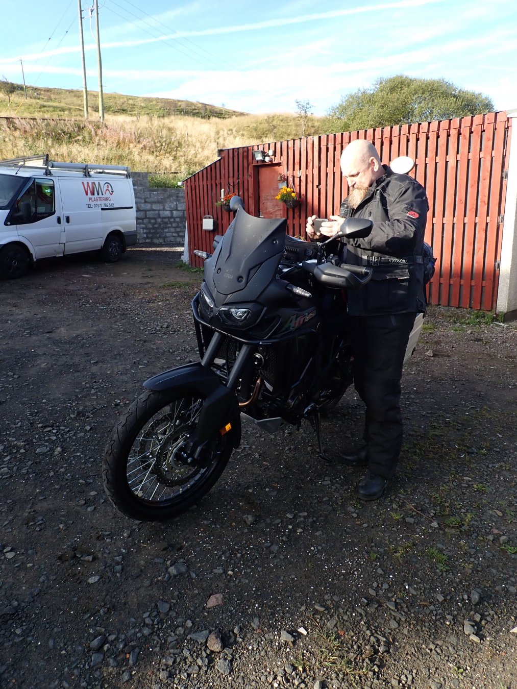 That was the last couple of days. Still showery overnight and although still wet decided to leave the gear behind and have a ride round the peninsula in the opposite direction to yesterday's ride. Bad effort at a panorama. Looking over towards Skye. View south towards Applecross. On the way up the Bealach na Ba Then it was a siesta before heading down to the pub. This was on the way by the campsite entrance. Left Applecross on another showery day, windy on the open unsheltered stretches of road. Fortunately only a few hours ride. Arrived at the rally site on Skye, more or less under the bridge. Early there, so got a couple of sheltered pitches before the forecast storm. Not to far to the bar, just around the corner. Found this weird fly on my tent but couldn't get a clear photo because he was on speed or something. Started as soon as the bar opened. Met some friends from Eye of Ra MCC who'd ridden up from Newport way. Somebody got tired. Then burst back to life. Was awarded a trophy for the furthest travelled. @Sir Fallsalot insisted that I should keep it as I'd been leading, fair play to him. Strangely enough I hardly used the Garmin. Spent the morning reading after waking up to this, and a hangover. Managed to dash inside for breakfast and then a quick stroll down to the harbour for some lunch and a beer. Then it was back to the rally for more beer and rum.. IMG_0793.mov