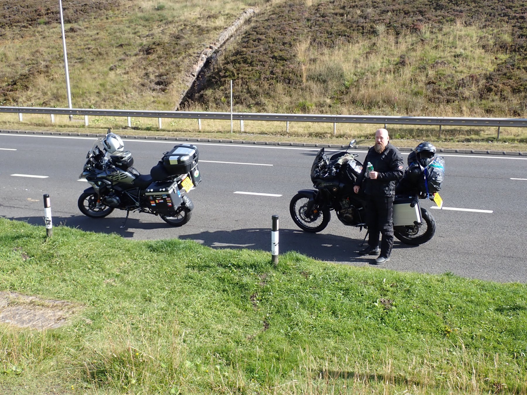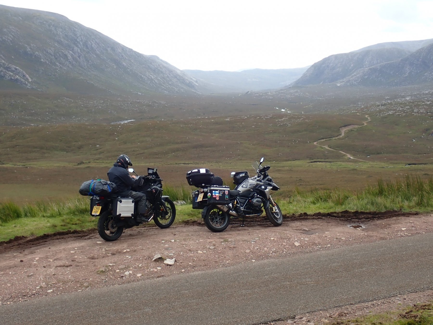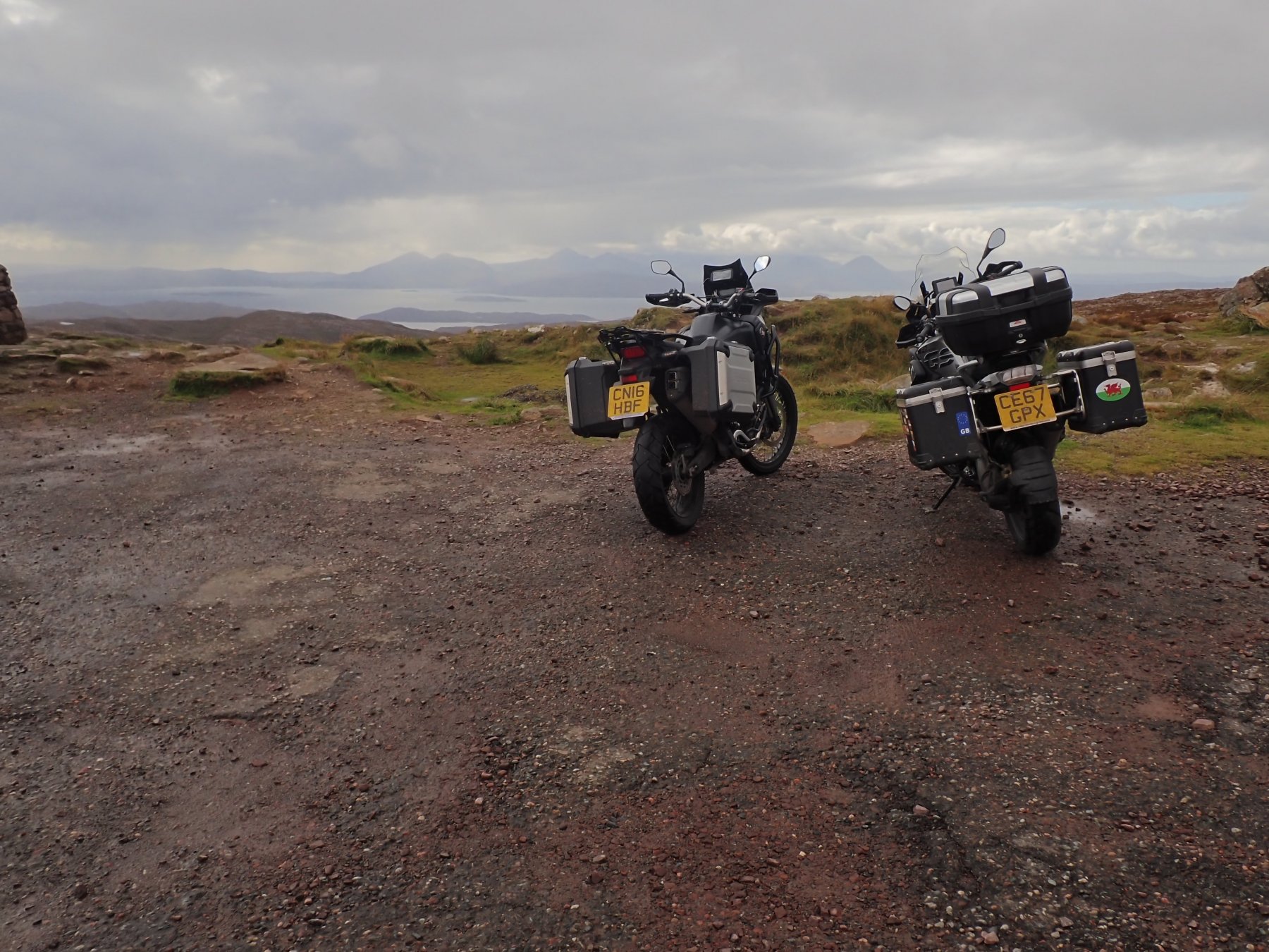 One drunken night Fred let slip that he hadn't been to Scotland. Another drunken night someone told me about a September rally on Skye. A plan was hatched. The weather forecast was shite so abandoning our original plan to go north via Lake District, we decided to head north as quickly as we could in order to beat long days in the rain, and as it transpired, have shorter ones instead. It meant motorways to our B & B somewhere between Glasgow and Edinburgh - I forget where! I left Cardiff and met Fred up the road. Stopped for food and fuel on the motorway but almost fainted at the prices, something like £3.50 for a cupcake. Sandwiches were cheaper! Found the B & B and the landlord gave us a lift to the pub, as you do. Nice pint! Getting ready for the next day. Not much motorway thankfully, but speed checks everywhere. Stopped north of Pitlochry for a couple of snaps. That might be Ben Alder in the distance. Not far from it if it isn't. I can believe that I didn't take any more photos before we were well north of Inverness, where we stopped for a brew and a sandwich. Then it was a dash up to John O Groats before the bad weather was due to arrive. Then it was off to the pub, where we were stuck for the following day due to the wind and rain.
