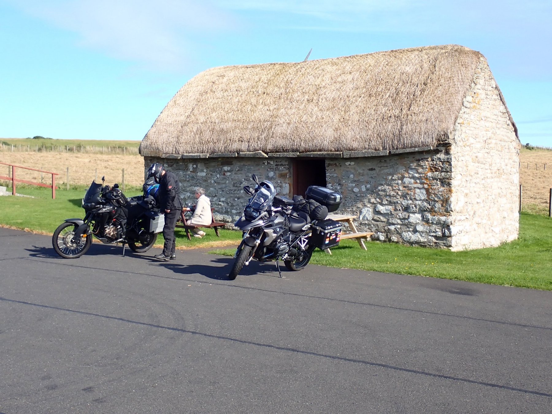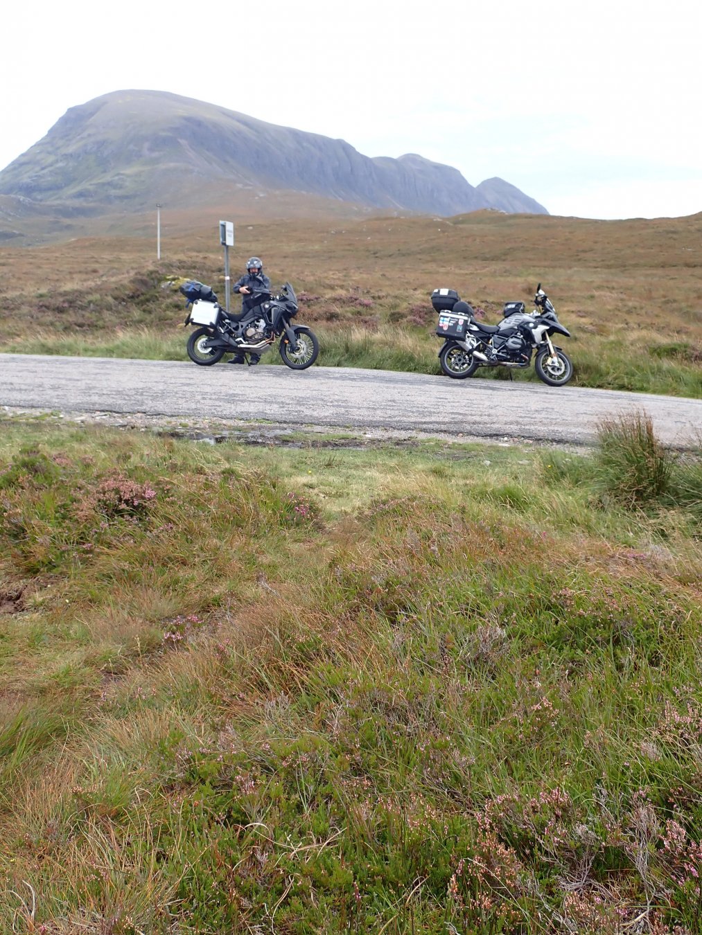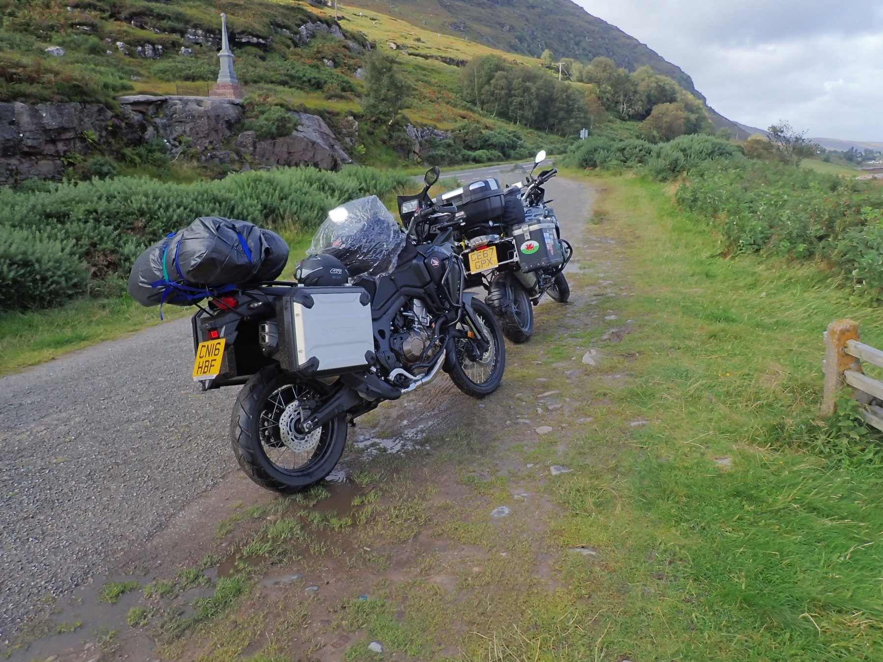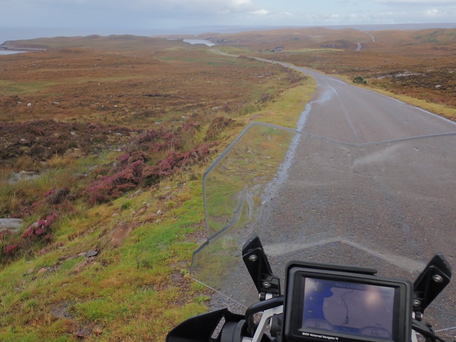 One drunken night Fred let slip that he hadn't been to Scotland. Another drunken night someone told me about a September rally on Skye. A plan was hatched. The weather forecast was shite so abandoning our original plan to go north via Lake District, we decided to head north as quickly as we could in order to beat long days in the rain, and as it transpired, have shorter ones instead. It meant motorways to our B & B somewhere between Glasgow and Edinburgh - I forget where! I left Cardiff and met Fred up the road. Stopped for food and fuel on the motorway but almost fainted at the prices, something like £3.50 for a cupcake. Sandwiches were cheaper! Found the B & B and the landlord gave us a lift to the pub, as you do. Nice pint! Getting ready for the next day. Not much motorway thankfully, but speed checks everywhere. Stopped north of Pitlochry for a couple of snaps. That might be Ben Alder in the distance. Not far from it if it isn't. I can believe that I didn't take any more photos before we were well north of Inverness, where we stopped for a brew and a sandwich. Then it was a dash up to John O Groats before the bad weather was due to arrive. Then it was off to the pub, where we were stuck for the following day due to the wind and rain.