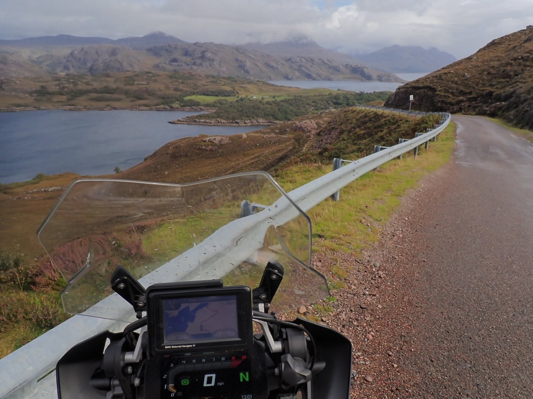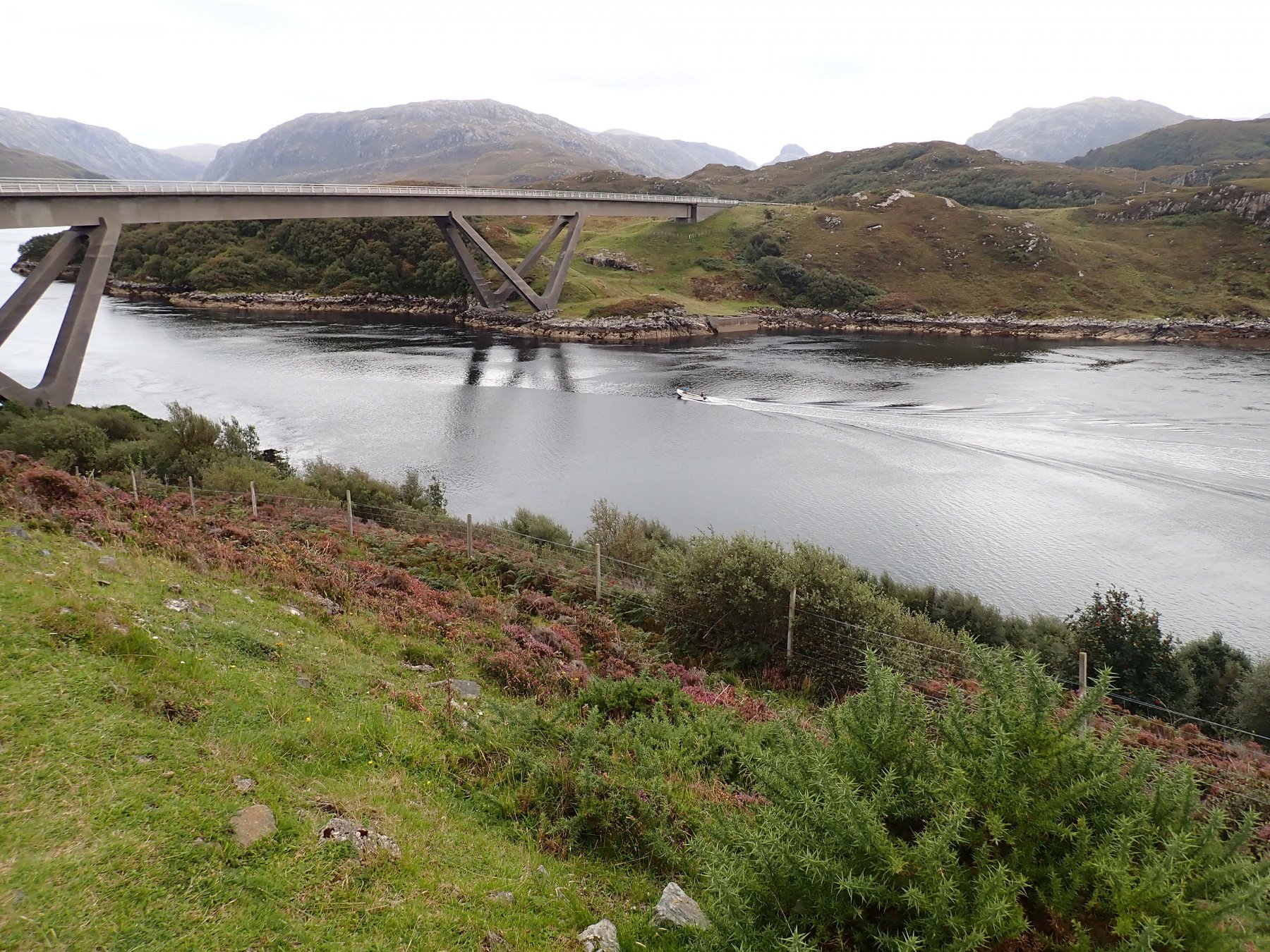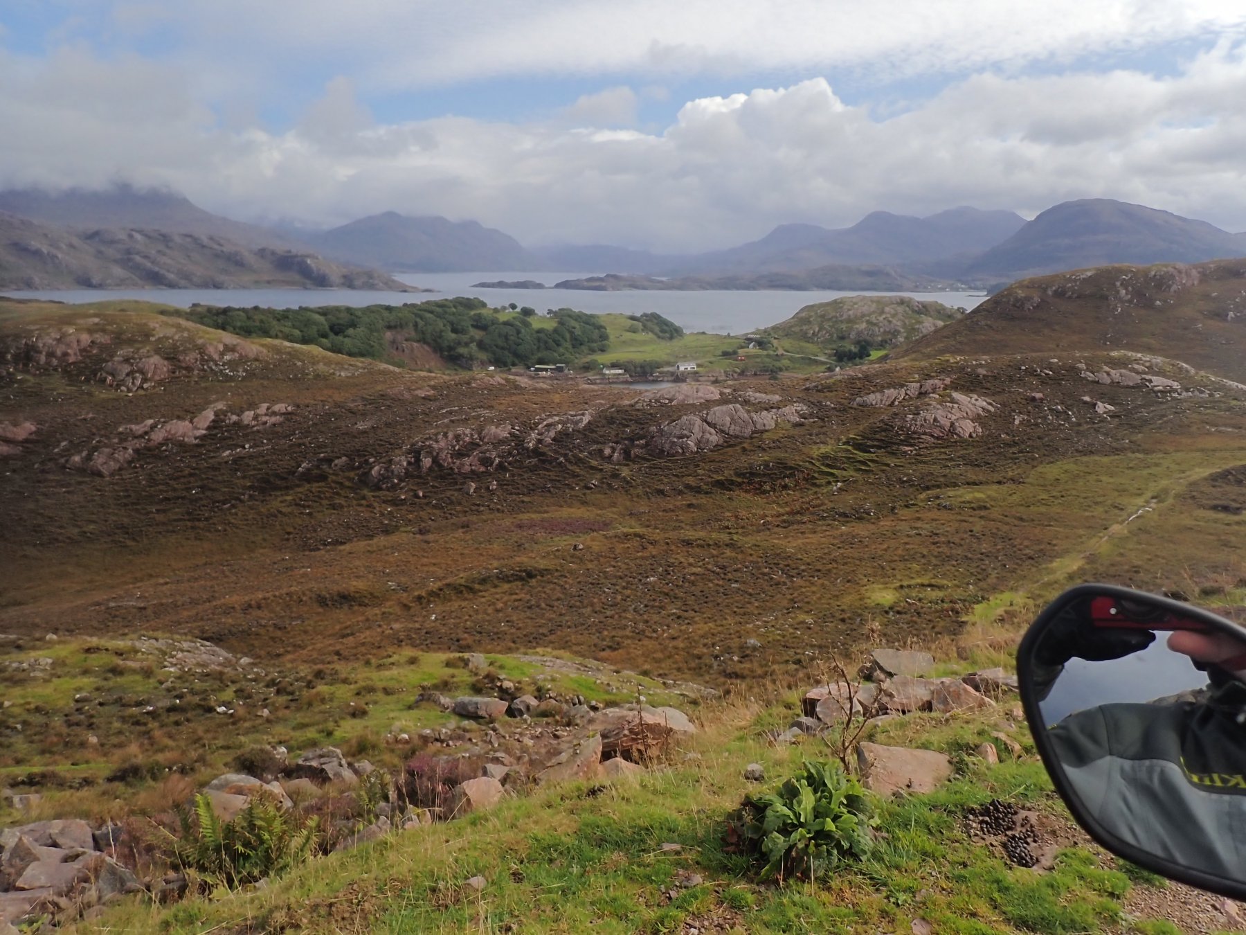 Having spent a day in the pub, the following was better so we decided to head west towards Ullapool. Loads of these rentals about. This was at Dunnet Point, the northernmost part of the mainland. J O G is further south. It's Orkney in the distance. Heading west. Fred adjusting his load. Hmmm. Coffee break not far from Tongue. This is why I usually stop there when passing. Another one of my favourite photo stops. Now if I ever come up on the lottery ....... Kylesku bridge. This bee took a dislike to Fred. He caught it before it could do too much damage. Another nice place to live. Plenty of colour here and there. It was a mad dash to Ullapool from here as it was trying to rain with the wind getting up. Managed to find a hotel with rooms but only for one night. The whole town was packed it seems.