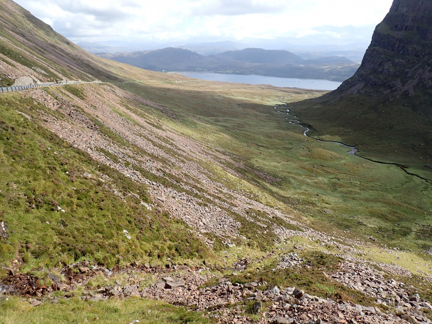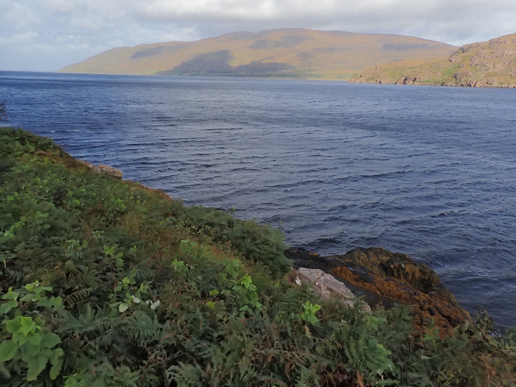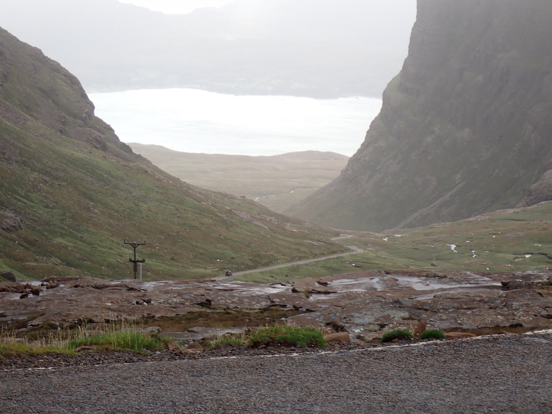 Having spent a day in the pub, the following was better so we decided to head west towards Ullapool. Loads of these rentals about. This was at Dunnet Point, the northernmost part of the mainland. J O G is further south. It's Orkney in the distance. Heading west. Fred adjusting his load. Hmmm. Coffee break not far from Tongue. This is why I usually stop there when passing. Another one of my favourite photo stops. Now if I ever come up on the lottery ....... Kylesku bridge. This bee took a dislike to Fred. He caught it before it could do too much damage. Another nice place to live. Plenty of colour here and there. It was a mad dash to Ullapool from here as it was trying to rain with the wind getting up. Managed to find a hotel with rooms but only for one night. The whole town was packed it seems.