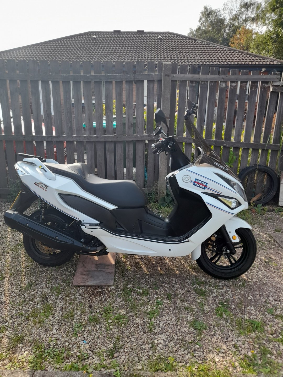 The new scoot. Deailim S3 Advance. 250cc.....25bhp....top speed 85mph....so will happily cruise at motorway speeds. 2015.....3200 miles...full MOT Keyless ignition.....looks like new, not a blemish or spot of rust on it, main stand rust free...take the number plate off and it looks new, a few stickers to remove.....very pleased for the price. You can all get on with the laughter now!.