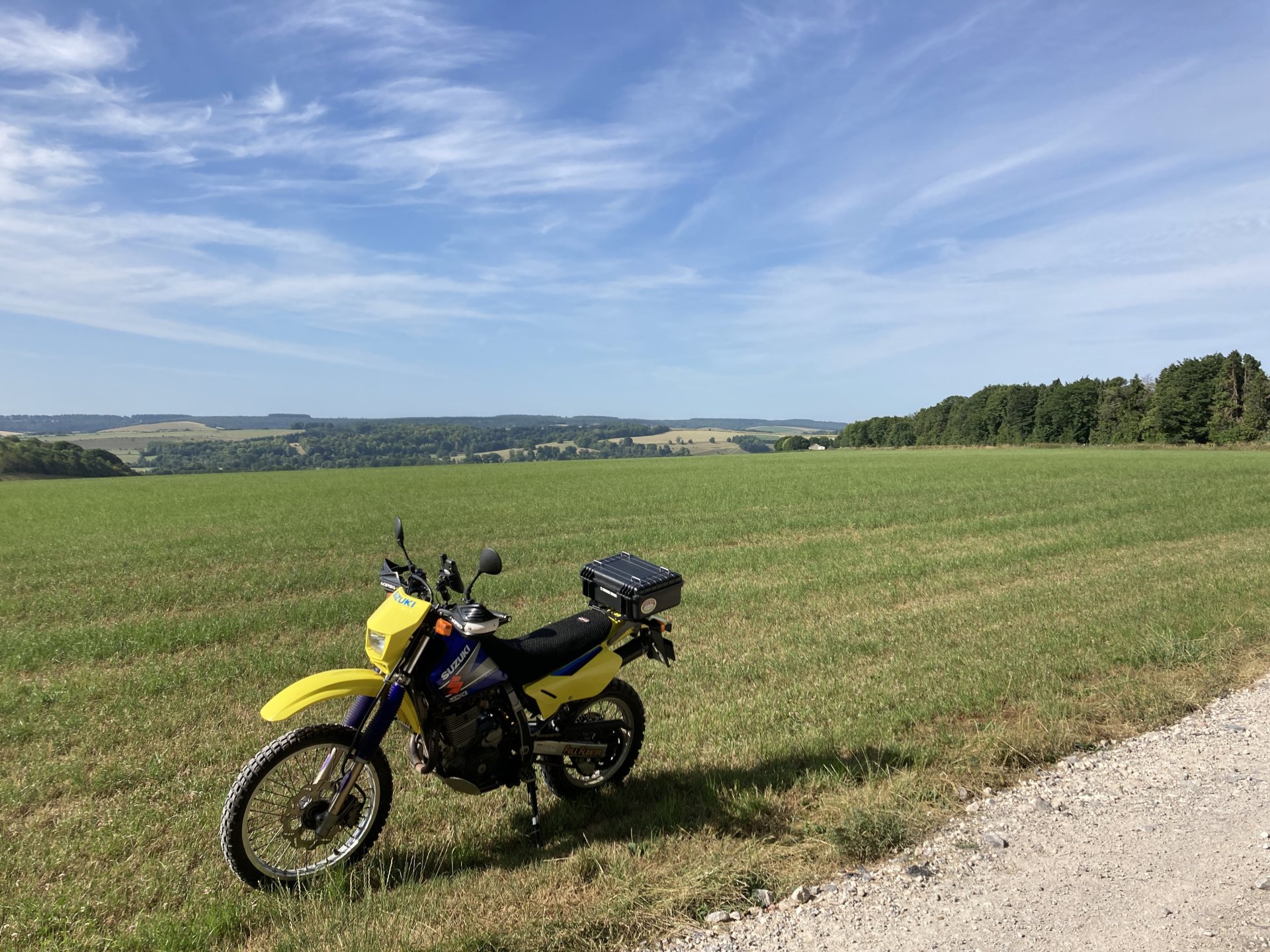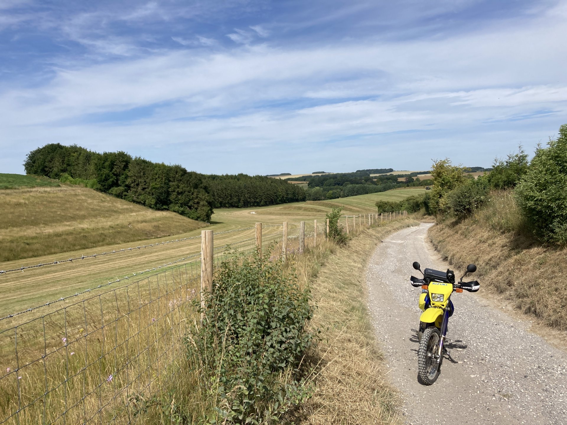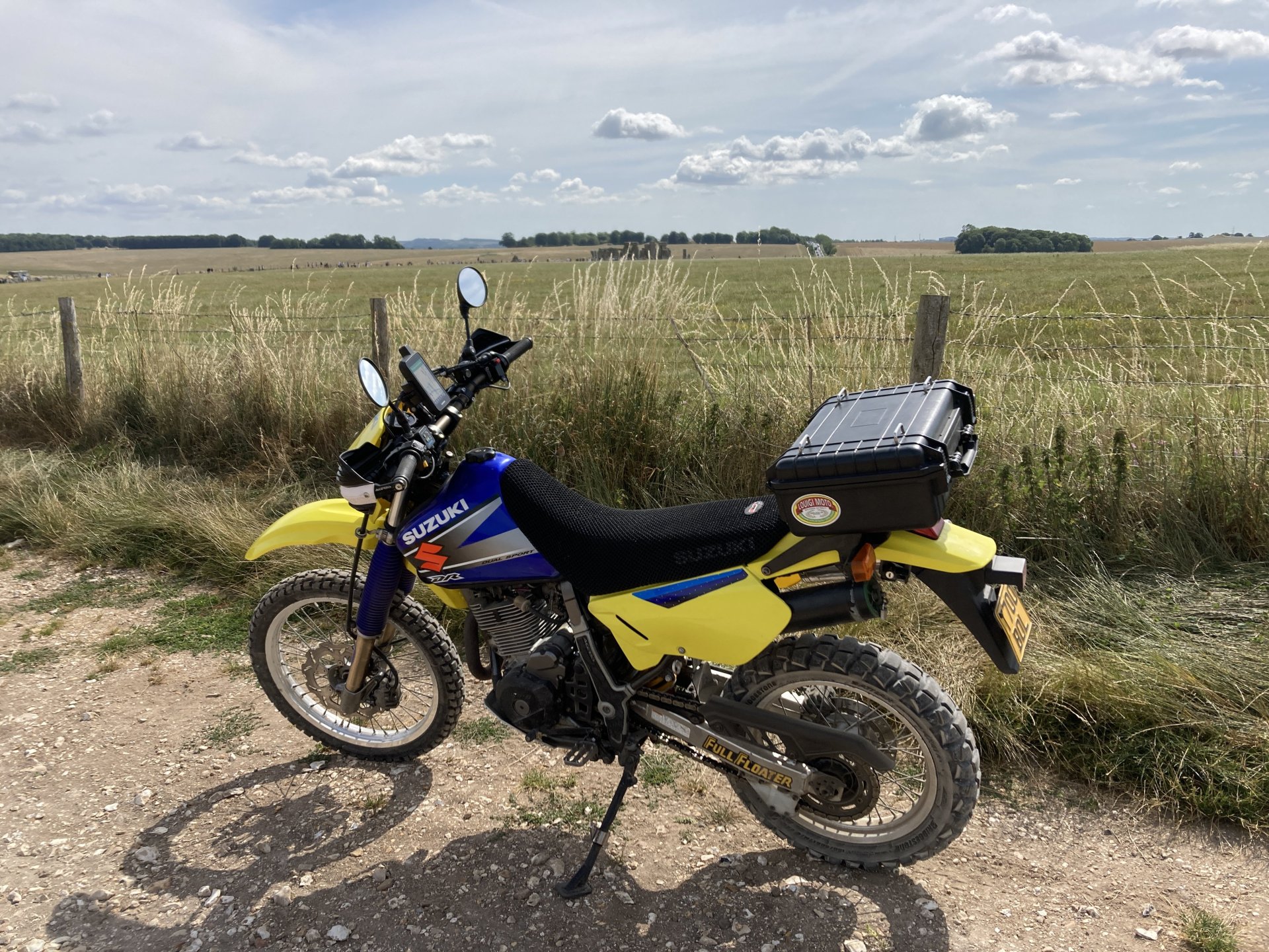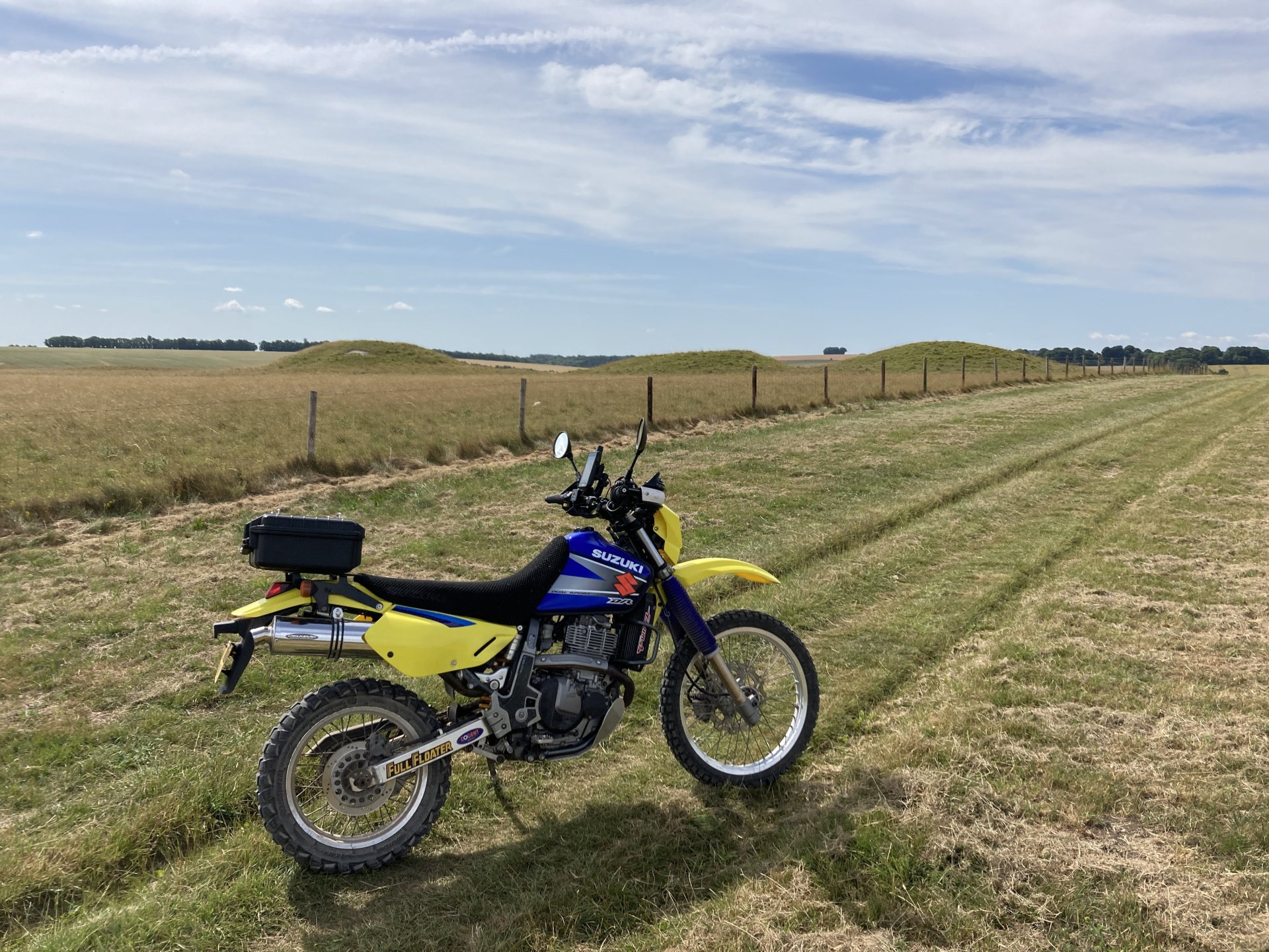 18. I recently refitted my cogent rear shock after checking it over and had also fitted new cogent valves in the front forks so I decided to head for the whoops near Yarnbury castle did give it a check ride. Heading down the byway to Yarnbury I heard that familiar sound of a helicopter buzzing overhead , I stopped to take some photos as it had stopped in a nearby field to practise hovering . He then headed to towards me and we had a mutual thumbs up as he passed by ........... Suspension test was passed and I moved on to the byways around Stonehenge ........... Round barrows behind me on Normanton Down , https://en.wikipedia.org/wiki/Round_barrow I stopped in Tidworth for a bite to eat and then started to head back north to get home........ This is an unusual byway as you are riding through the landing lights for Boscombe Down airfield ................. Near Knapp Down there was a wild fire in the distance ............. I have ridden on Salisbury Plain for over 35 years but yesterday was the driest I have ever seen it, all the usual huge puddles were completely dry and huge dust plumes being kicked up by my bike .