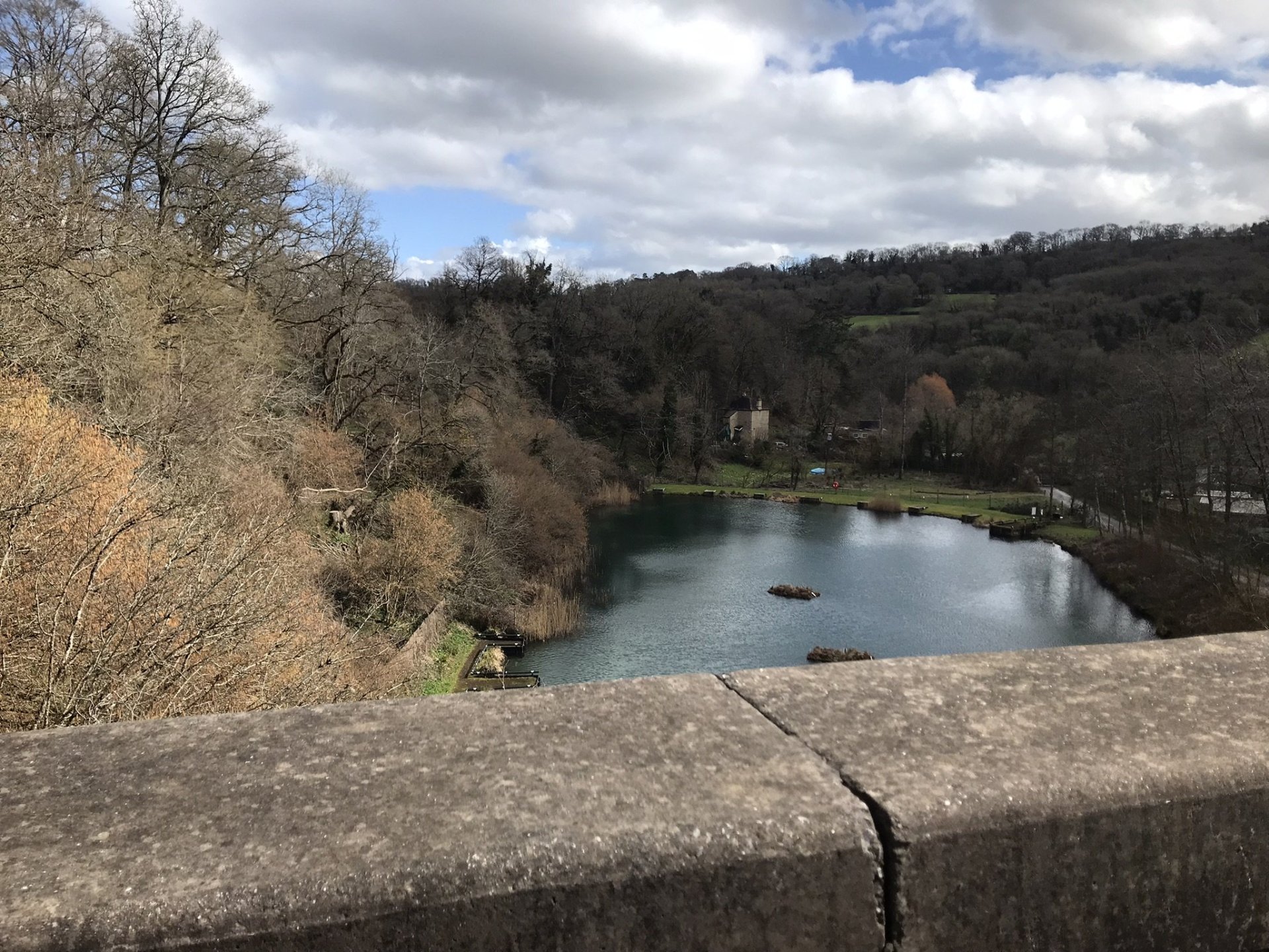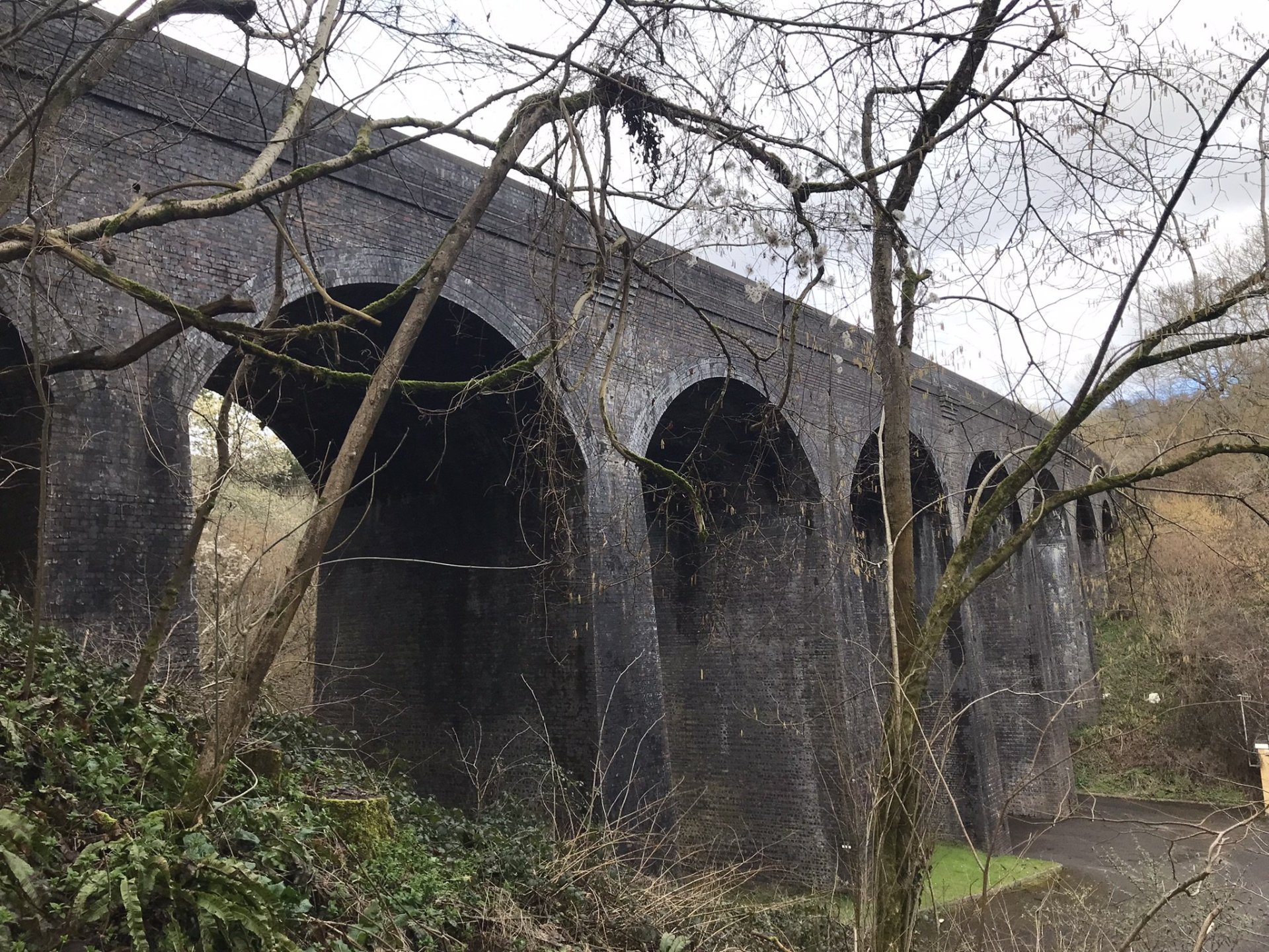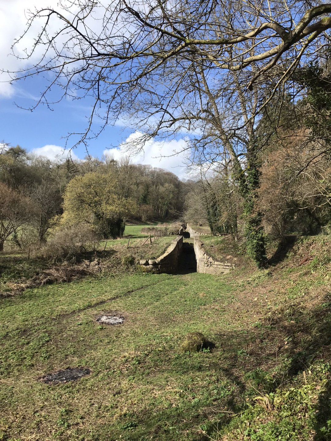After having a coffee and walking back down the path to the bike I rode on to Midford viaduct which is part of the old Somerset & Dorset line but nowadays is a great cycle path that also goes through tunnels below Bath . This involved even more of a walk but first of all I needed somewhere to park ............ and then up this footpath which was a bit sketchy in places with warning of steep drops and then the first view of the viaduct above the reservoir ................ eventually I came onto the cycle path which was much easier going ................. and then down the footpath at the other end. It's clear that they don't want cyclis going down here so take note @Tango and @Skippy and that brought me back out to Tucking Mill which was formerly the home of William Smith who coincidently was the geologist who did the studies on the land where Combe Hay locks were built ............. and then back to the bike for more coffee and some nuts