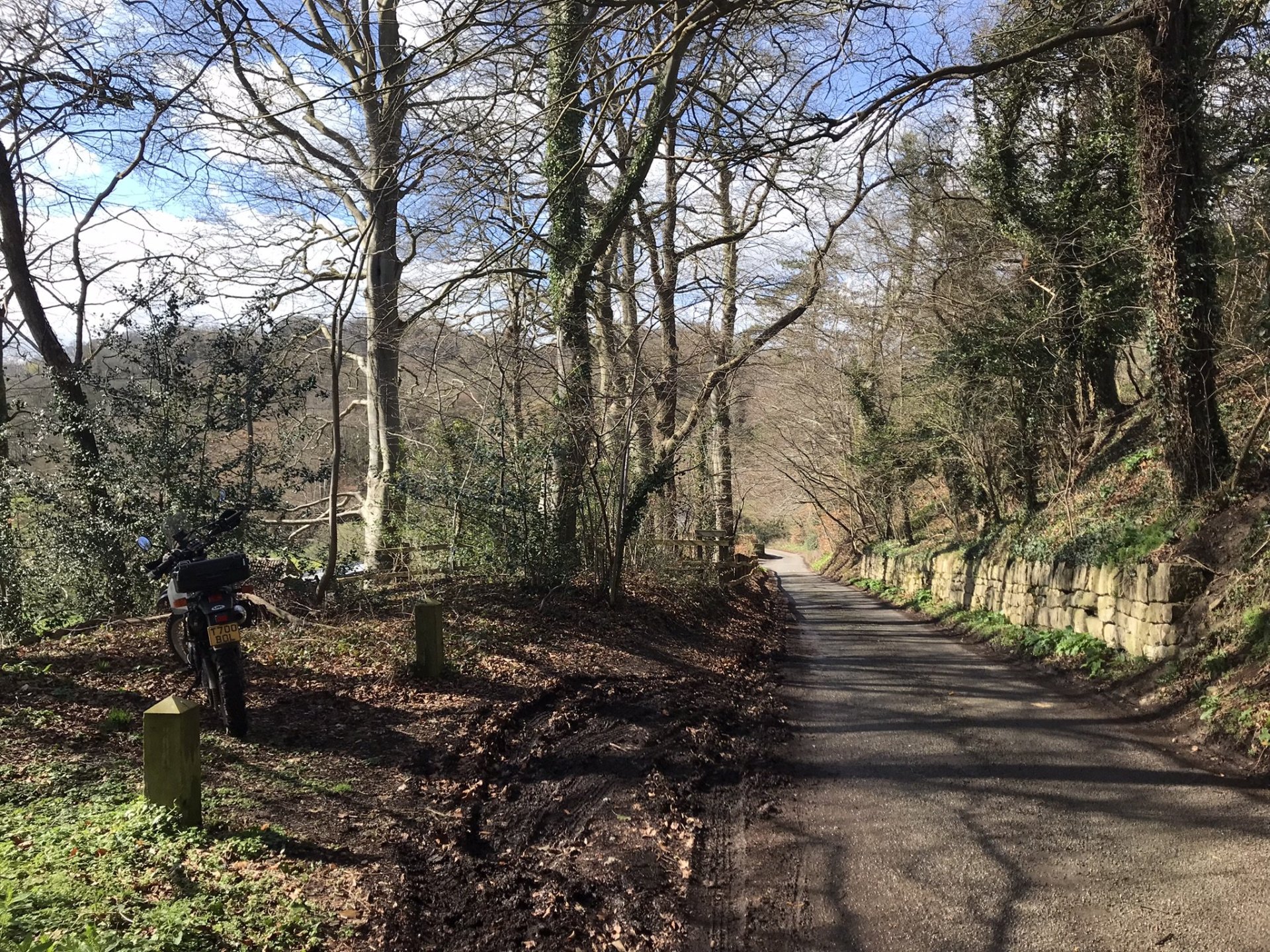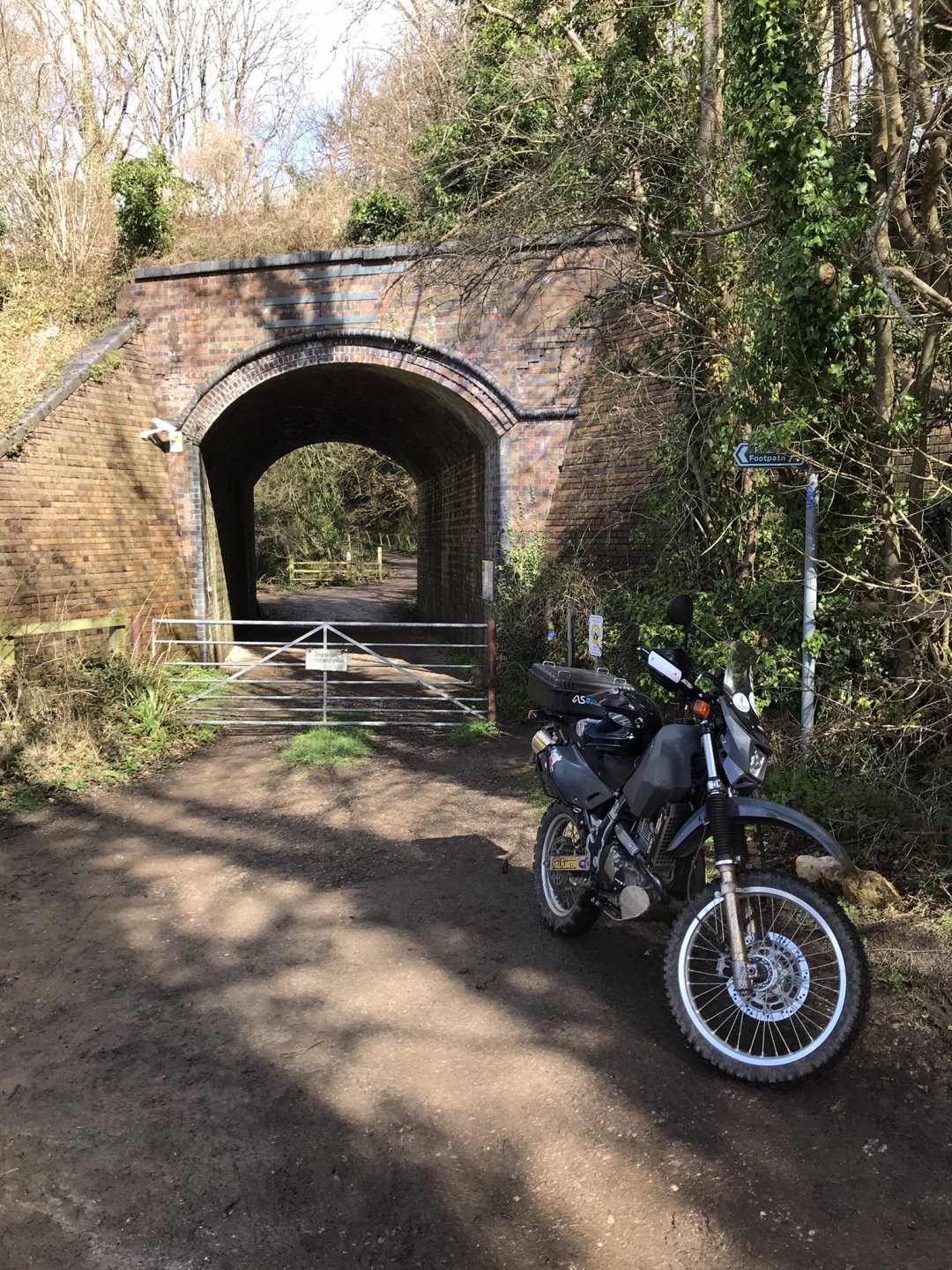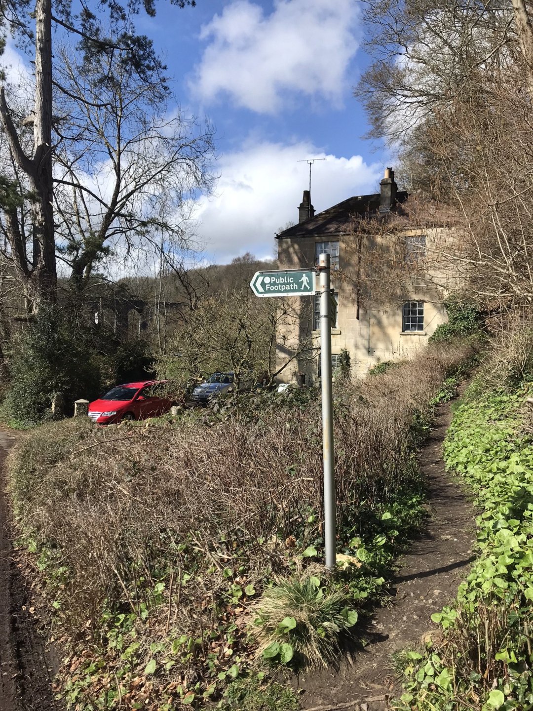 After having a coffee and walking back down the path to the bike I rode on to Midford viaduct which is part of the old Somerset & Dorset line but nowadays is a great cycle path that also goes through tunnels below Bath . This involved even more of a walk but first of all I needed somewhere to park ............ and then up this footpath which was a bit sketchy in places with warning of steep drops and then the first view of the viaduct above the reservoir ................ eventually I came onto the cycle path which was much easier going ................. and then down the footpath at the other end. It's clear that they don't want cyclis going down here so take note @Tango and @Skippy and that brought me back out to Tucking Mill which was formerly the home of William Smith who coincidently was the geologist who did the studies on the land where Combe Hay locks were built ............. and then back to the bike for more coffee and some nuts