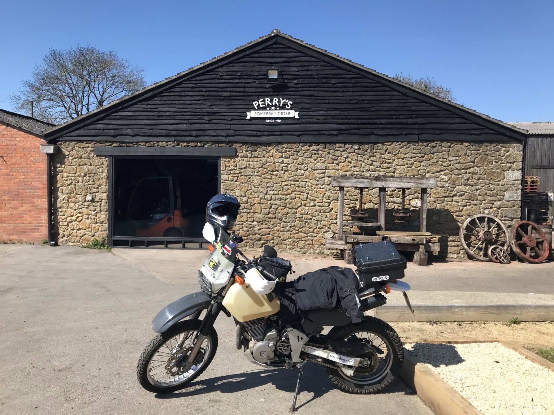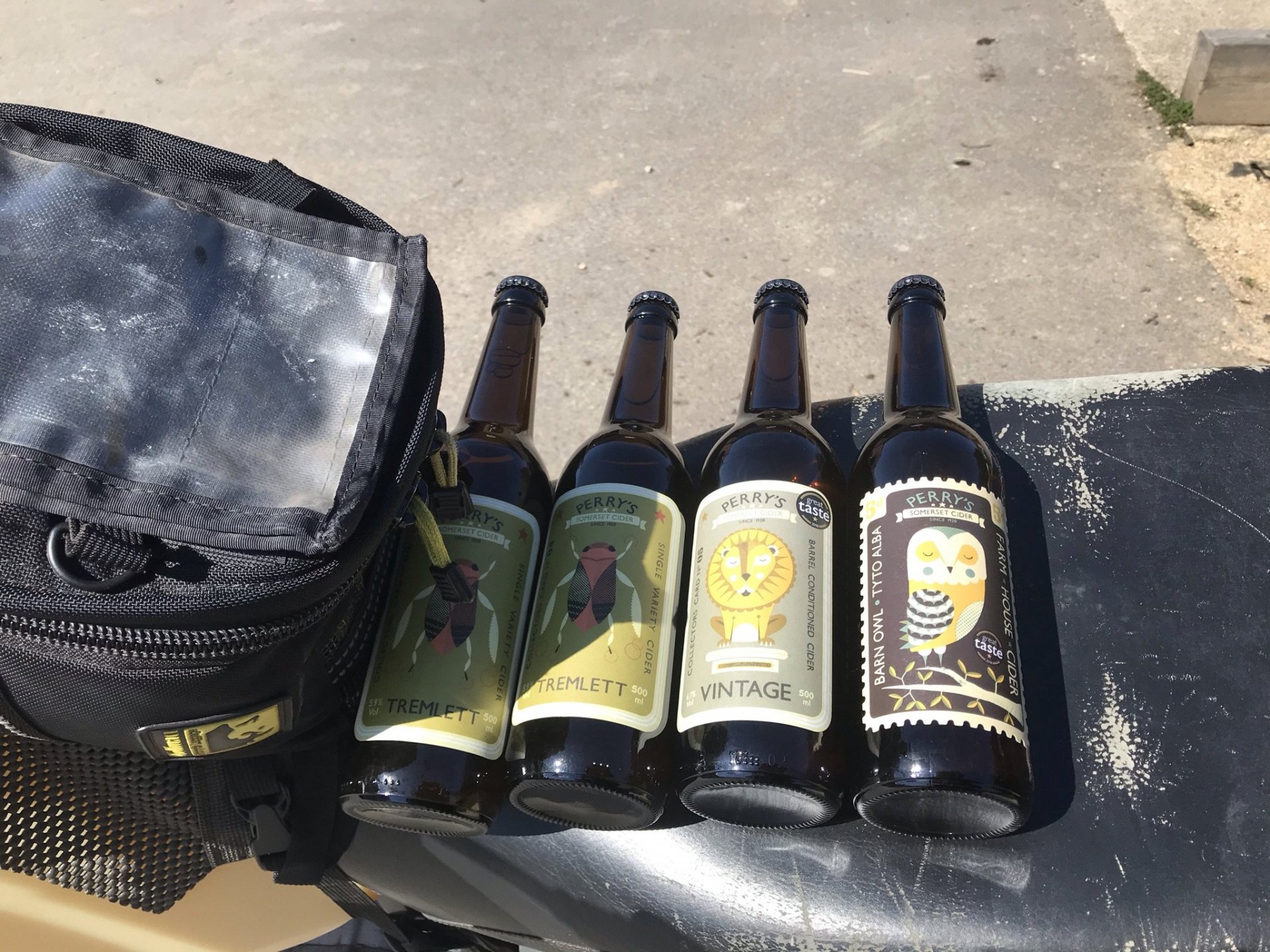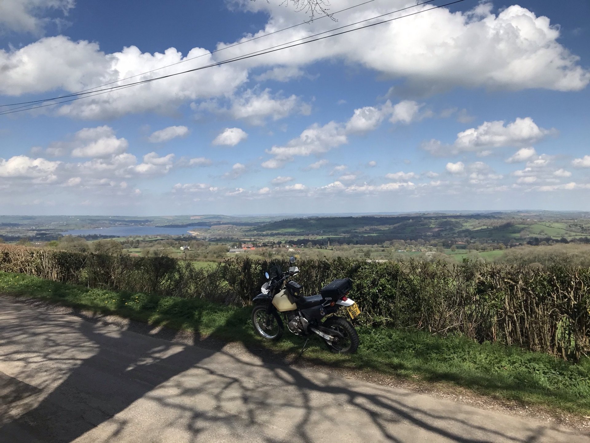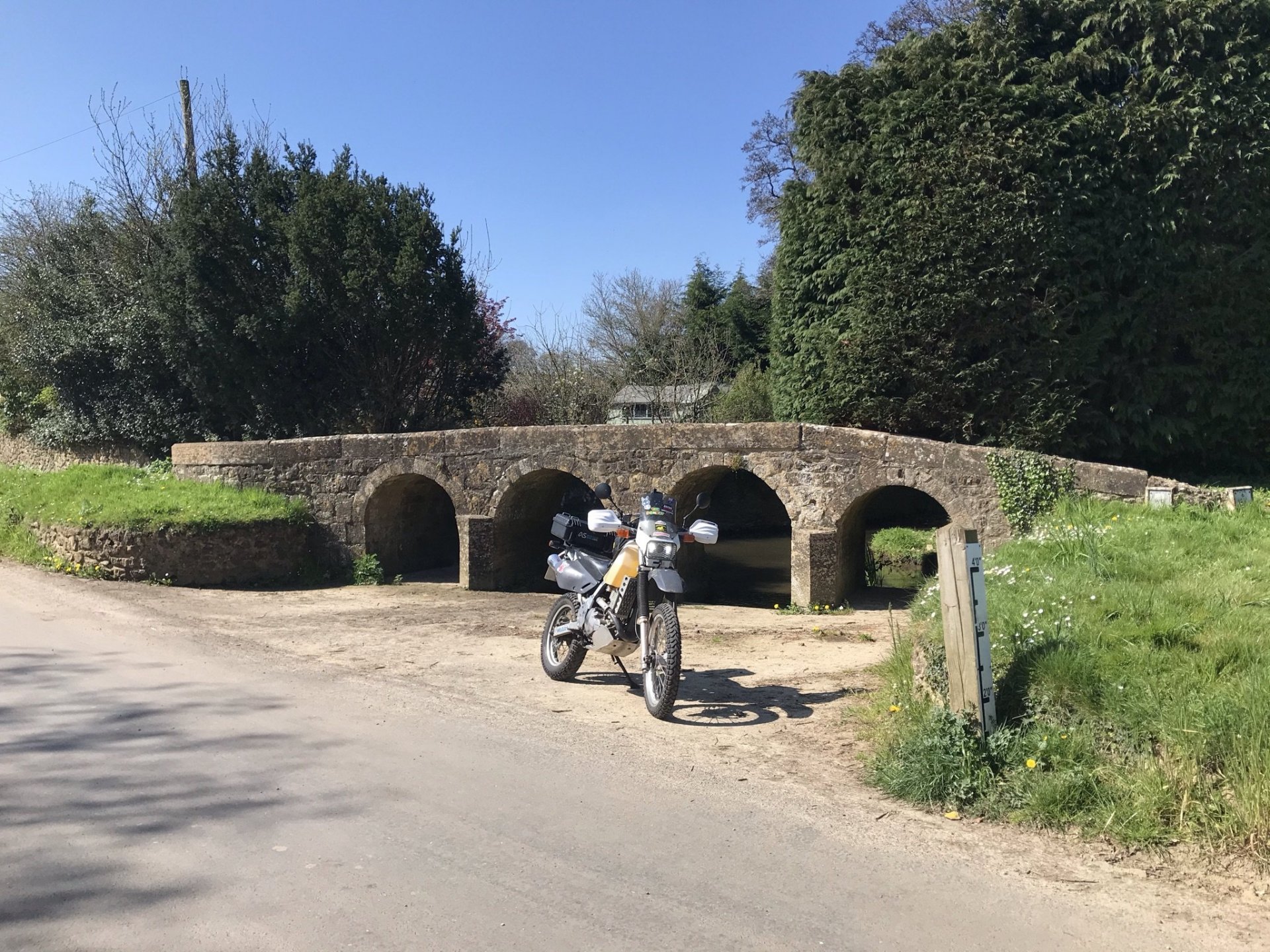 So where were we ? My next destination was Perry's cider Mill , it's not a cider that I've tasted before and they have a cafe , museum and shop So after a very brief run on the horrible A303 dual-carriageway I made my way on roads like this........... and in the village on Dowlish Wake I came across a gorgeous little bridge over the ford............. Just around the corner was the Cider mill...................... Unfortunately the museum and the cafe weren't open (bloody covid) but you were free to wander around the courtyard and have a nosey........... Luckily the shop was open so I bought as much as I could fit in my box............. and then I took a similar route back home but up through Charterhouse rather than Cheddar gorge as it would have been heaving by now I stopped once more for a coffee from my flask overlooking Chew Valley lake from the Mendip hills................. I don't know who this twat was but he'd been following me about all day in the sunshine...............