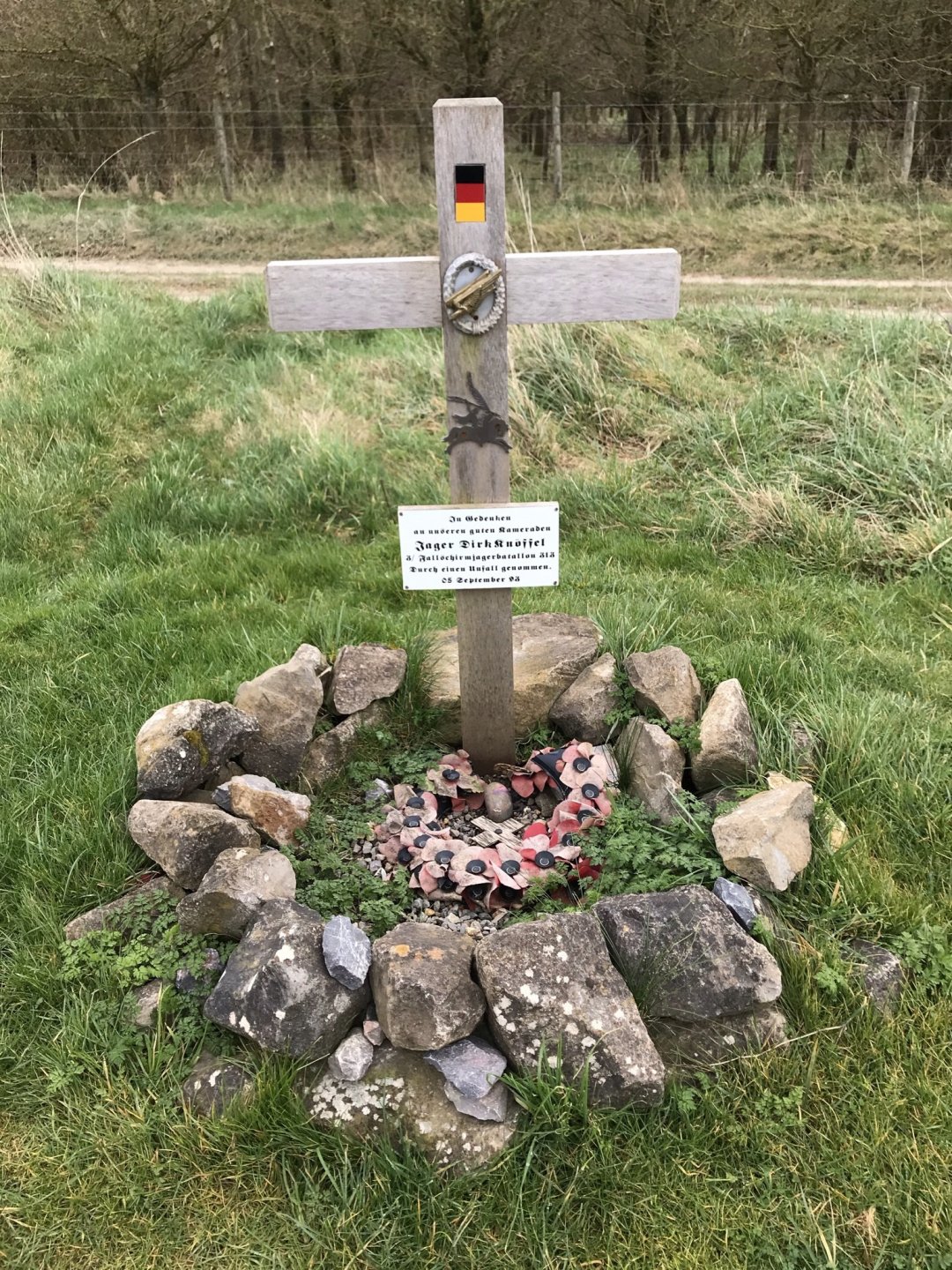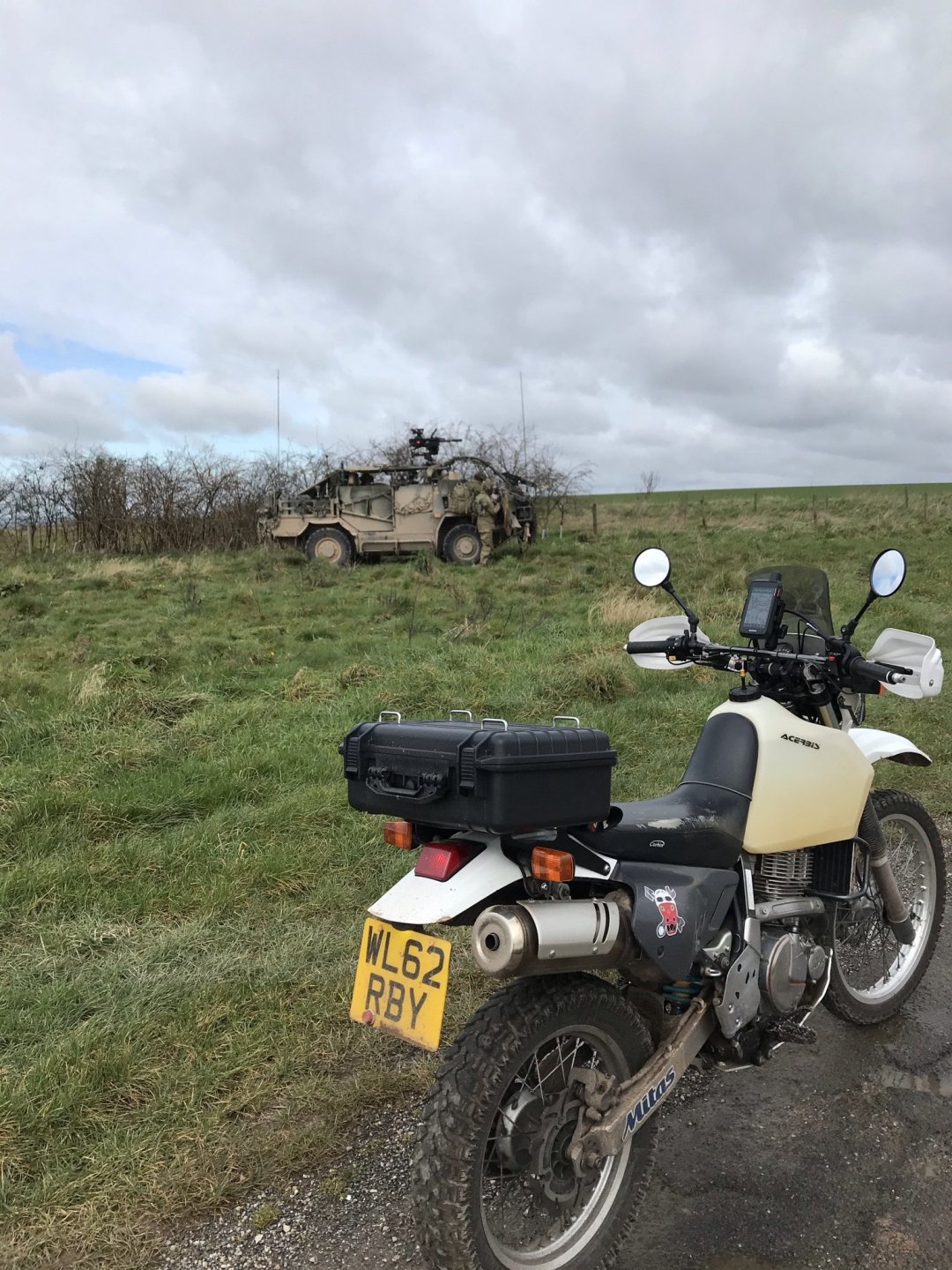 I needed to get out today and check out another function on my GPS and to do that I needed to go off piste so I headed to Salisbury Plain. The flags were flying when I got there which is hardly surprising considering what's going on in Ukraine So I would have to stick to the perimiter path today and not venture into the bombardment area. At last we had a decent day and it wasn' that cold either although there was still a breeze. I headed up the hill from Upton Scudamore and onto the Plain......... Almost immediately I saw signs of Army activity and stopped by these guys who were parked up at a junction. I asked if it was ok to take a photo and they were fine but they didn't really answer my question when I asked them if they were on 'high alert' There were plenty of other vehicles dotted about along the route but I didn't bother any more of them. Further along I spotted a memorial which I had seen before but was too busy to stop, today I was on my own so I had plenty of time. The memorial was for a German soldier, I did a translation and I think this is what it says ; In memory of our good comrade Hunter Dirk Knoffel 3rd Parachute Hunter Battalion 313 Taken by an accident 05 September '93