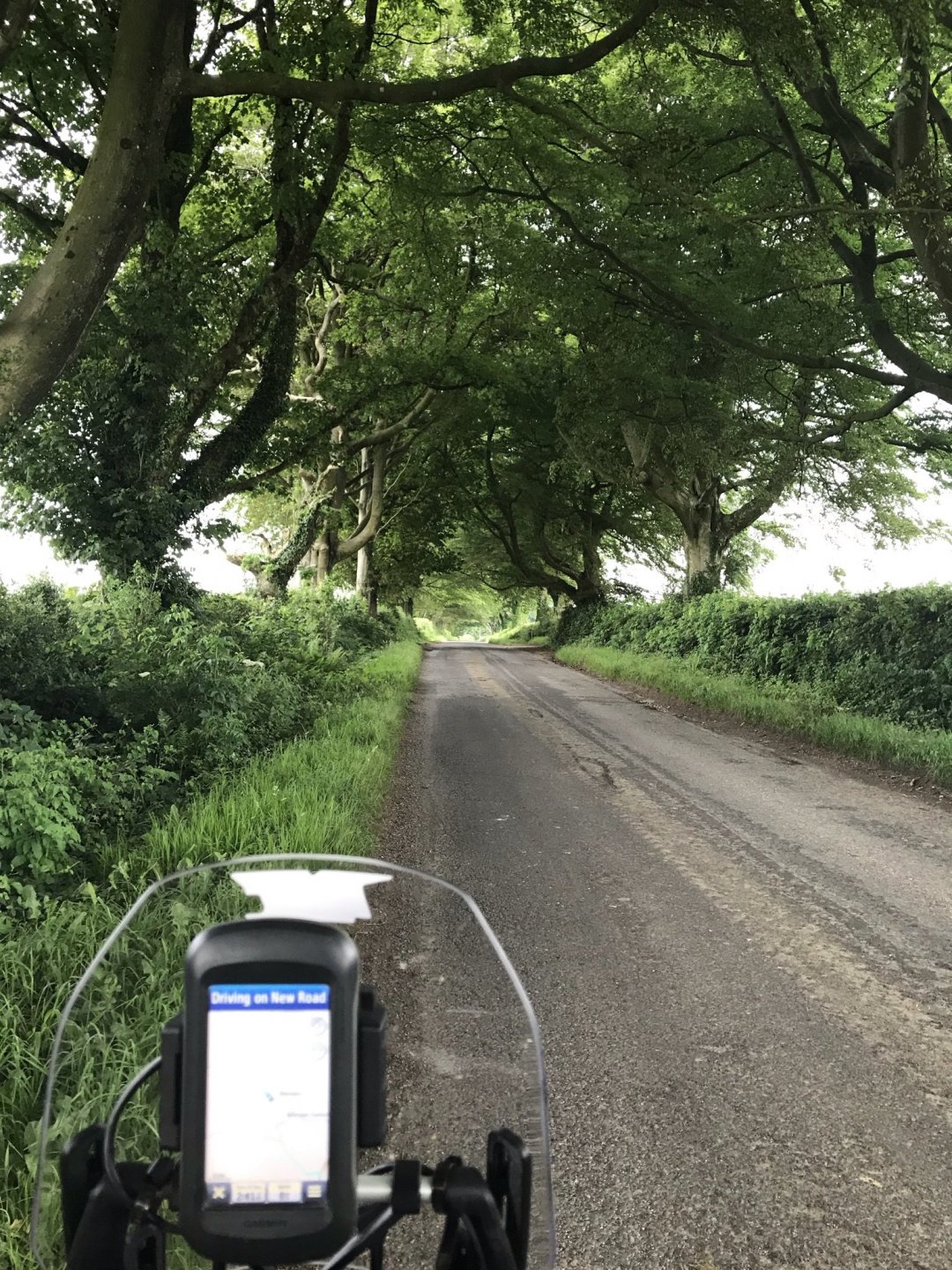 It was time to head for home now but on the way back I came across a Byway that I haven't ridden for a while. It's pure chalk and it had rained heavily the night before so I was trying to decide whether to go for it or not especially on my semi-gay tyres but what the hell................ and then back through one of my favourite roads where the trees form a sort of arch.............